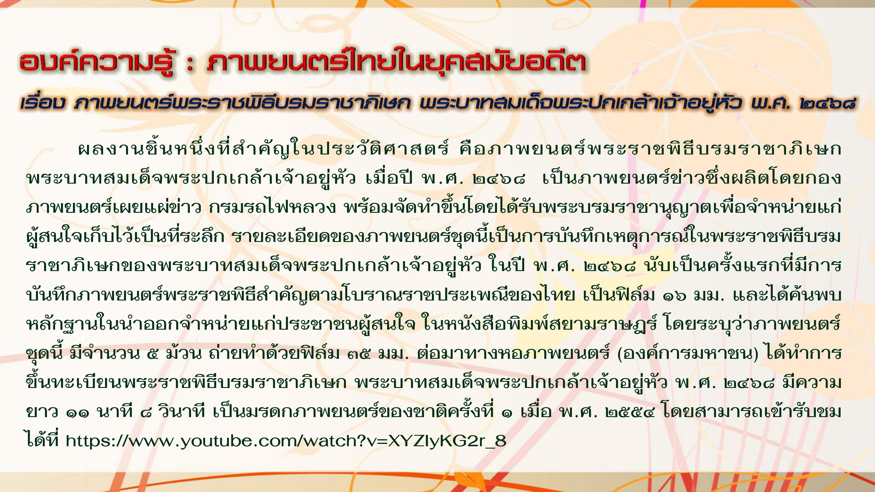 หอภาพยนตร์ (องค์การมหาชน). พระราชพิธีบรมราชาภิเษกพระบาทสมเด็จพระปกเกล้าเจ้าอยู่หัว (๒๔๖๘). [ออนไลน์].