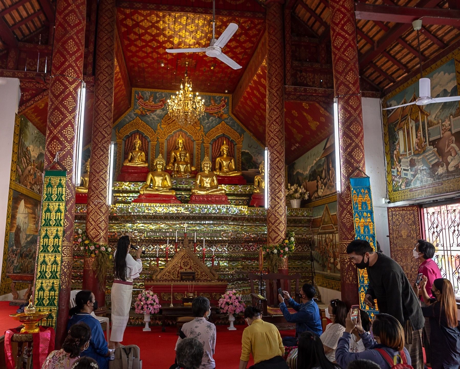วันเสาร์ที่ ๓ ธันวาคม ๒๕๖๔ สมาคมสหพันธ์ท่องเที่ยวภาคเหนือจังหวัดเชียงใหม่ ร่วมกับหอสมุดแห่งชาติรัชมังคลาภิเษก เชียงใหม่ จัดโครงการอบรมพัฒนาความรู้ด้านพุทธศิลป์ล้านนาเพื่อการนำเที่ยว รุ่นที่ ๓ ภายใต้หัวข้อการอบรมภาคเช้าในหัวข้อเสน่ห์เชียงใหม่ ๗๒๕ ปี ๒๕ สุนทรีย์แห่งพุทธปฏิมา โดยได้รับเกียรติจาก นางสาว เปรมกมล ธีโรภาส รองปลัดองค์การบริหารส่วนจังหวัดเชียงใหม่ มาเป็นประธานเปิดงานฯ ณ ห้องประชุม หอสมุดแห่งชาติรัชมังคลาภิเษก เชียงใหม่ ส่วนในภาคบ่ายเป็นการไหว้สาพระเจ้าเก้าวัด คือ วัดประสาท วัดพระสิงห์ วัดศรีเกิด วัดชัยพระเกียรติ วัดช่างแต้ม วัดเจดีย์หลวง วัดดวงดี วัดเชียงหมั้น และวัดดับภัย วิทยากรโดย ดร.เพ็ญสุภา สุขคตะ กวิณี นักประวัติศาสตร์โบราณคดีล้านนาไทย ทั้งนี้มีมาตรการป้องกันและควบคุมการแพร่ระบาดของโรคโควิด - ๑๙