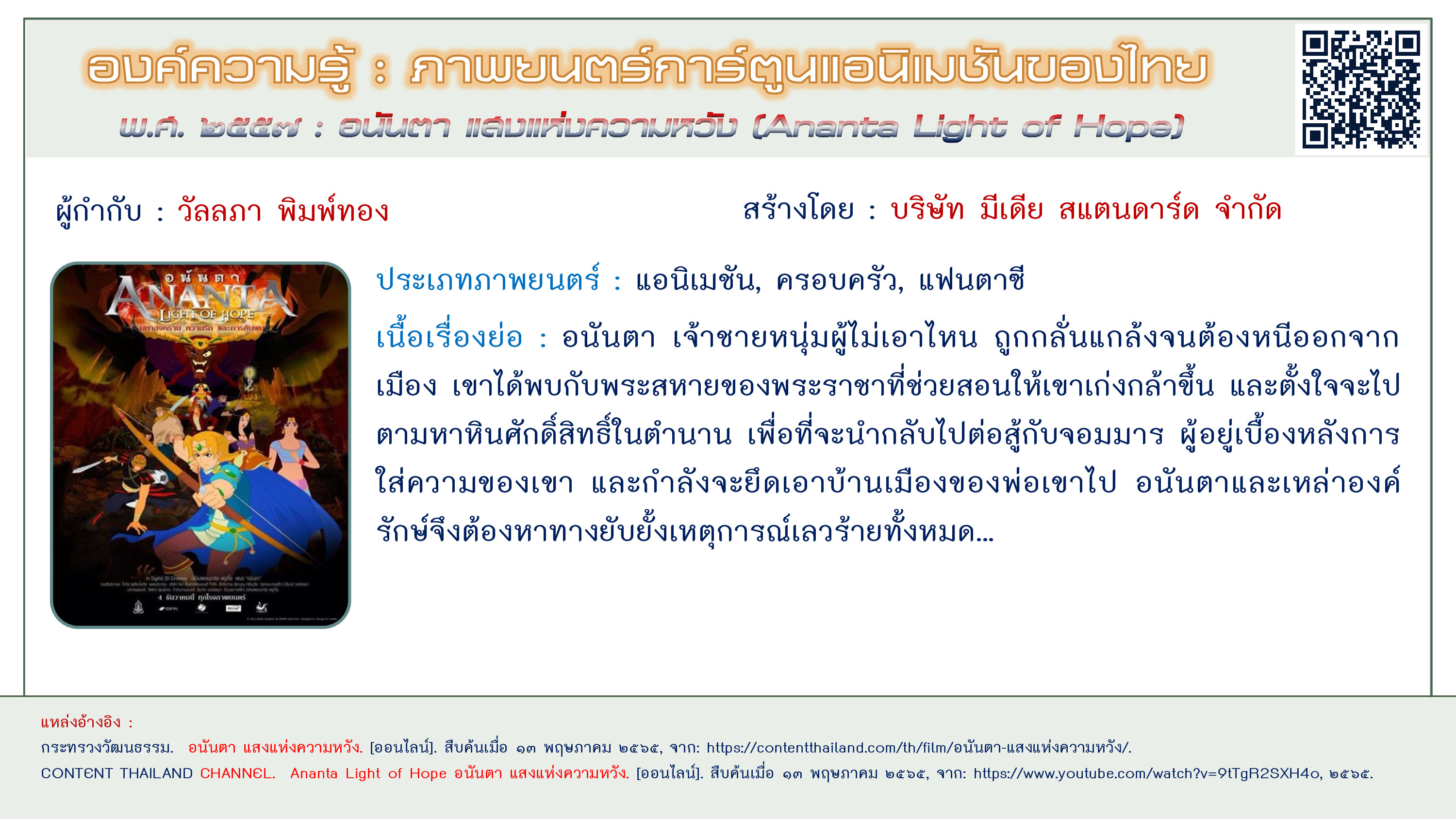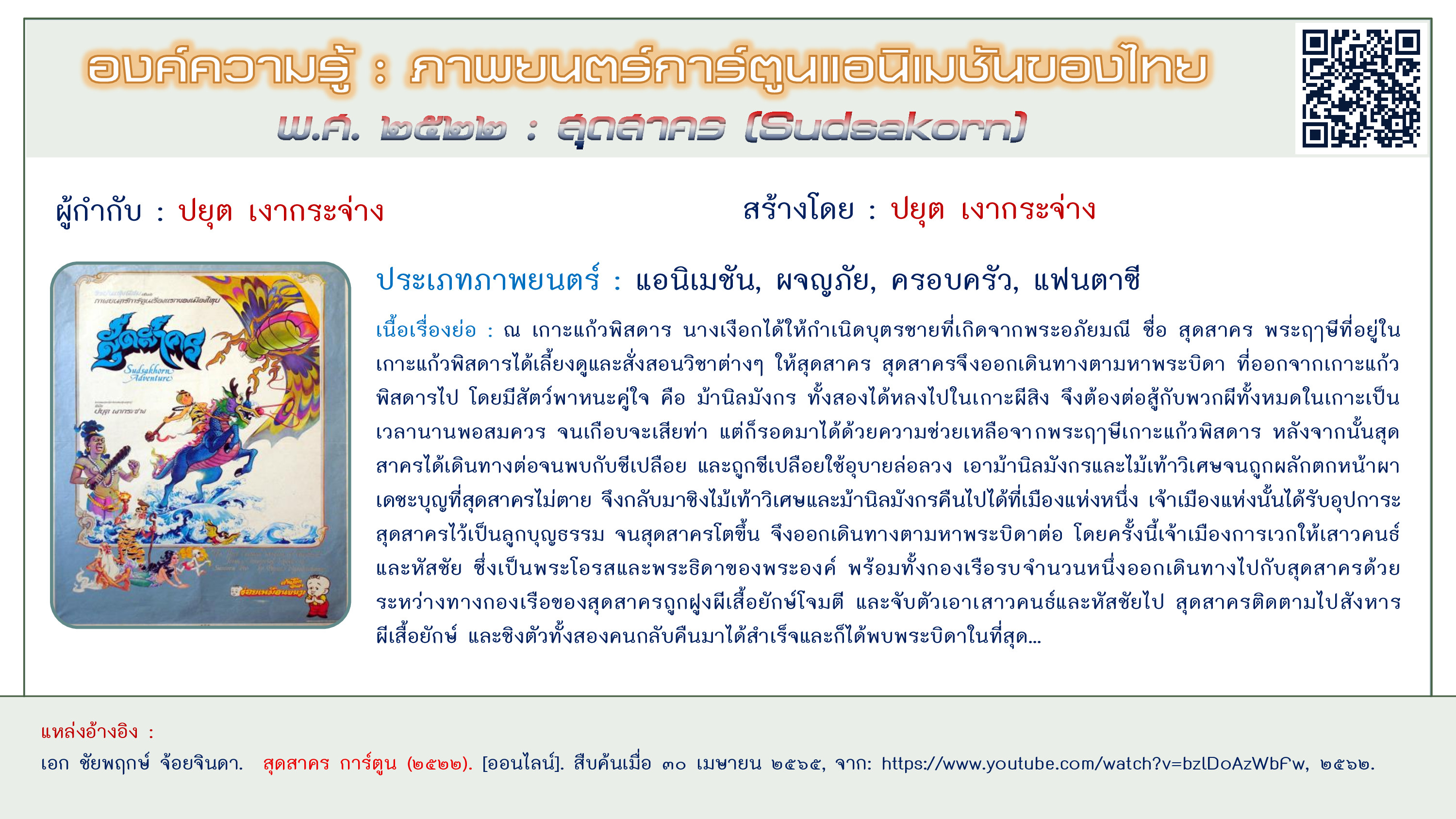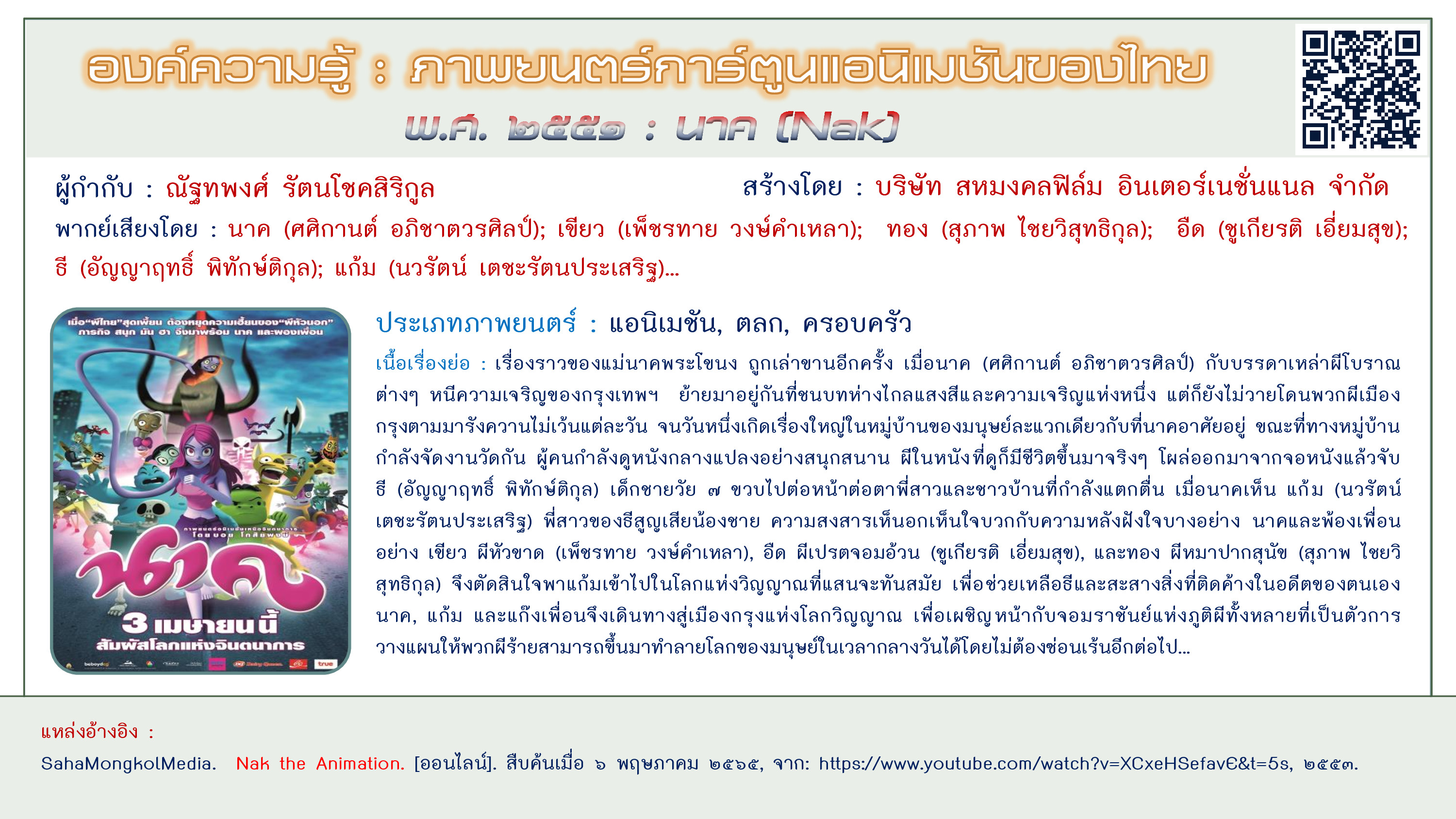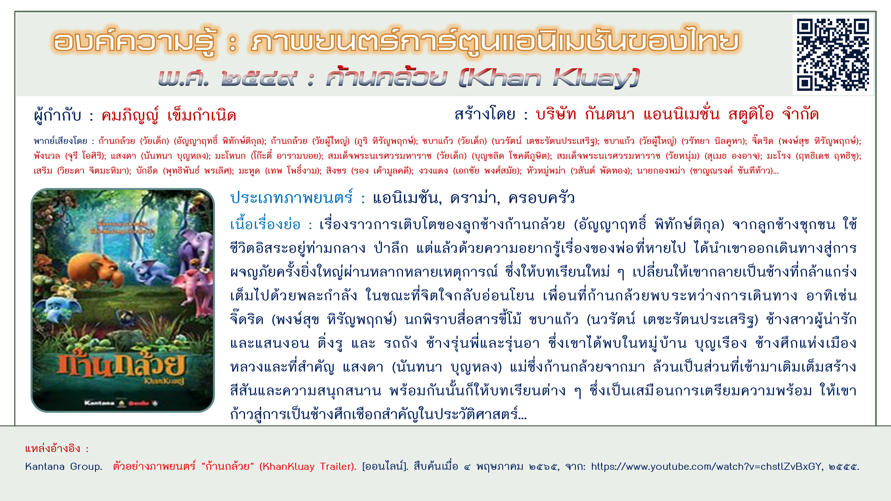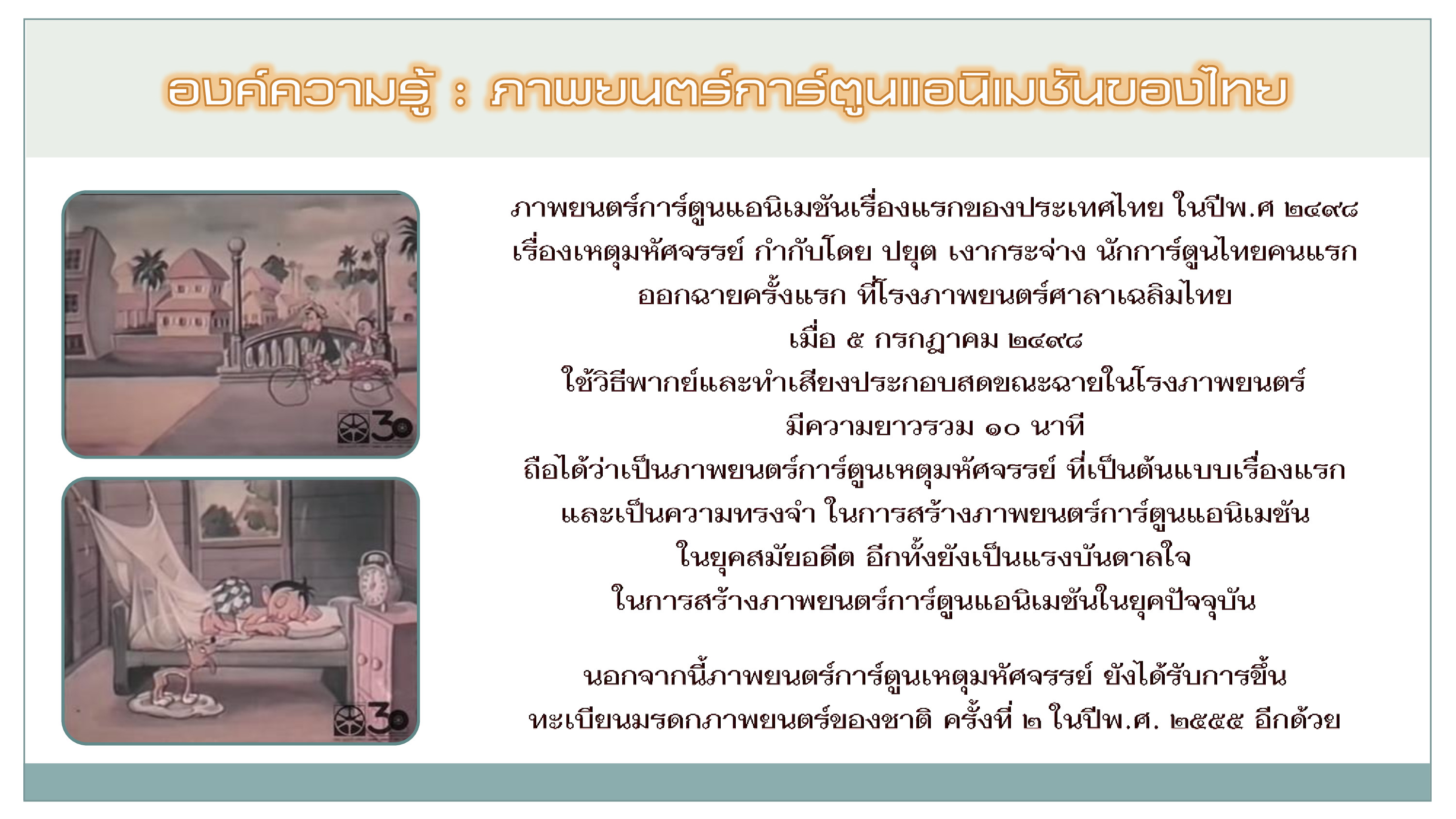 องค์ความรู้ : หอสมุดแห่งชาติรัชมังคลาภิเษก เชียงใหม่ เรื่อง ภาพยนตร์การ์ตูนแอนิเมชันของไทย