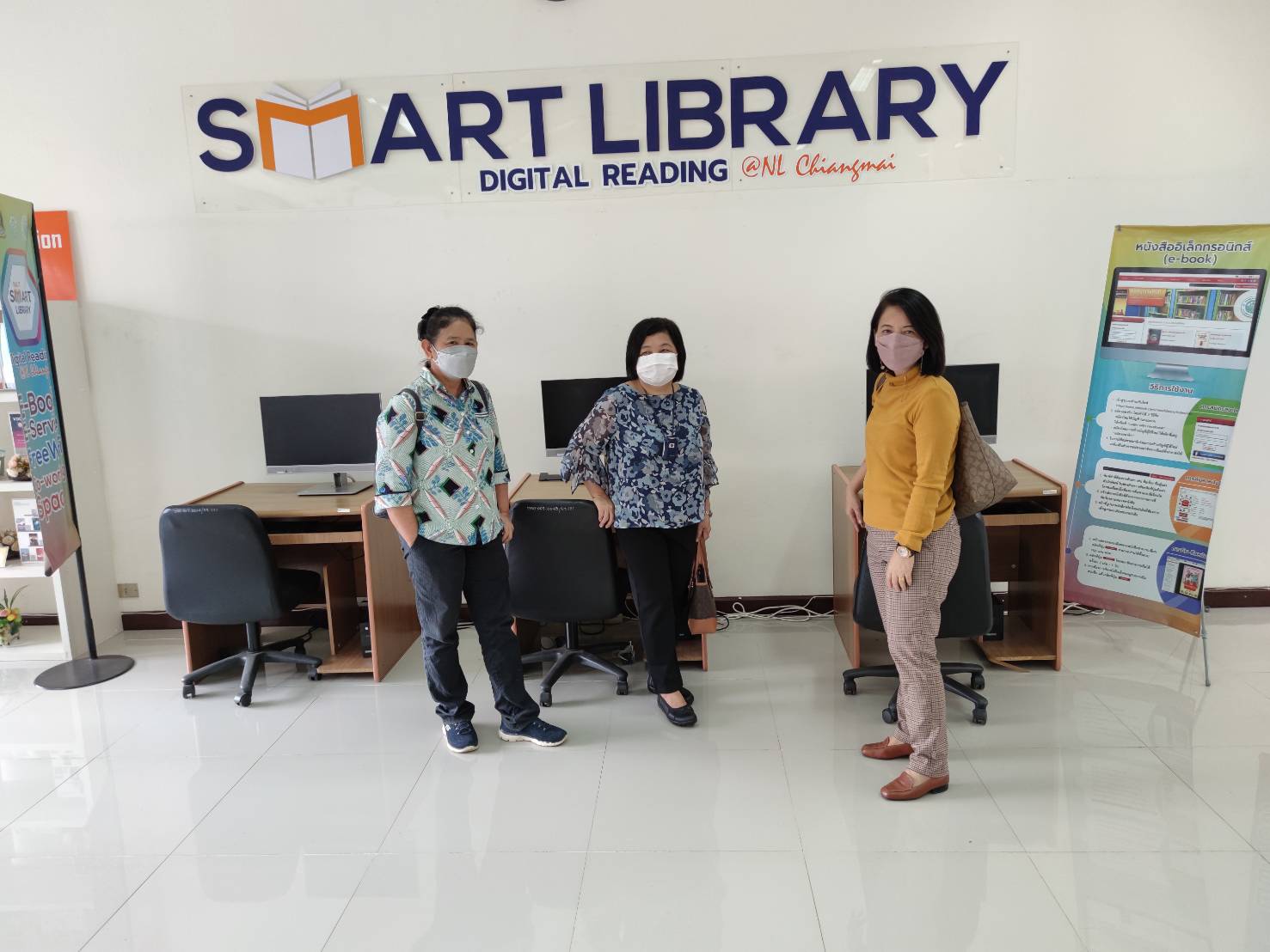 นางสาววาสนา งามดวงใจ ผู้อำนวยการสำนักหอสมุดแห่งชาติ พร้อมด้วยนางสาวบุบผา ชูชาติ บรรณารักษ์ชำนาญการพิเศษ เยี่ยมชมหอสมุดแห่งชาติรัชมังคลาภิเษก เชียงใหม่