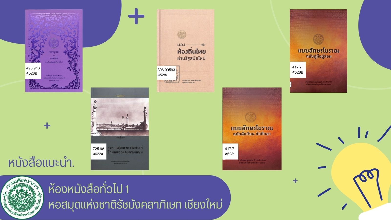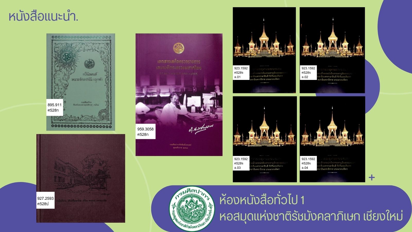 แนะนำหนังสือที่จัดพิมพ์โดยกรมศิลปากร ห้องหนังสือทั่วไป ๑ หอสมุดแห่งชาติรัชมังคลาภิเษก เชียงใหม่