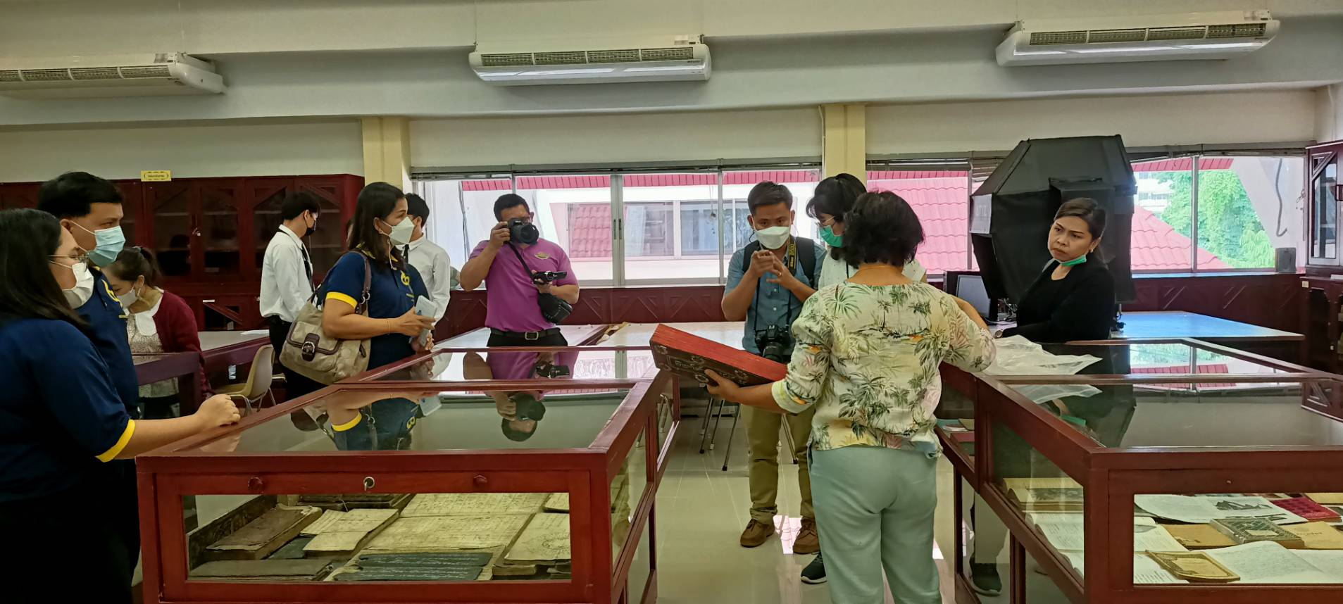 วันอังคารที่ ๒๑ มิถุนายน ๒๕๖๕ เวลา ๐๙.๐๐ - ๑๐.๓๐ น. คณะอนุกรรมการสำรวจเอกสารฯ และบุคลากรสำนักหอจดหมายเหตุแห่งชาติ จำนวน ๑๐ คน เข้าสำรวจเยี่ยมชมเอกสารโบราณ โดยมีนางวราภรณ์ วสุนธรารัตน์ ผู้อำนวยการหอสมุดแห่งชาติรัชมังคลาภิเษก เชียงใหม่ และนางวรรณภา ปะวิโน บรรณารักษ์ชำนาญการ ให้การต้อนรับ ณ ห้องภาษาโบราณ หอสมุดแห่งชาติรัชมังคลาภิเษก เชียงใหม่