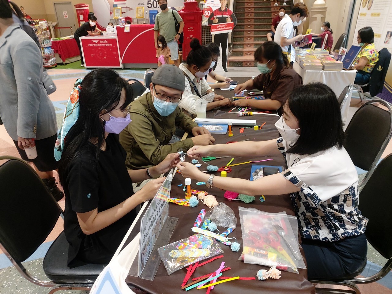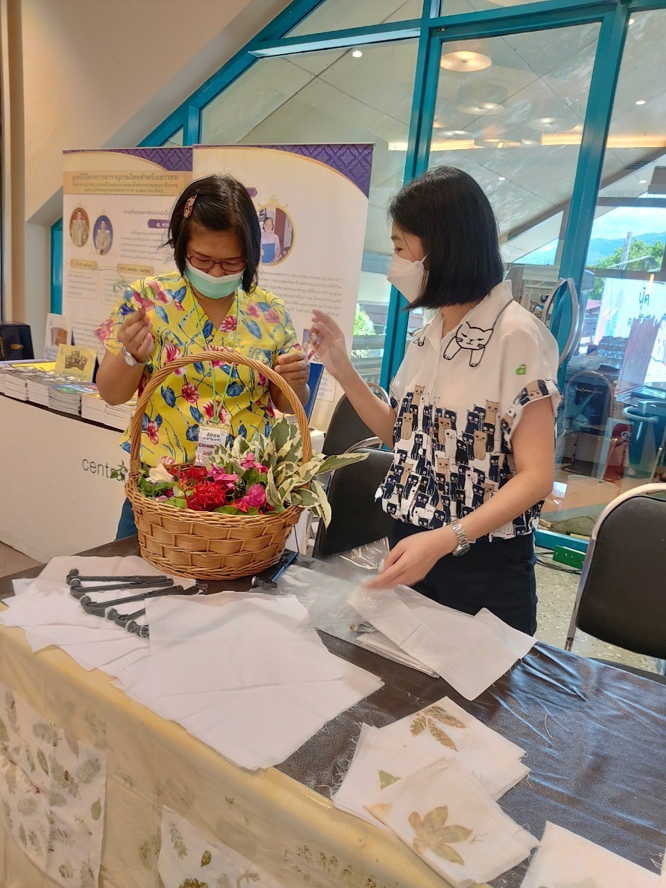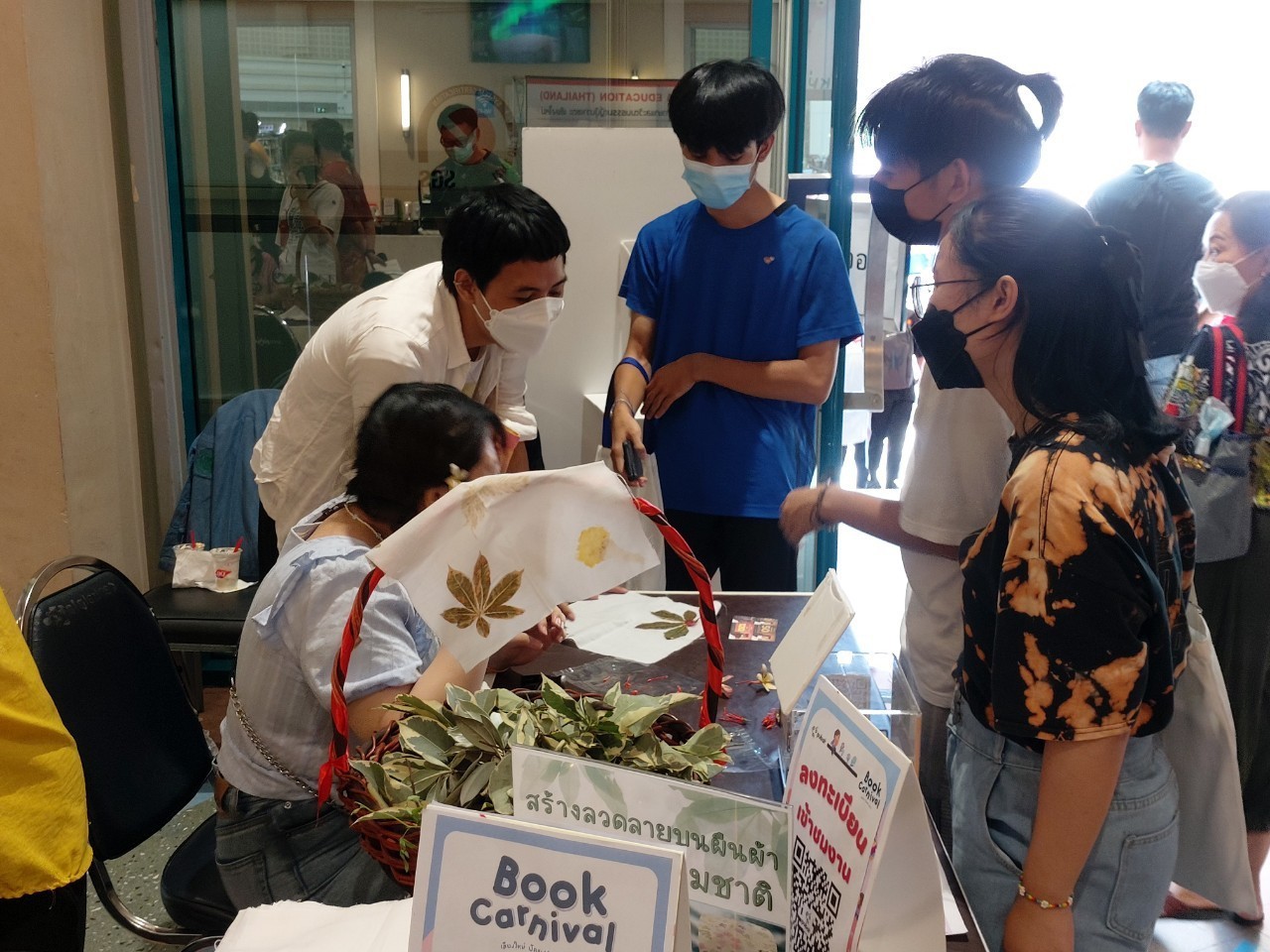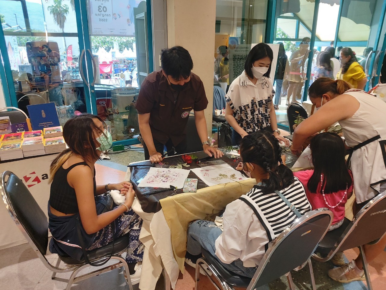 บุคลากรหอสมุดแห่งชาติรัชมังคลาภิเษก เชียงใหม่ และนักศึกษาฝึกประสบการณ์วิชาชีพ ร่วมจัดกิจกรรมส่งเสริมการเรียนรู้กับกิจกรรมสร้างลวดลายบนผืนผ้าด้วยวิธีธรรมชาติ, bookmark diy และภาพระบายสี กับ Book Carnival งานเชียงใหม่ บุ๊คแฟร์ ครั้งที่ ๗ (Chiang Mai Book Fair 2022)