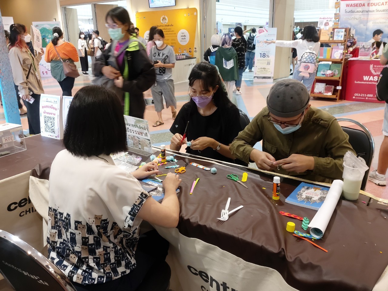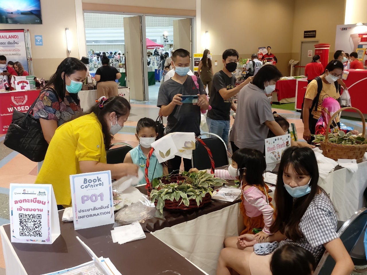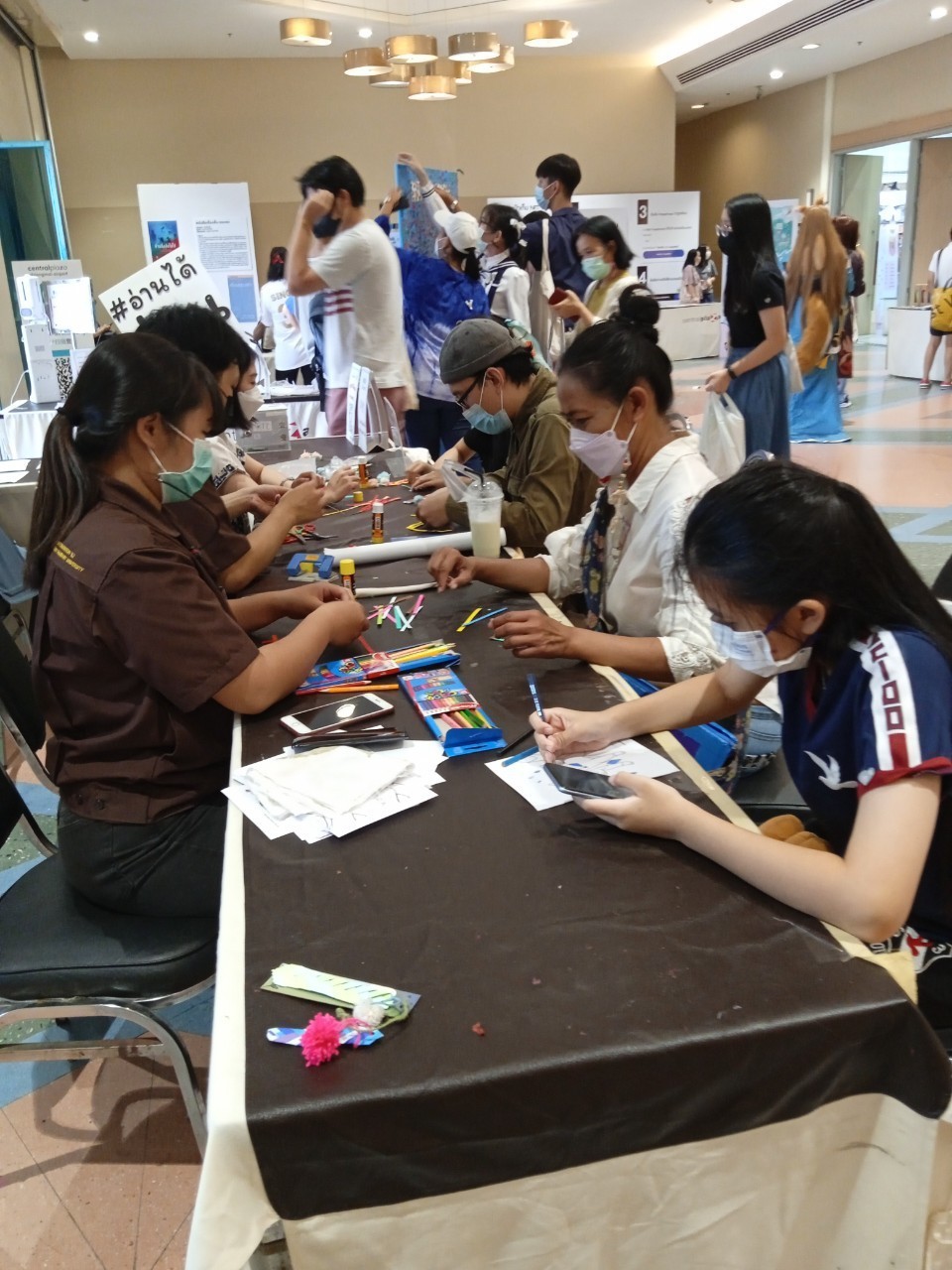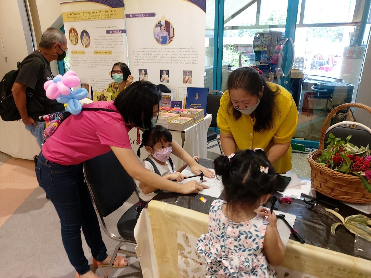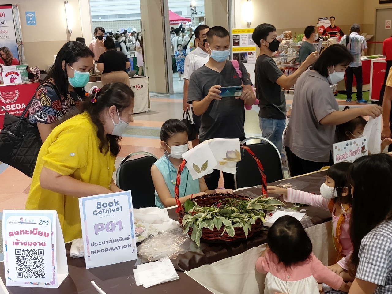 บุคลากรหอสมุดแห่งชาติรัชมังคลาภิเษก เชียงใหม่ และนักศึกษาฝึกประสบการณ์วิชาชีพ ร่วมจัดกิจกรรมส่งเสริมการเรียนรู้กับกิจกรรมสร้างลวดลายบนผืนผ้าด้วยวิธีธรรมชาติ, bookmark diy และภาพระบายสี กับ Book Carnival งานเชียงใหม่ บุ๊คแฟร์ ครั้งที่ ๗ (Chiang Mai Book Fair 2022)