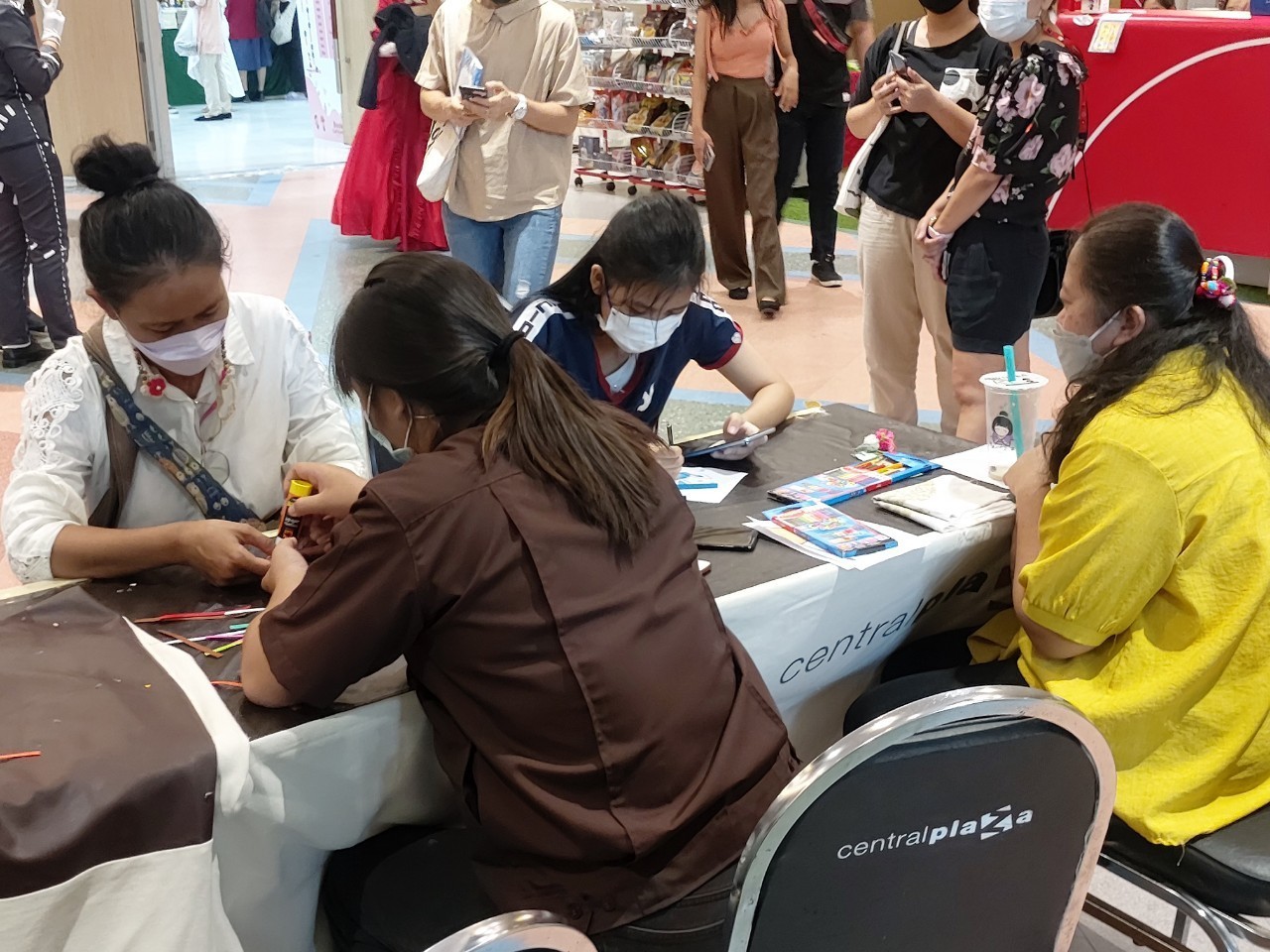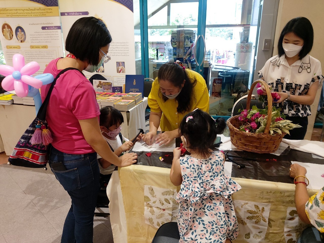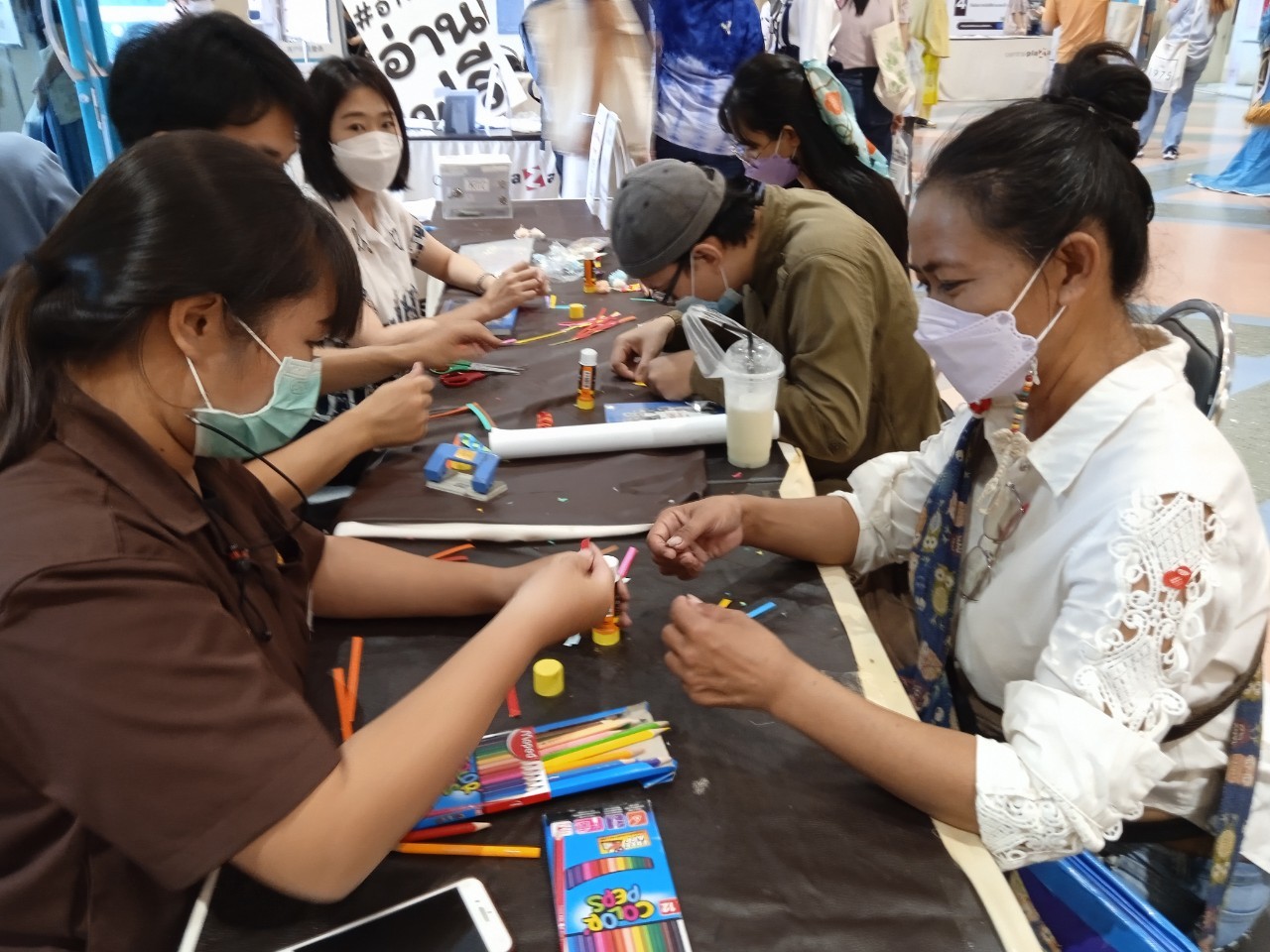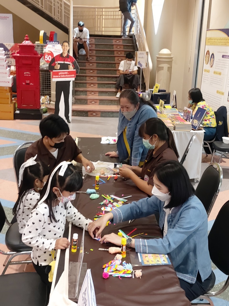 บุคลากรหอสมุดแห่งชาติรัชมังคลาภิเษก เชียงใหม่ และนักศึกษาฝึกประสบการณ์วิชาชีพ ร่วมจัดกิจกรรมส่งเสริมการเรียนรู้กับกิจกรรมสร้างลวดลายบนผืนผ้าด้วยวิธีธรรมชาติ, bookmark diy และภาพระบายสี กับ Book Carnival งานเชียงใหม่ บุ๊คแฟร์ ครั้งที่ ๗ (Chiang Mai Book Fair 2022)