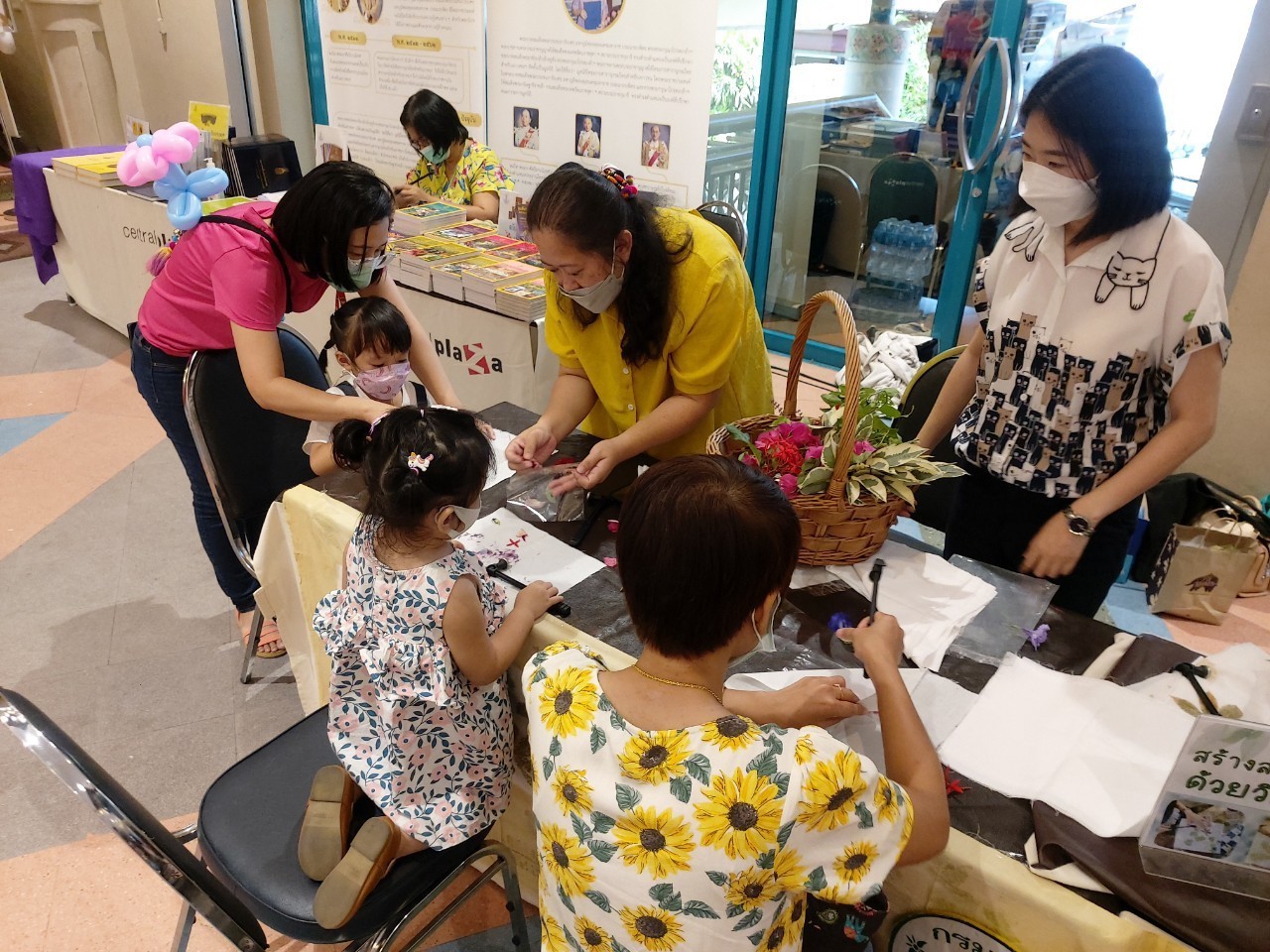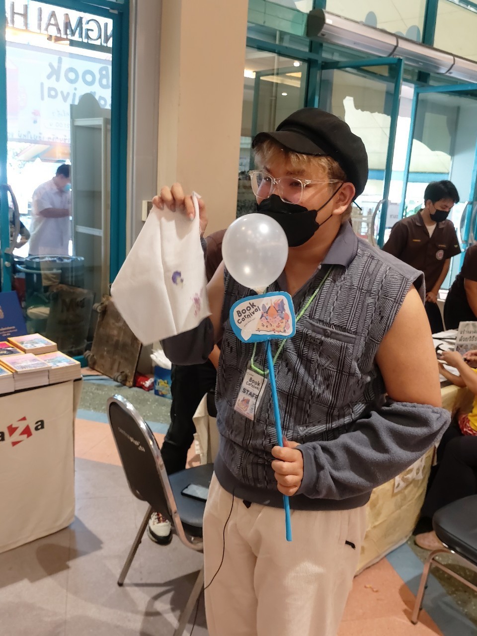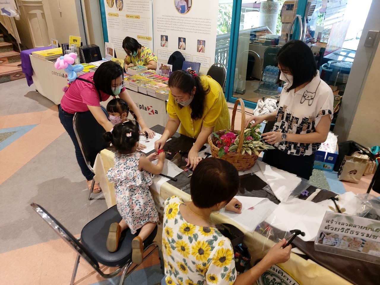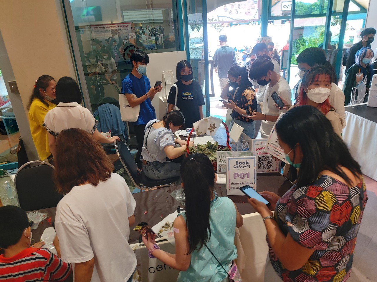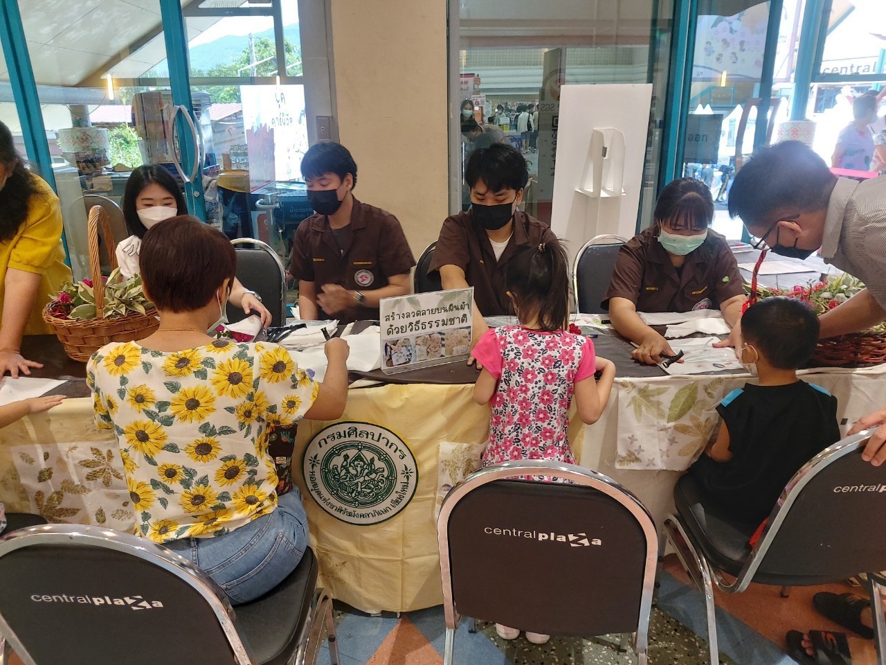 บุคลากรหอสมุดแห่งชาติรัชมังคลาภิเษก เชียงใหม่ และนักศึกษาฝึกประสบการณ์วิชาชีพ ร่วมจัดกิจกรรมส่งเสริมการเรียนรู้กับกิจกรรมสร้างลวดลายบนผืนผ้าด้วยวิธีธรรมชาติ, bookmark diy และภาพระบายสี กับ Book Carnival งานเชียงใหม่ บุ๊คแฟร์ ครั้งที่ ๗ (Chiang Mai Book Fair 2022)