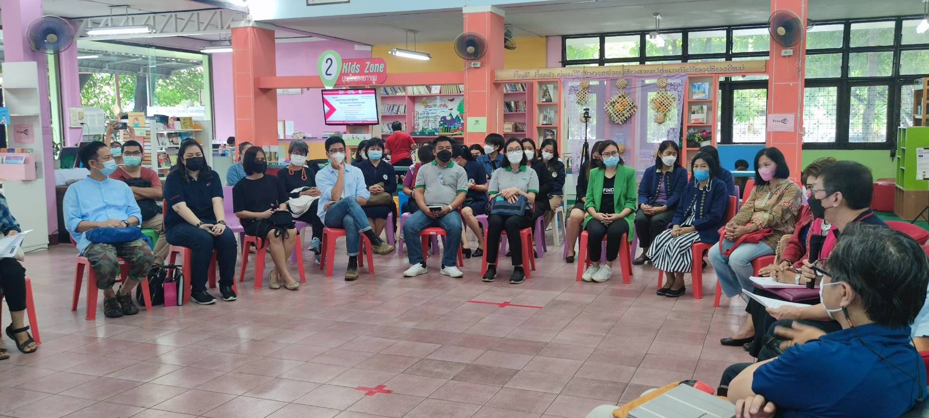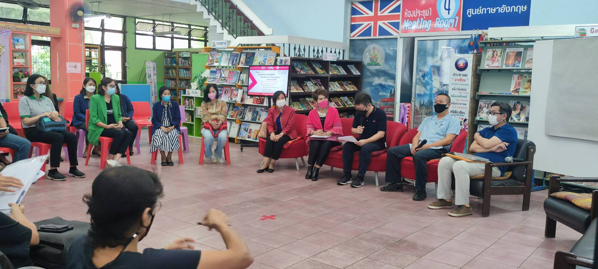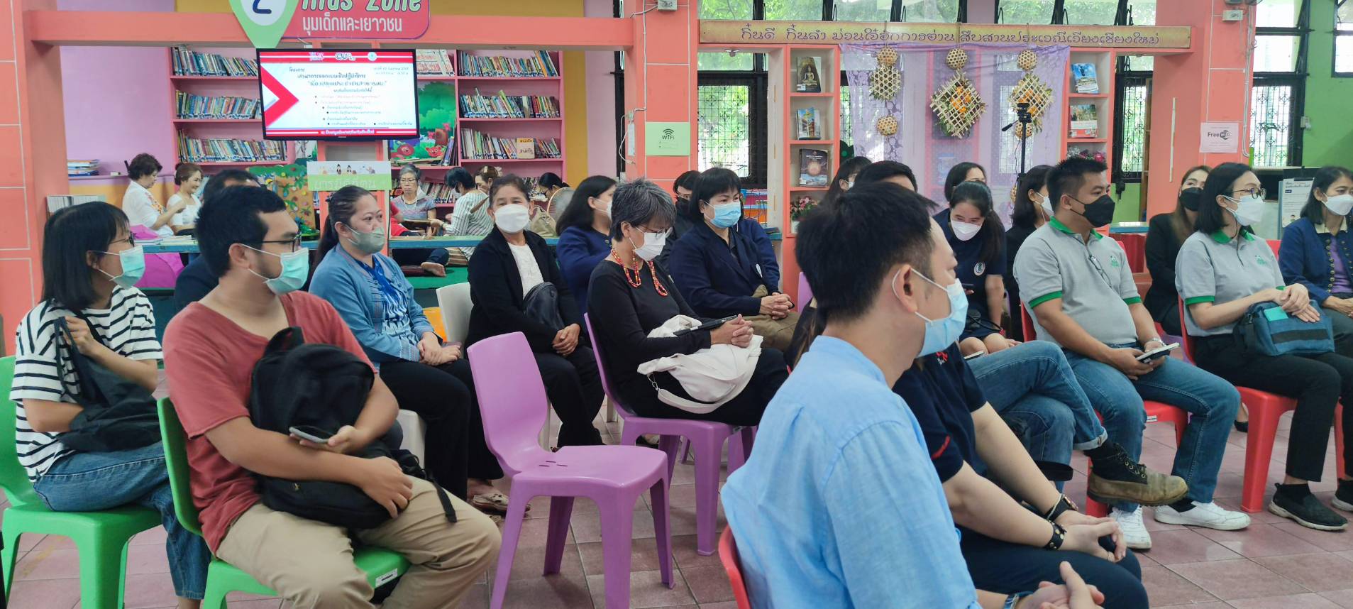 นางวราภรณ์ วสุนธรารัตน์ ผู้อำนวยการหอสมุดแห่งชาติรัชมังคลาภิเษก เชียงใหม่ และนางวรรณภา ปะวิโน บรรณารักษ์ชำนาญการ เข้าร่วมงานเสวนาการออกแบบเชิงปฏิบัติการห้องสมุดประชาชนสาธารณะ ณ ห้องสมุดประชาชนจังหวัดเชียงใหม่