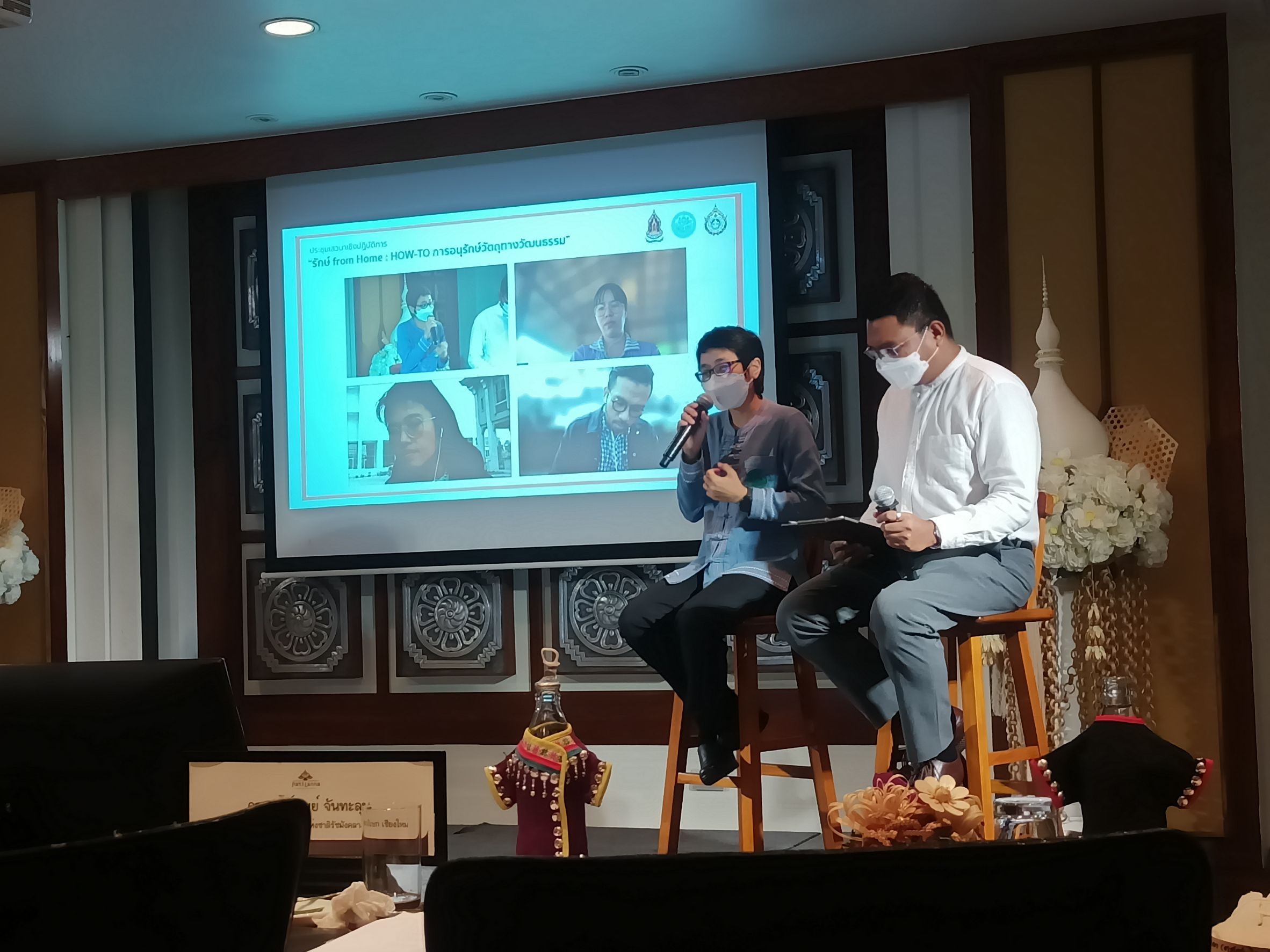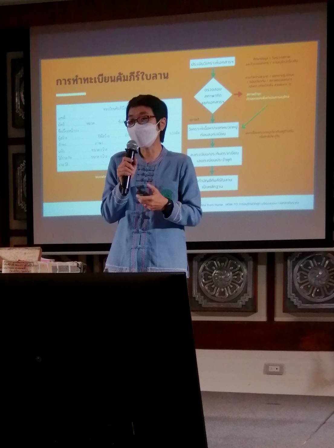 วันศุกร์ที่ ๑๖ กันยายน ๒๕๖๕ เวลา ๐๙.๐๐ - ๑๒.๐๐ น. นางสาวสุคนธ์ทิพย์ จันทะลุน บรรณารักษ์ชำนาญการ หอสมุดแห่งชาติรัชมังคลาภิเษก เชียงใหม่ เข้าร่วมการประชุมเสวนาเชิงปฏิบัติการ "รักษ์ from Home: HOW-TO การอนุรักษ์วัตถุทางวัฒนธรรม" และเป็นวิทยากรบรรยาย ในหัวข้อ "HOW-TO: อนุรักษ์วัตถุทางวัฒนธรรมประเภทเอกสารโบราณ" ณ โรงแรมรติล้านนา ริเวอร์ไซด์ สปา รีสอร์ท เชียงใหม่
