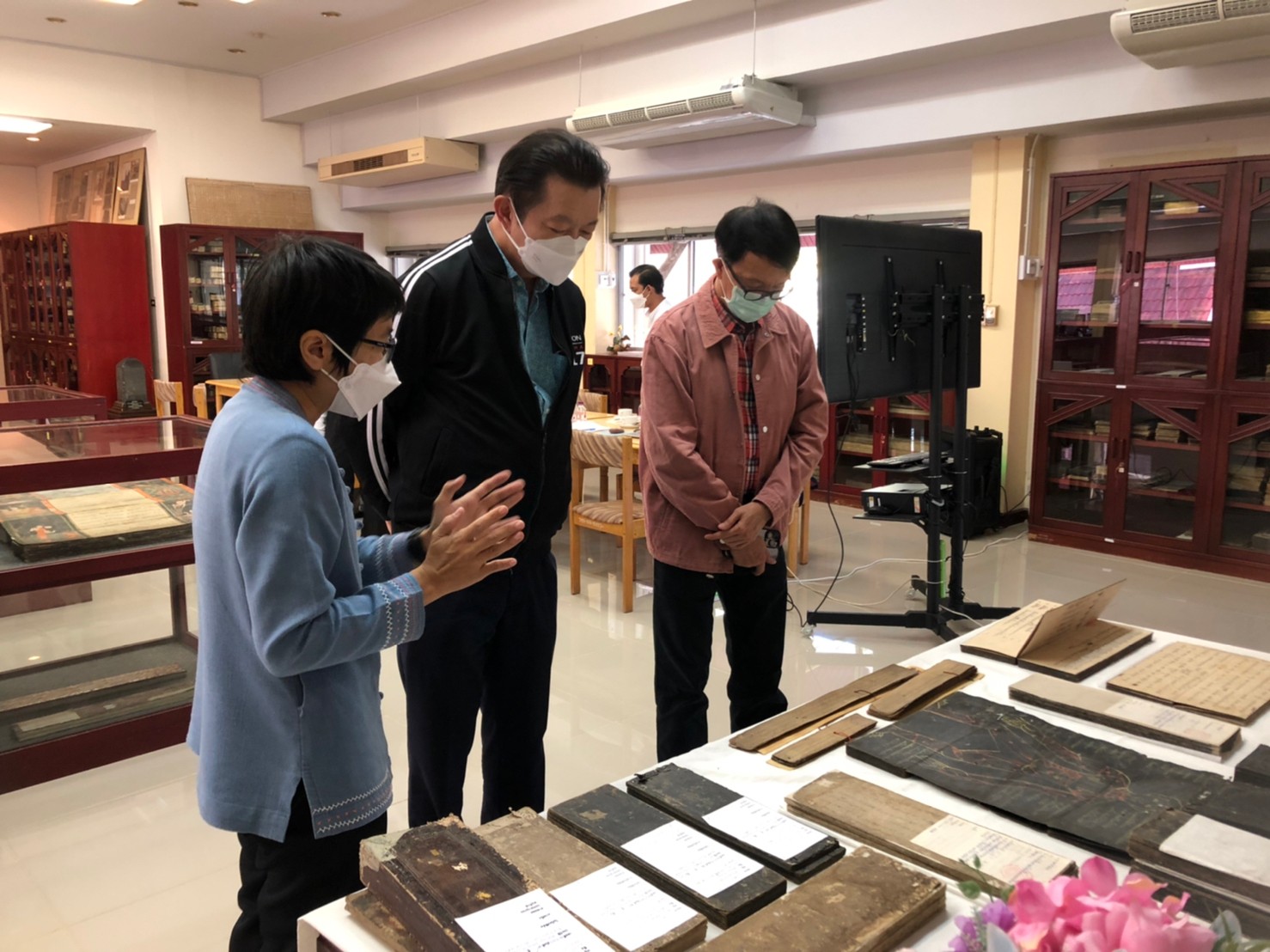 วันที่ ๒๔ - ๒๕ ธันวาคม ๒๕๖๕ ผู้บริหารกรมการแพทย์แผนไทยและการแพทย์ทางเลือก ผู้ทรงคุณวุฒิ และคณะทำงาน พร้อมด้วยนางสาวสุคนธ์ทิพย์ จันทะลุน บรรณารักษ์ชำนาญการ รักษาการในตำแหน่งผู้อำนวยการหอสมุดแห่งชาติรัชมังคลาภิเษก เชียงใหม่ และนางวรรณภา ปะวิโน บรรณารักษ์ชำนาญการ ได้ร่วมลงพื้นที่ สำรวจ และศึกษาค้นคว้าตำราเอกสารโบราณด้านการแพทย์แผนไทย เพื่อนำมาพิจารณาประกาศกำหนดให้เป็นตำรับยาแผนไทยของชาติหรือตำราการแพทย์แผนไทยของชาติ ณ วัดผ้าขาว วัดล่ามช้าง และศูนย์ใบลานศึกษา สำนักศิลปะและวัฒนธรรม มหาวิทยาลัยราชภัฏเชียงใหม่ พร้อมทั้งประชุมหารือและแลกเปลี่ยน ศึกษาตำรายาโบราณ ณ หอสมุดแห่งชาติรัชมังคลาภิเษก เชียงใหม่