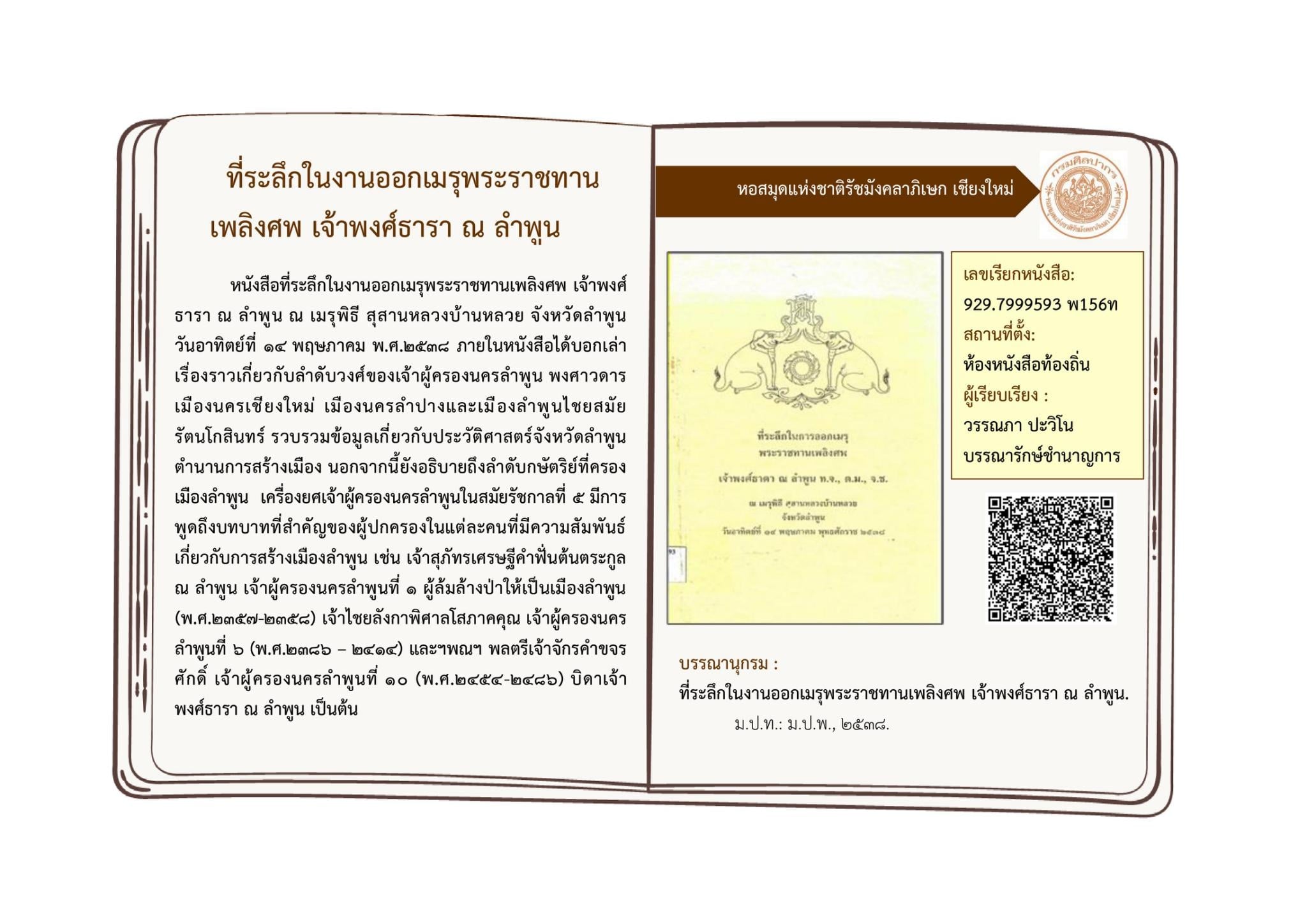 ที่ระลึกในงานออกเมรุพระราชทานเพลิงศพ เจ้าพงศ์ธารา ณ ลำพูน