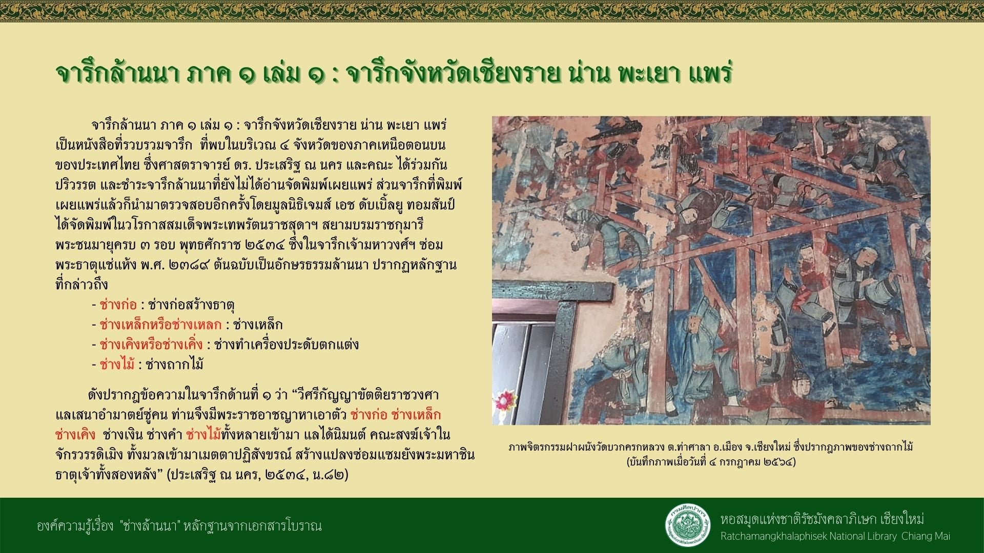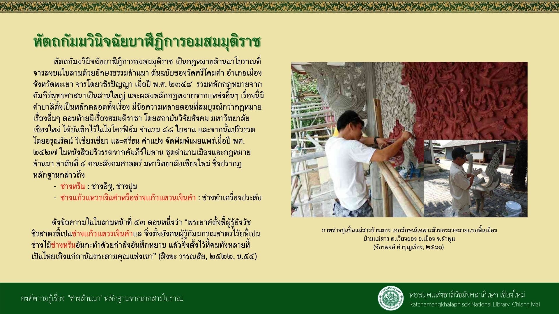 เรื่อง "ช่างล้านนา" หลักฐานจากเอกสารโบราณ