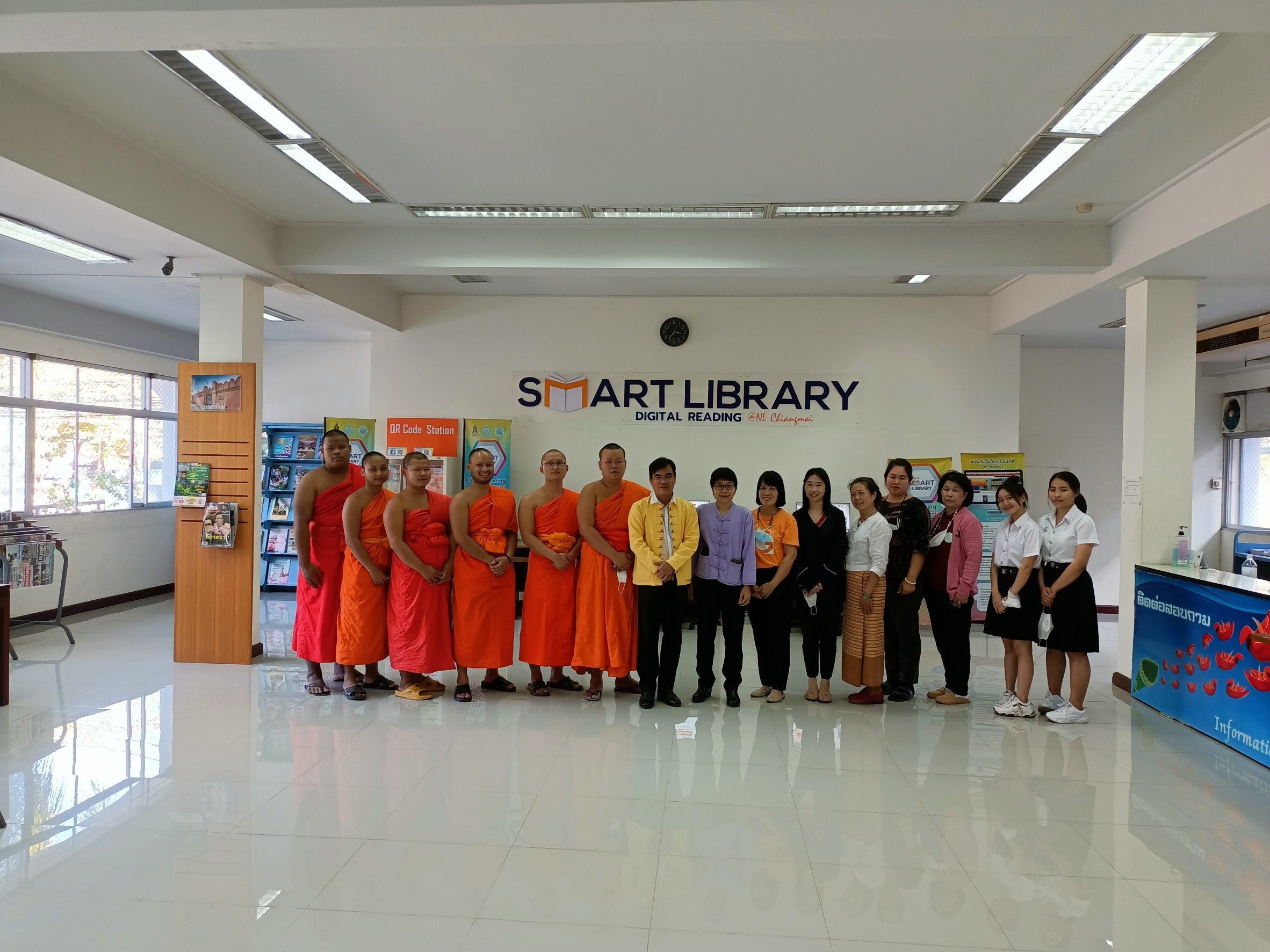 วันที่พฤหัสบดีที่ ๑๒ มกราคม ๒๕๖๖ เวลา ๑๓.๐๐ - ๑๖.๐๐ น. นิสิตคณะครุศาสตร์ ชั้นปีที่ ๑ หลักสูตรสังคมศึกษา มหาวิทยาลัยมหาจุฬาลงกรณราชวิทยาลัย จำนวน ๘ รูป/คน ที่ลงทะเบียนเรียนในรายวิชาเทคนิคการศึกษาระดับอุดมศึกษา พร้อมอาจารย์ไพศาล ศรีวิชัย อาจารย์ประจำวิชา เข้าศึกษาดูงานหอสมุดแห่งชาติรัชมังคลาภิเษก เชียงใหม่ โดยมีนางสาวสุคนธ์ทิพย์ จันทะลุน บรรณารักษ์ชำนาญการ รักษาการในตำแหน่งผู้อำนวยการหอสมุดแห่งชาติรัชมังคลาภิเษก เชียงใหม่ และบุคลากร ให้การต้อนรับและแนะนำทรัพยากรสารสนเทศประเภทต่างๆ ในห้องสมุด เช่น เอกสารโบราณ หนังสือหายาก หนังสือท้องถิ่น หนังสือและวารสารที่จัดพิมพ์โดยกรมศิลปากร และมุม Smart Library เป็นต้น
