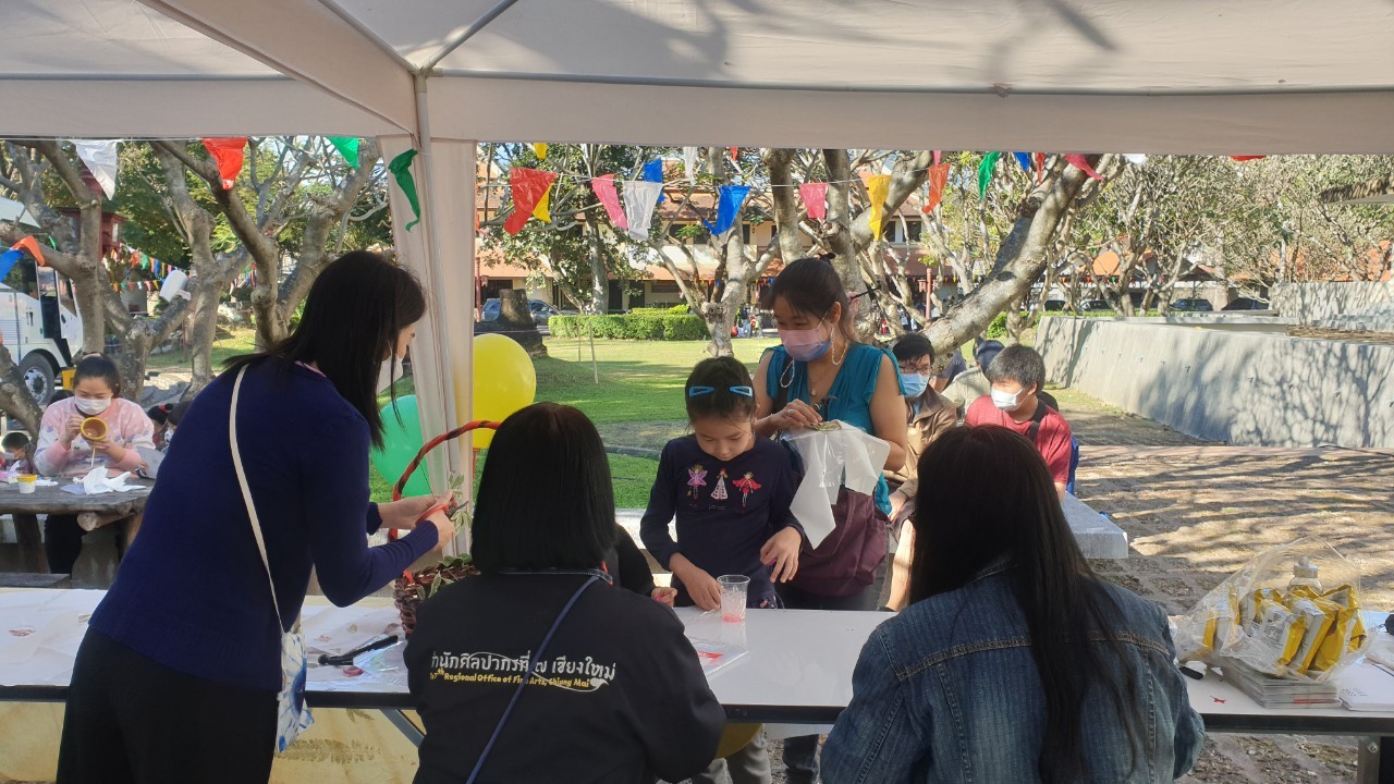 หอสมุดแห่งชาติรัชมังคลาภิเษก เชียงใหม่ และบุคลากร ร่วมจัดซุ้มกิจกรรม สร้างลวดลายบนผืนผ้าด้วยวัสดุธรรมชาติ ในงานวันเด็กแห่งชาติ ประจำปี ๒๕๖๖ ณ พิพิธภัณฑสถานแห่งชาติ เชียงใหม่