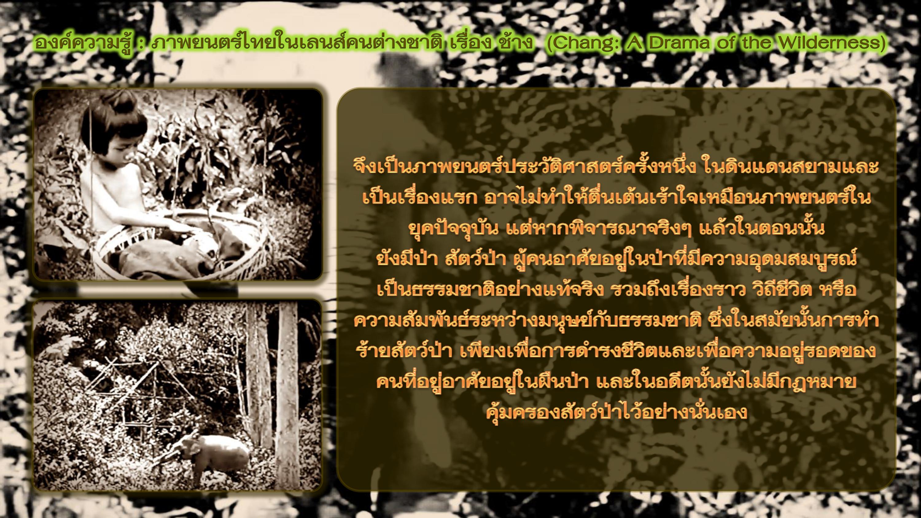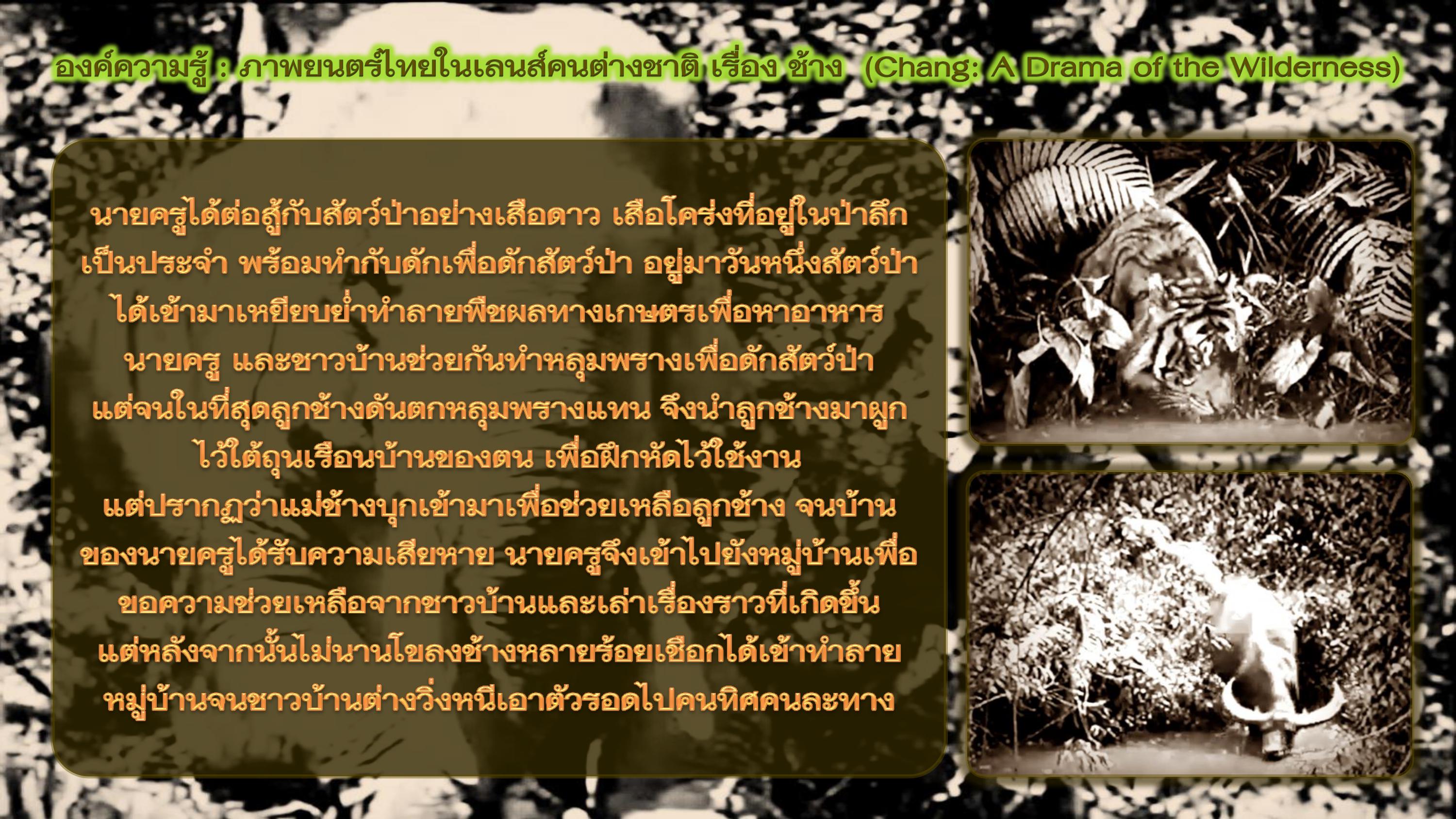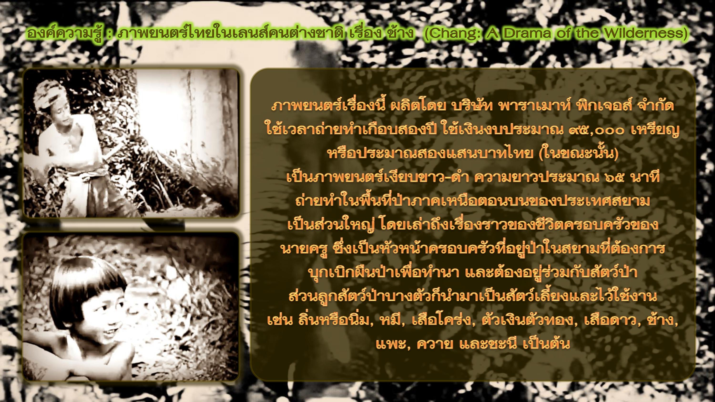 สืบค้นเมื่อ ๒๗ มกราคม ๒๕๖๖, จาก https://www.facebook.com/thairanger/videos/ช้าง-chang-a-drama-of-the-wilderness-