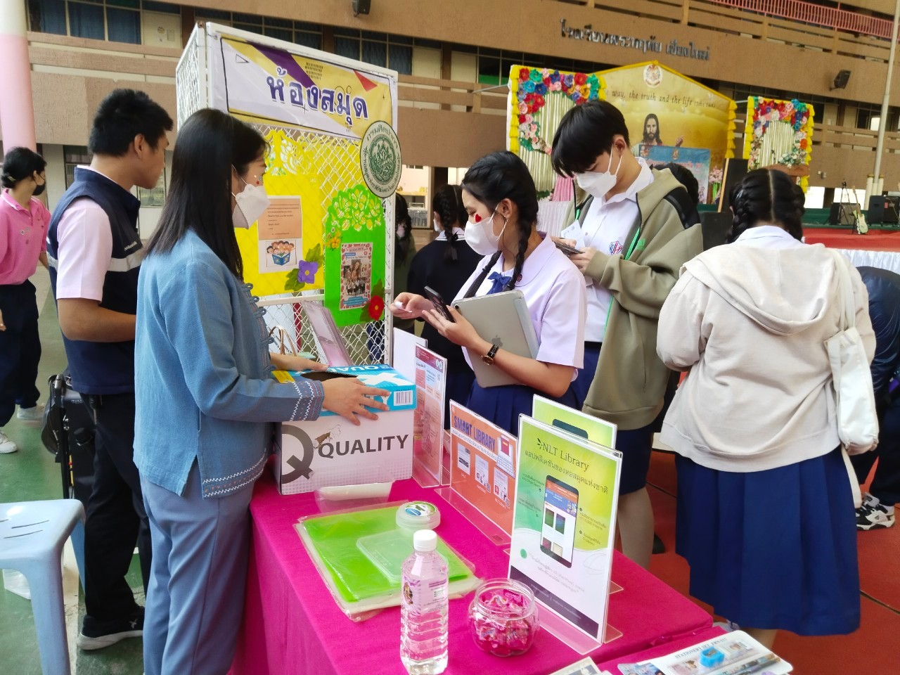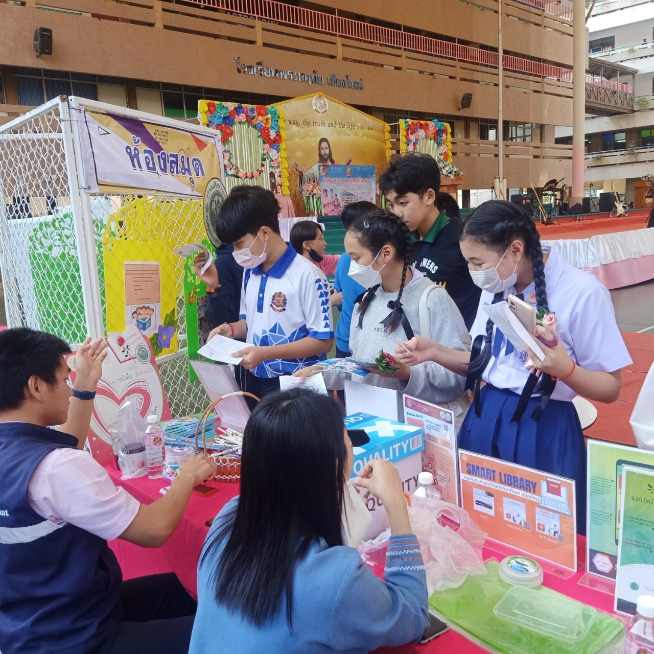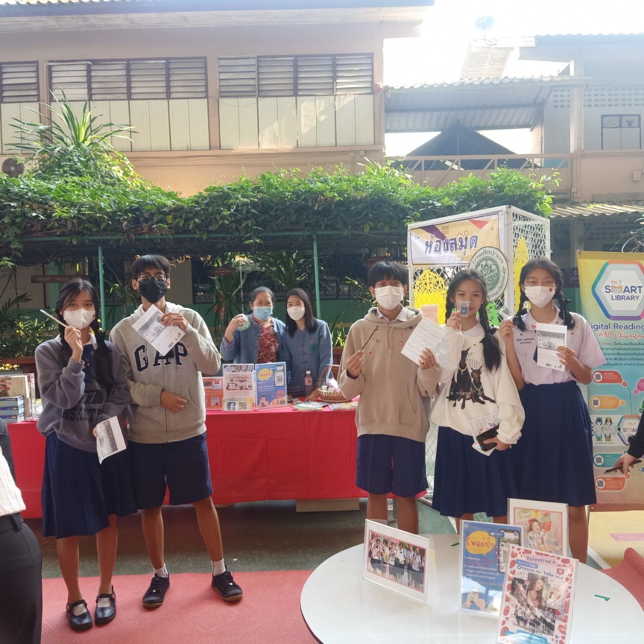 บรรณารักษ์และเจ้าหน้าที่ หอสมุดแห่งชาติรัชมังคลาภิเษก เชียงใหม่ ร่วมจัดกิจกรรมส่งเสริมการอ่าน read for love ชอบกด like ใช่ติด love ภายใต้โครงการพัฒนาและส่งเสริมหอสมุดแห่งชาติเพื่อให้เป็นแหล่งเรียนรู้ตลอดชีวิต (ทั้งส่วนกลางและส่วนภูมิภาค) ประจำปีงบประมาณ ๒๕๖๖ ณ โรงเรียนพระหฤทัย เชียงใหม่