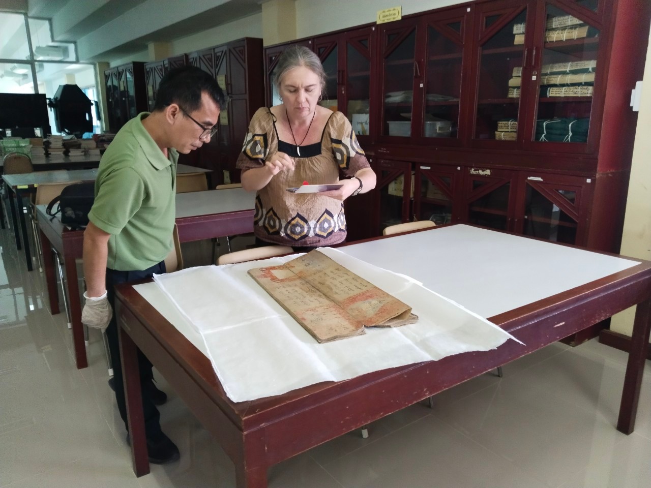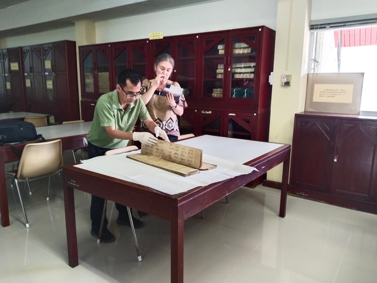 วันพุธที่ ๘ มีนาคม ๒๕๖๖ เวลา ๑๓.๓๐ - ๑๕.๐๐ น. คณะนักวิจัยจากสำนักศิลปะและวัฒนธรรม มหาวิทยาลัยราชภัฏเชียงใหม่ และ University of Hamburg สหพันธ์สาธารณรัฐเยอรมนี ซึ่งได้ดำเนินงานวิจัยร่วมกันในหัวข้อ “ A Fading Tradition: The Production of Manuscripts in Northern Thailand and Laos” จำนวน ๖ คน เข้าศึกษาดูงานเกี่ยวกับเอกสารตัวเขียนประเภทคัมภีร์ใบลาน พับสา ณ ห้องภาษาโบราณ หอสมุดแห่งชาติรัชมังคลาภิเษก เชียงใหม่ โดยมีนางวรรณภา ปะวิโน บรรณารักษ์ชำนาญการ ให้การต้อนรับและนำชม