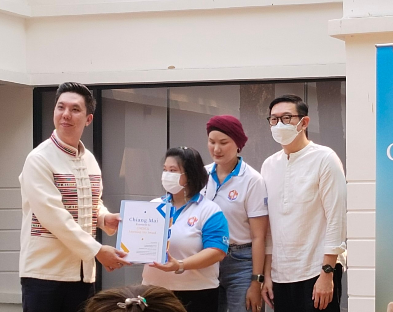 นางสาวสุคนธ์ทิพย์ จันทะลุน บรรณารักษ์ชำนาญการ รักษาการในตำแหน่งผู้อำนวยการหอสมุดแห่งชาติรัชมังคลาภิเษก เชียงใหม่ และนางวรรณภา ปะวิโน บรรณารักษ์ชำนาญการ เข้าร่วมกิจกรรม Chiang Mai City forward to UNESCO's Learning City Award