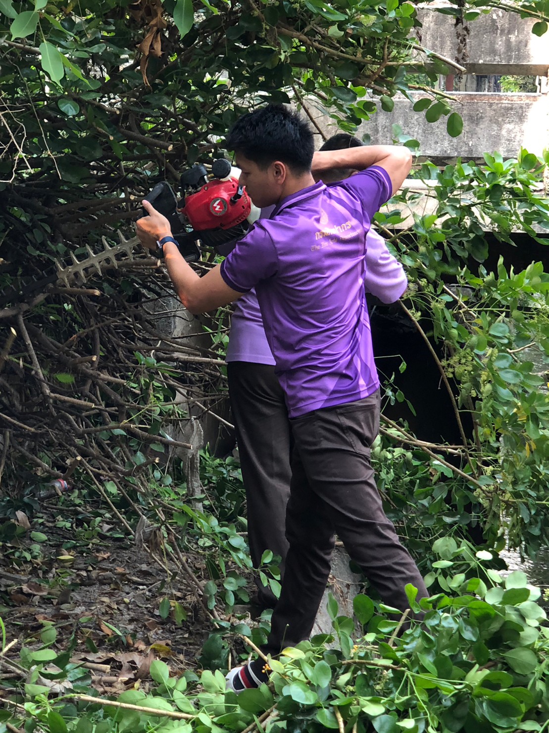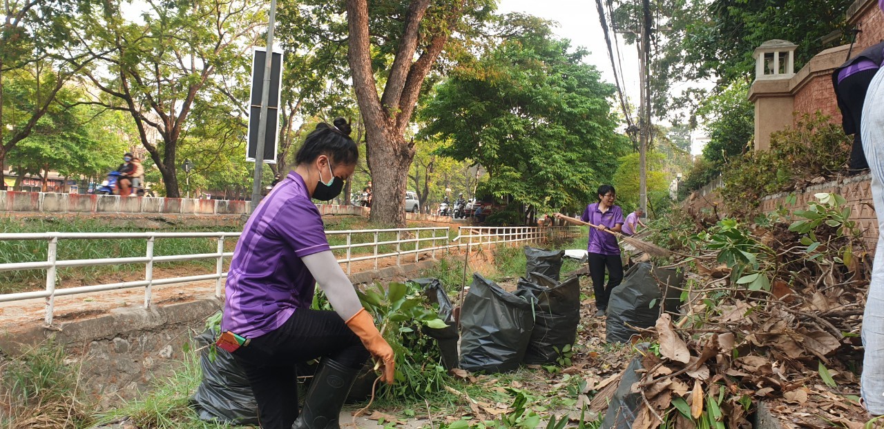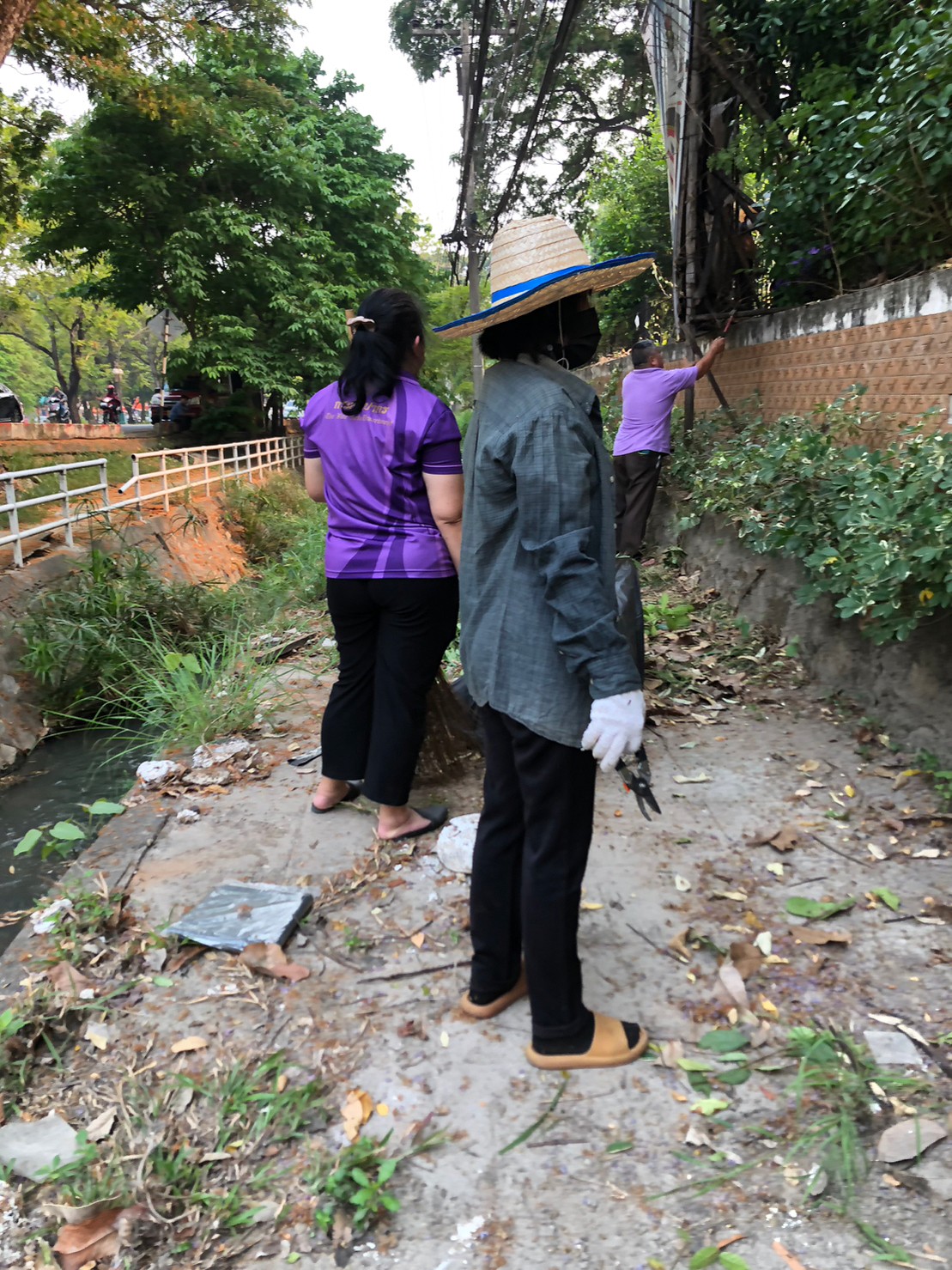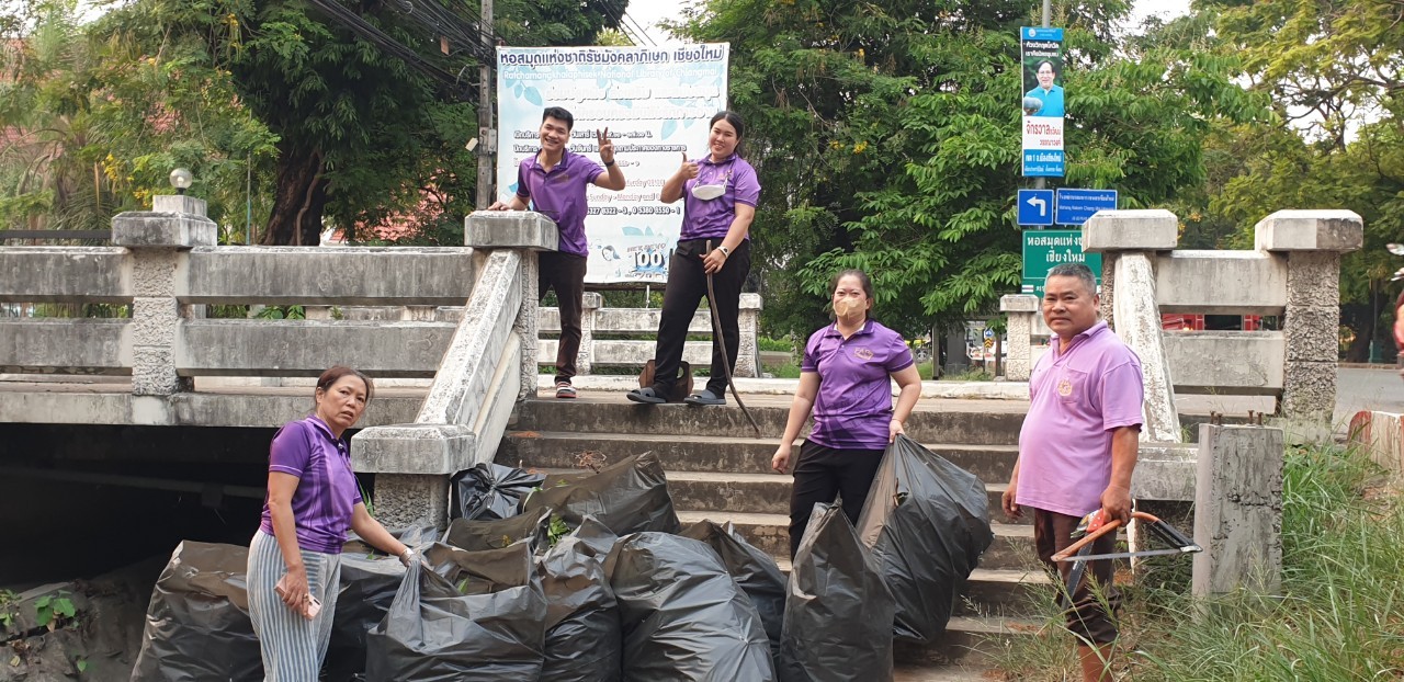 บุคลากรหอสมุดแห่งชาติรัชมังคลาภิเษก เชียงใหม่ ร่วมกันทำความสะอาดบริเวณด้านหน้าหอสมุดแห่งชาติรัชมังคลาภิเษก เชียงใหม่ ในกิจกรรมจิตอาสาพัฒนาแหล่งเรียนรู้ทางวัฒนธรรม เนื่องในวันอนุรักษ์มรดกไทย ประจำปี ๒๕๖๖