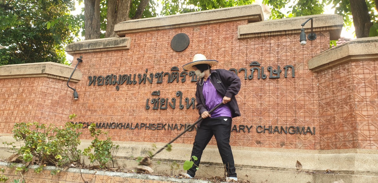 วันพุธที่ ๕ เมษายน ๒๕๖๖ เวลา ๑๕.๓๐ น. นางสาวสุคนธ์ทิพย์ จันทะลุน บรรณารักษ์ชำนาญการ รักษาการในตำแหน่งผู้อำนวยการหอสมุดแห่งชาติรัชมังคลาภิเษก เชียงใหม่ พร้อมด้วยบุคลากร ร่วมกันทำความสะอาดบริเวณด้านหน้าหอสมุดแห่งชาติรัชมังคลาภิเษก เชียงใหม่ ในกิจกรรมจิตอาสาพัฒนาแหล่งเรียนรู้ทางวัฒนธรรม เนื่องในวันอนุรักษ์มรดกไทย ประจำปี ๒๕๖๖