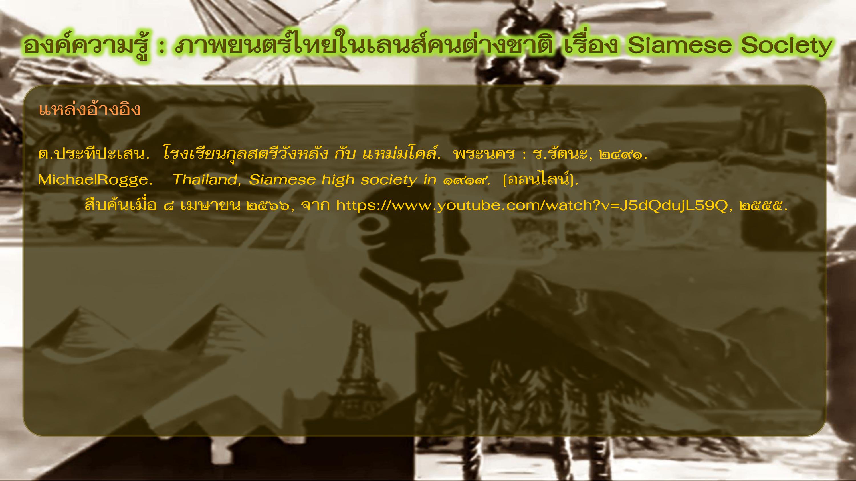 MichaelRogge. Thailand, Siamese high society in ๑๙๑๙. [ออนไลน์]. สืบค้นเมื่อ ๑๒ เมษายน ๒๕๖๖, จาก https://www.youtube.com/watch?v=J5dQdujL59Q, ๒๕๕๕.