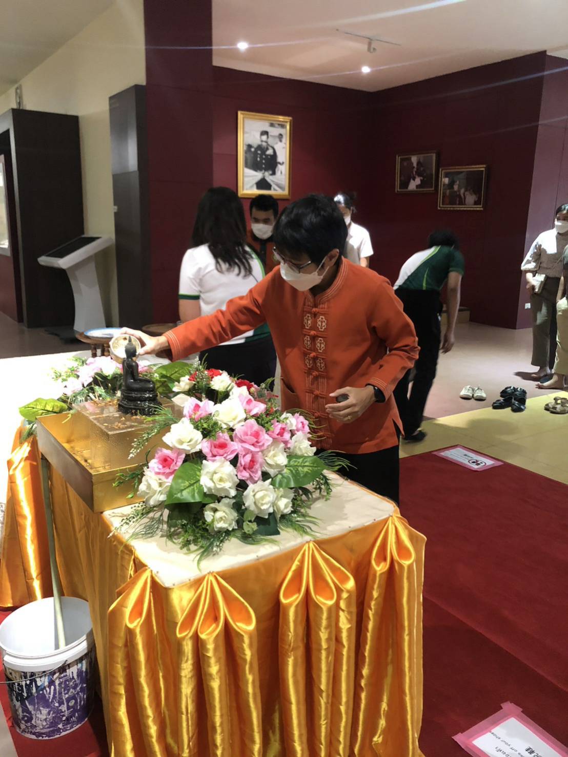 นางสาวสุคนธ์ทิพย์ จันทะลุน บรรณารักษ์ชำนาญการ รักษาการในตำแหน่งผู้อำนวยการหอสมุดแห่งชาติรัชมังคลาภิเษก เชียงใหม่ และบุคลากร เข้าร่วมพิธีทำบุญครบรอบ ๕๐ ปี พิพิธภัณฑสถานแห่งชาติ เชียงใหม่