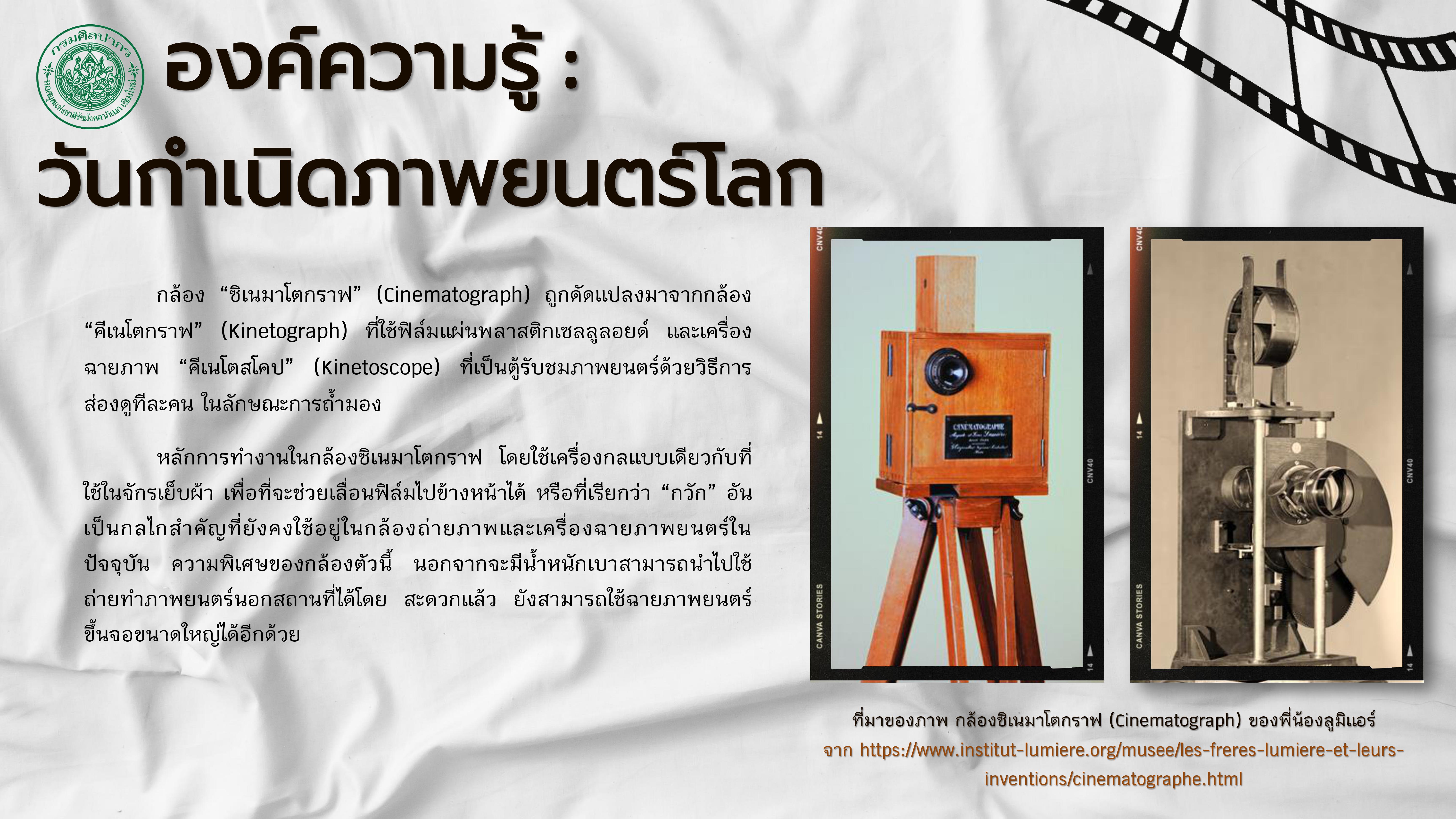 l’Institut Lumière. Le Cinématographe Lumière. [ออนไลน์]. สืบค้นเมื่อ ๒๖ พฤษภาคม ๒๕๖๖,