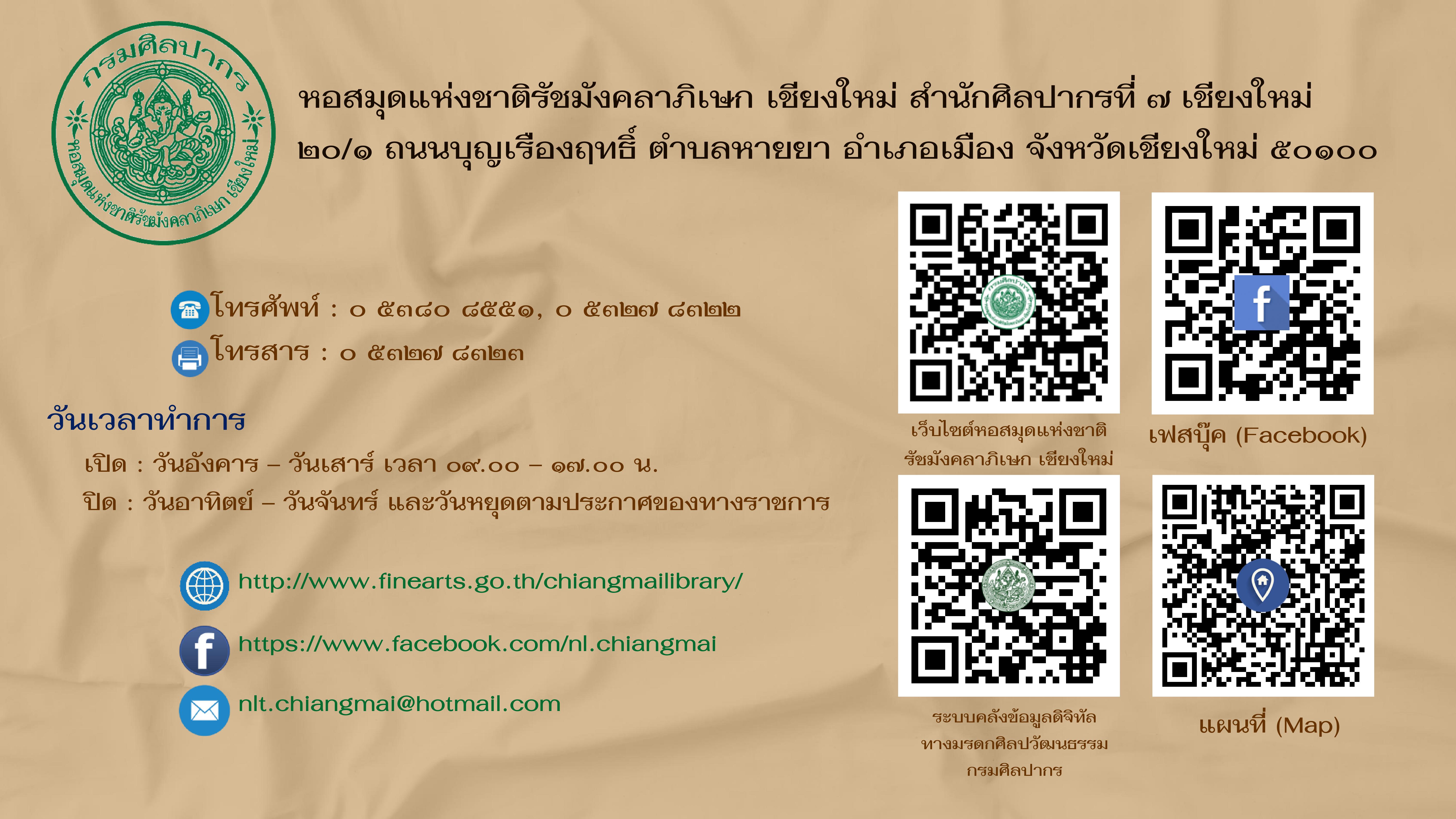 หอสมุดแห่งชาติรัชมังคลาภิเษก เชียงใหม่ สำนักศิลปากรที่ ๗ เชียงใหม่