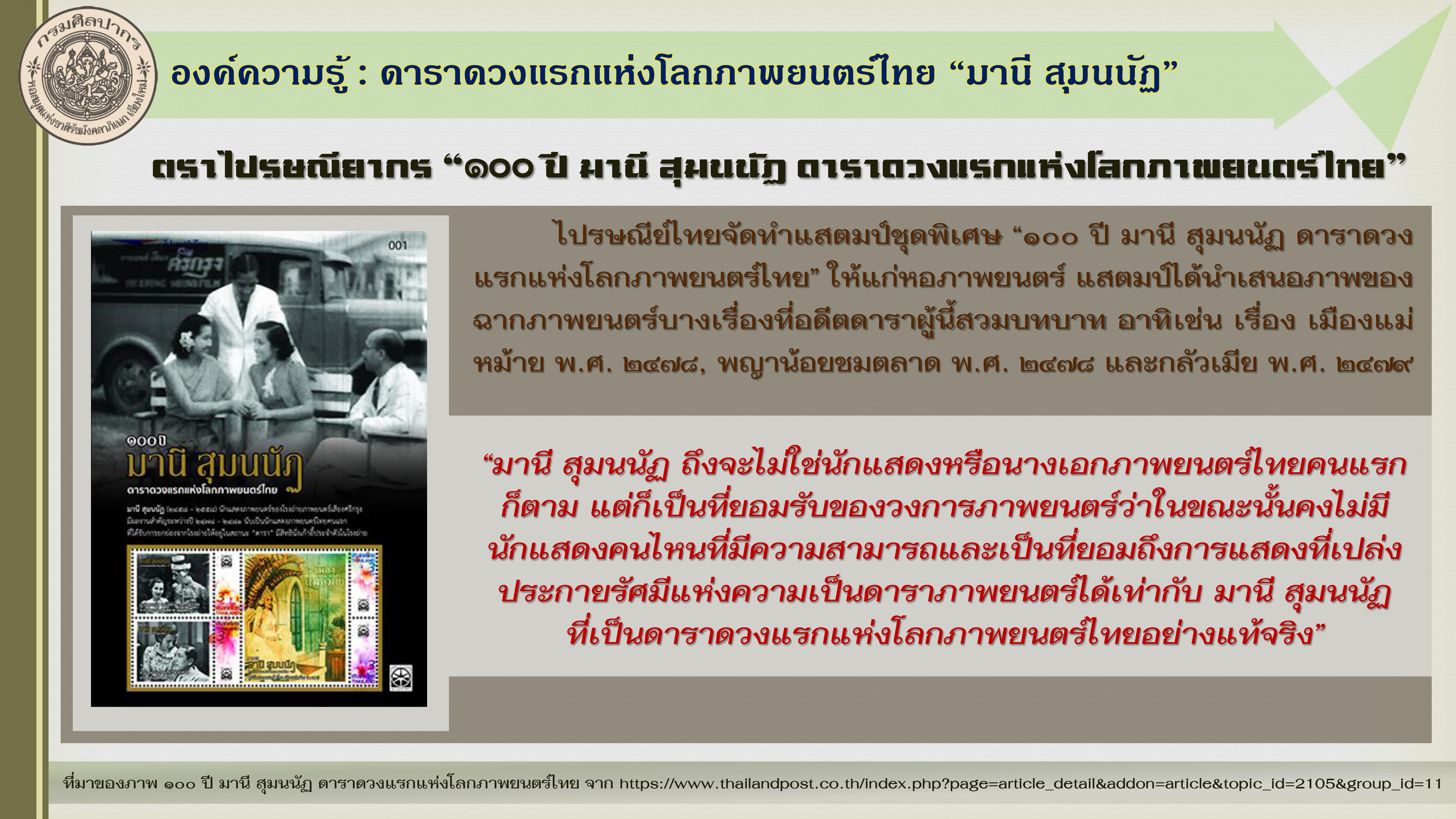 ไปรษณีย์ไทย. หนึ่งศตวรรษ “ดาราดวงแรก” แห่งโลกภาพยนตร์ไทย. [ออนไลน์]. สืบค้นเมื่อ ๙ มิถุนายน ๒๕๖๖,