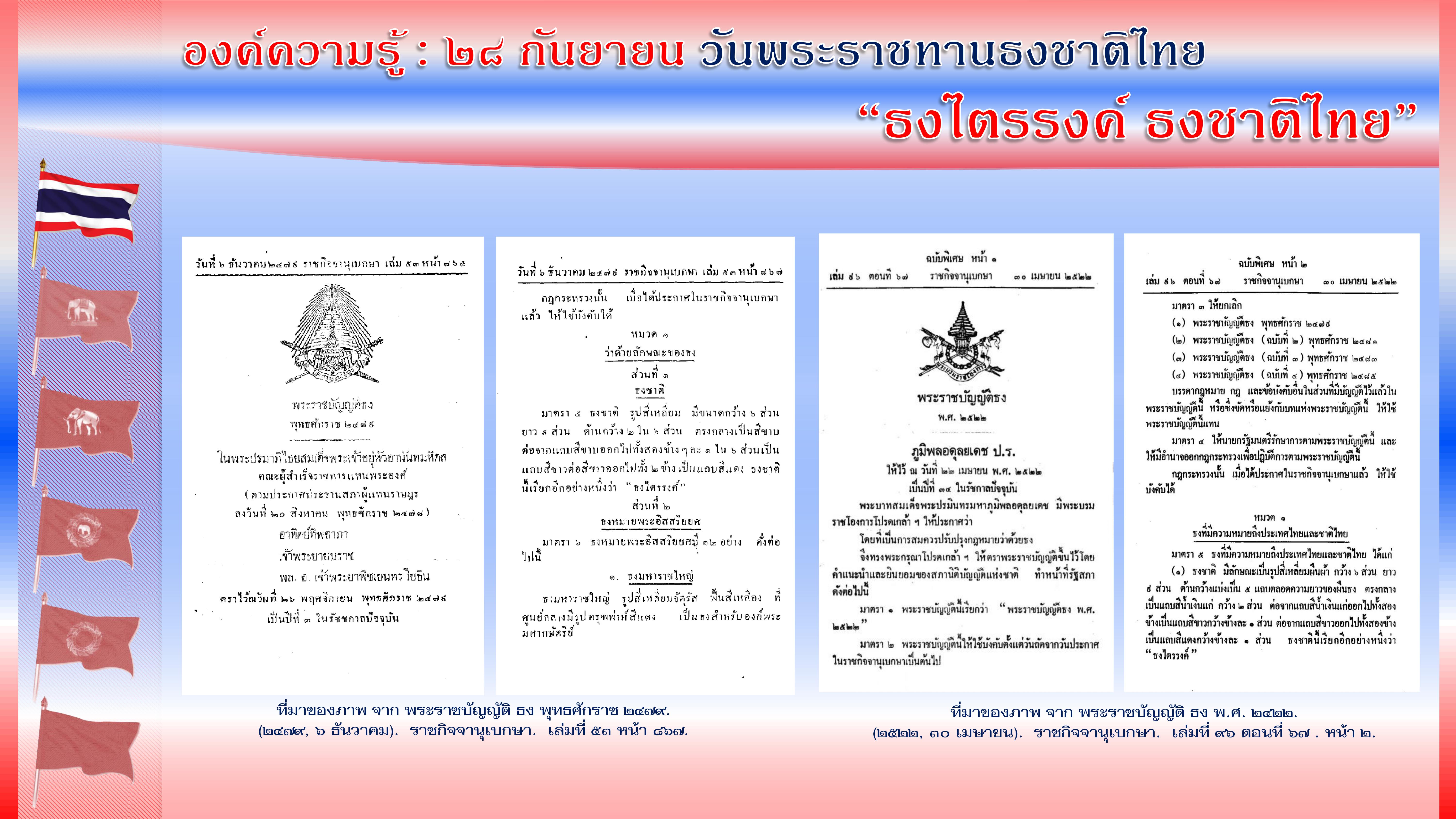พระราชบัญญัติ ธง พุทธศักราช ๒๔๗๙. (๒๔๗๙, ๖ ธันวาคม). ราชกิจจานุเบกษา. เล่มที่ ๕๓ หน้า ๘๖๗.
