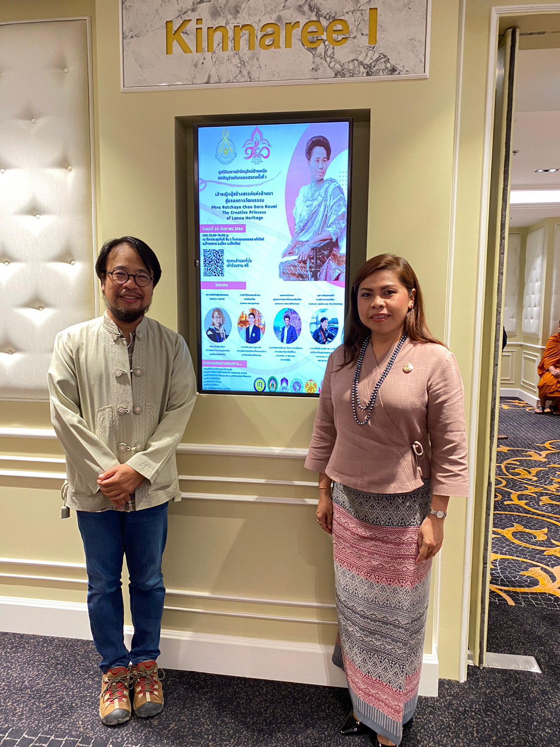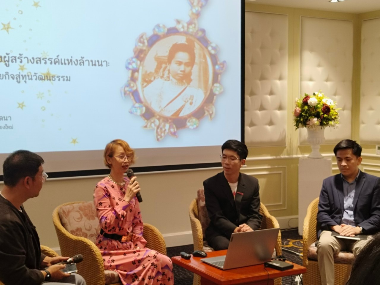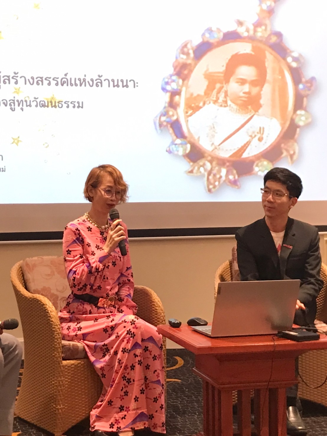 นางสาวปุณณภา สุขสาคร ผู้อำนวยการหอสมุดแห่งชาติรัชมังคลาภิเษก เชียงใหม่ พร้อมด้วยนางวรรณภา ปะวิโน บรรณารักษ์ชำนาญการ เข้าร่วมรับฟังการเสวนาเรื่อง เจ้าหญิงผู้สร้างสรรค์แห่งล้านนาสู่มรดกวัฒนธรรม