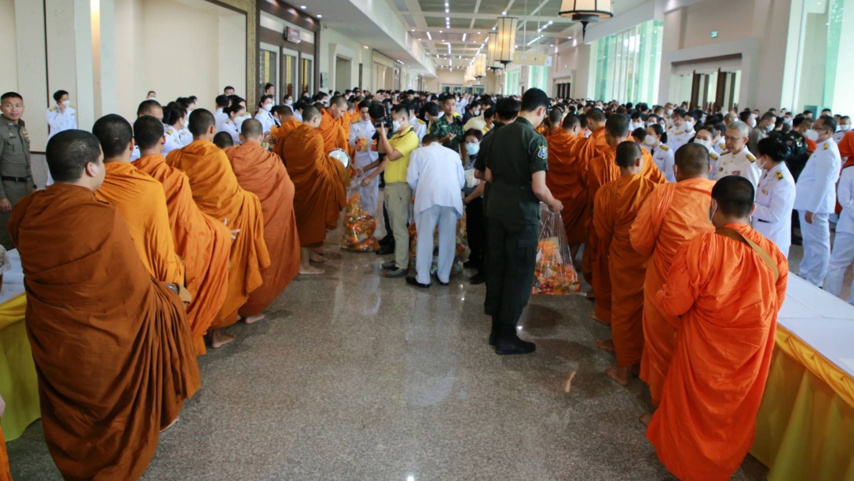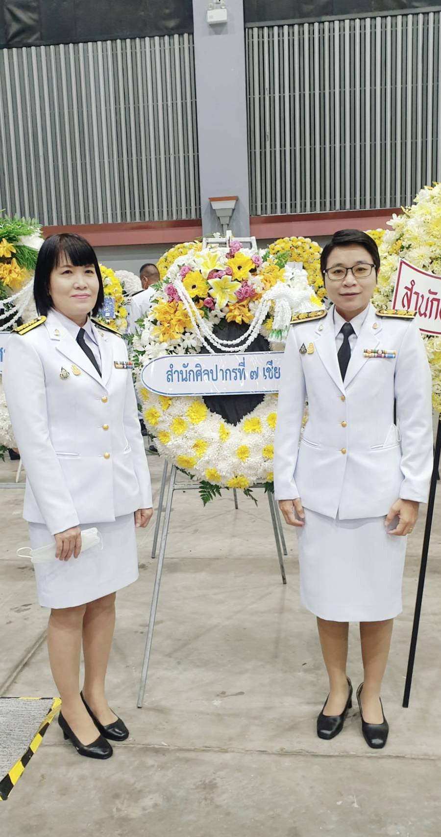 นางสาวสุคนธ์ทิพย์ จันทะลุน บรรณารักษ์ชำนาญการ รักษาการในตำแหน่งผู้อำนวยการหอสมุดแห่งชาติรัชมังคลาภิเษก เชียงใหม่ และนางพิมพ์สวาท จิตวรรณา เจ้าพนักงานห้องสมุดชำนาญงาน เข้าร่วมพิธีทำบุญตักบาตรถวายพระราชกุศล เนื่องในวันนวมินทรมหาราช