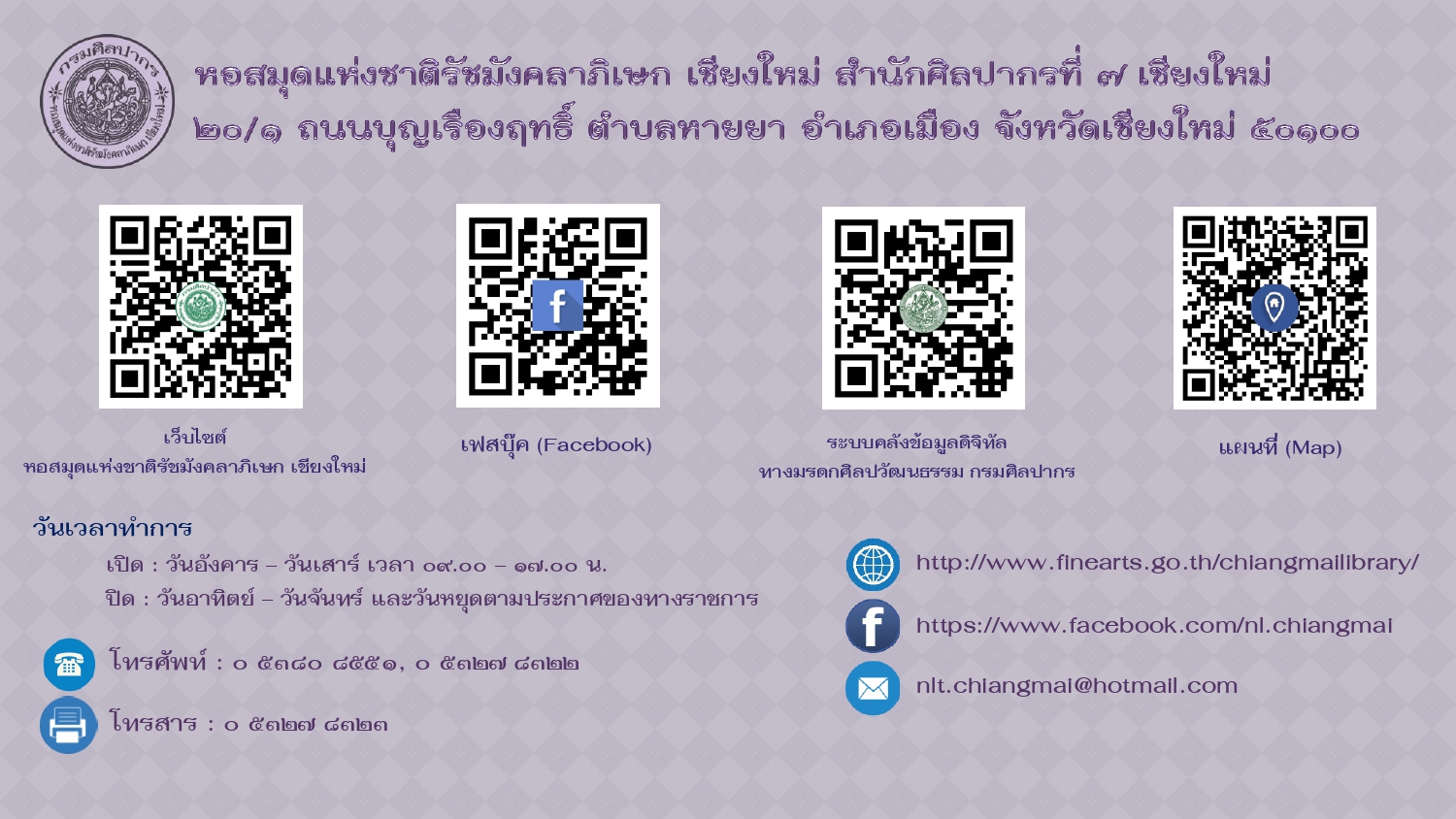 หอสมุดแห่งชาติรัชมังคลาภิเษก เชียงใหม่ สำนักศิลปากรที่ ๗ เชียงใหม่