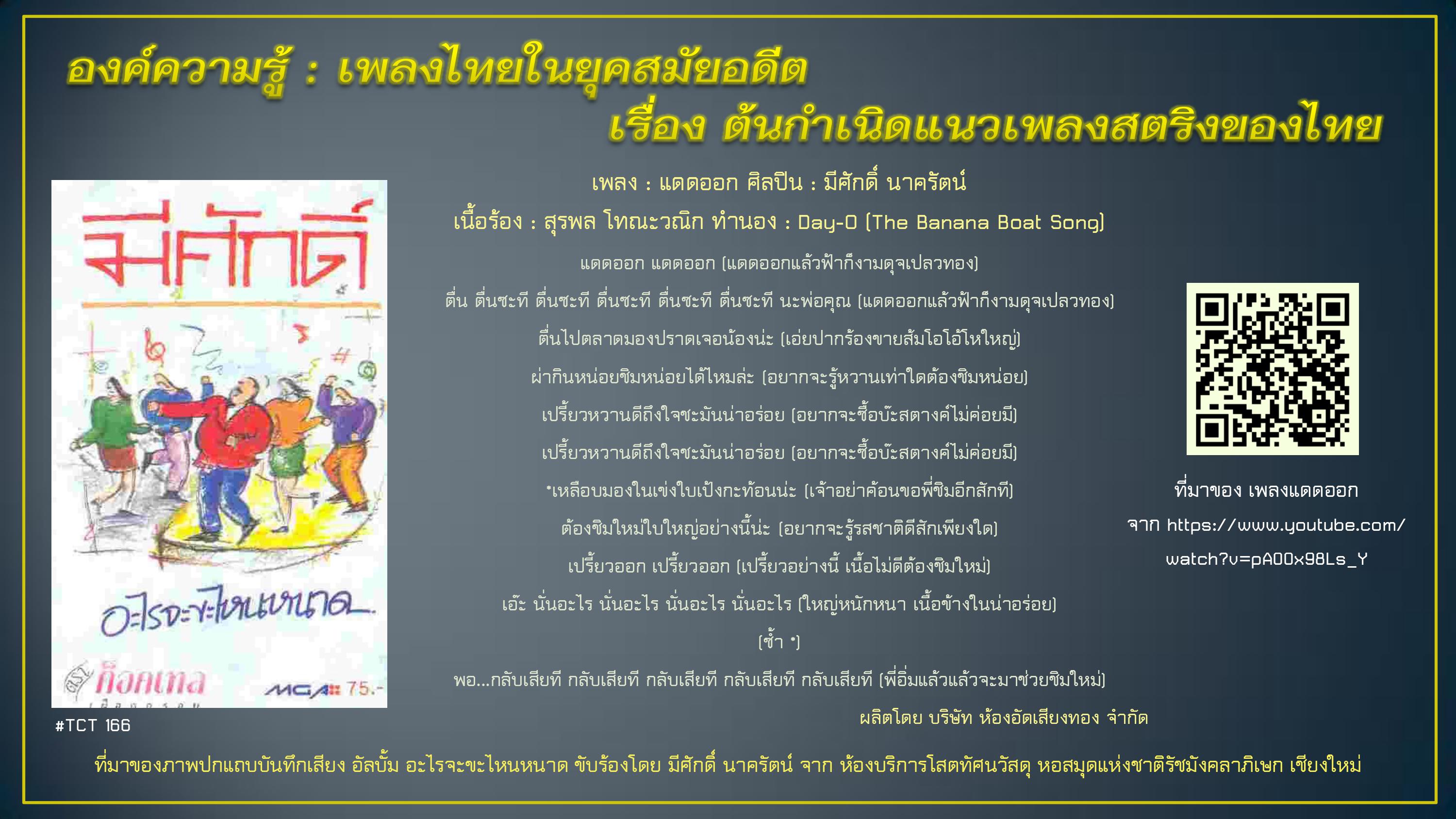 Harry Belafonte. Banana Boat (Day-O). [ออนไลน์]. สืบค้นเมื่อ ๑๐ กุมภาพันธ์ ๒๕๖๗, จาก https://www.youtube.com/watch?v=DYYkJ0kwNss, ๒๕๕๙,