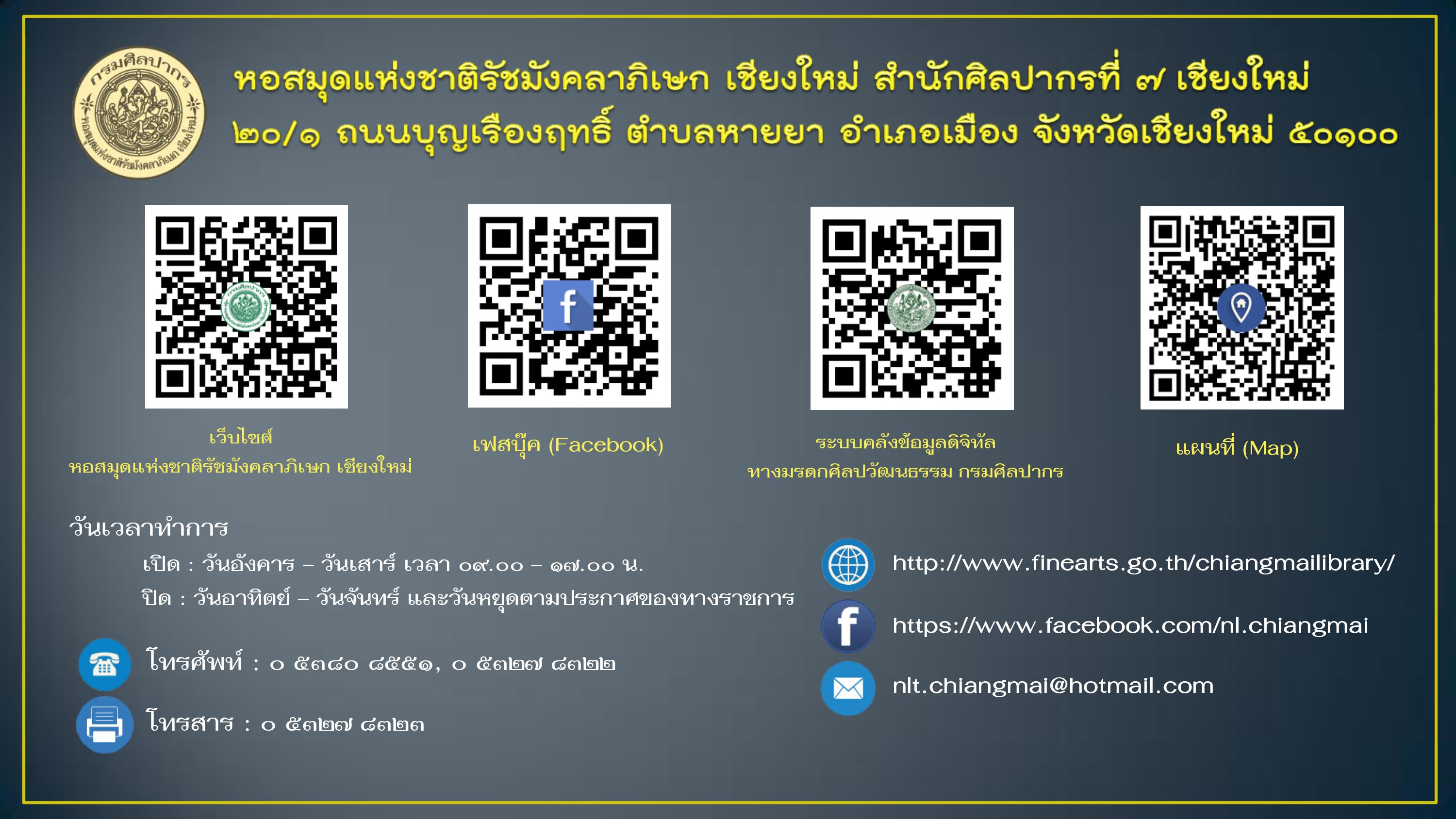 หอสมุดแห่งชาติรัชมังคลาภิเษก เชียงใหม่ สำนักศิลปากรที่ ๗ เชียงใหม่ กรมศิลปากร กระทรวงวัฒนธรรม