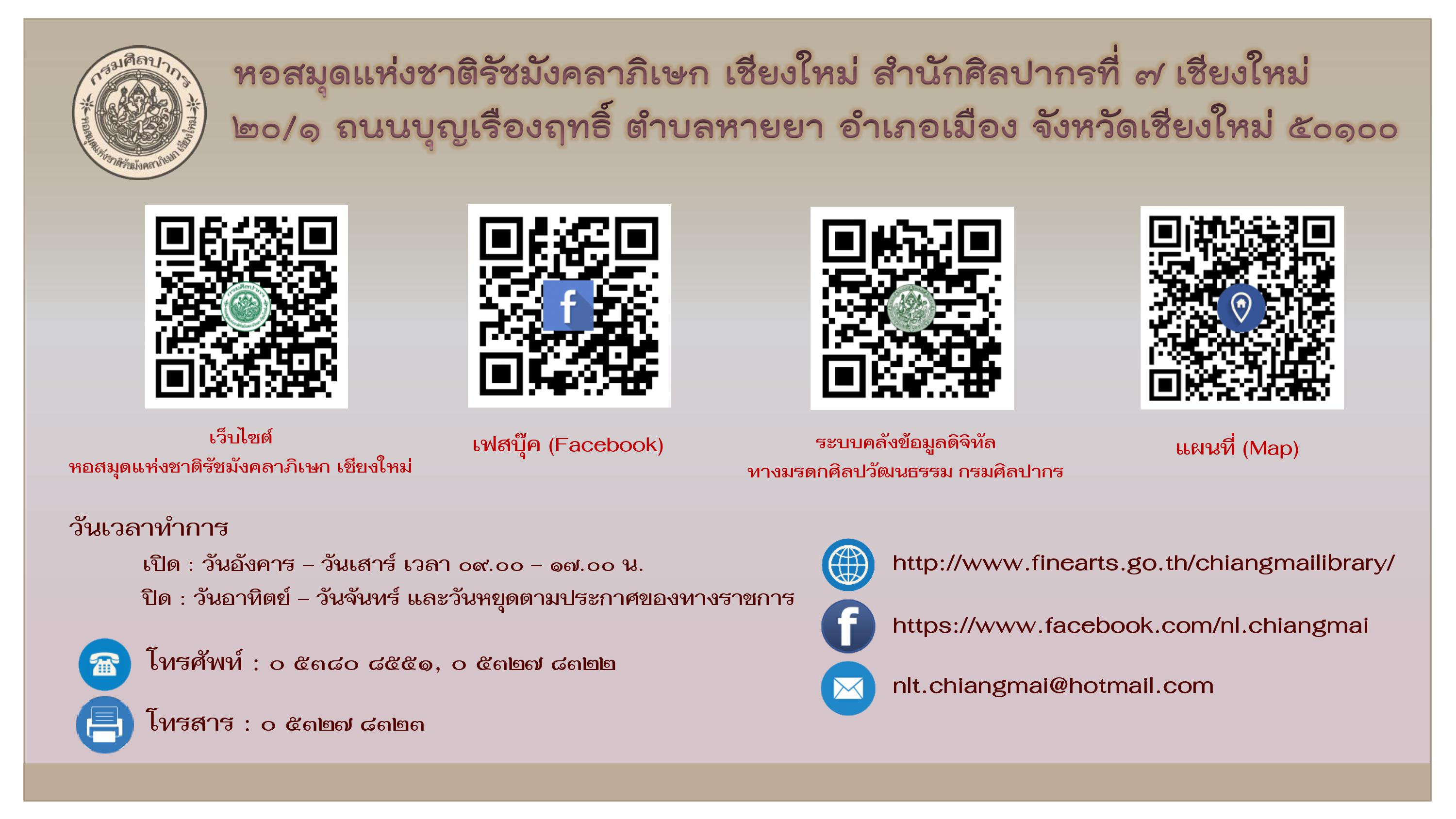 หอสมุดแห่งชาติรัชมังคลาภิเษก เชียงใหม่ สำนักศิลปากรที่ ๗ เชียงใหม่ กรมศิลปากร กระทรวงวัฒนธรรม