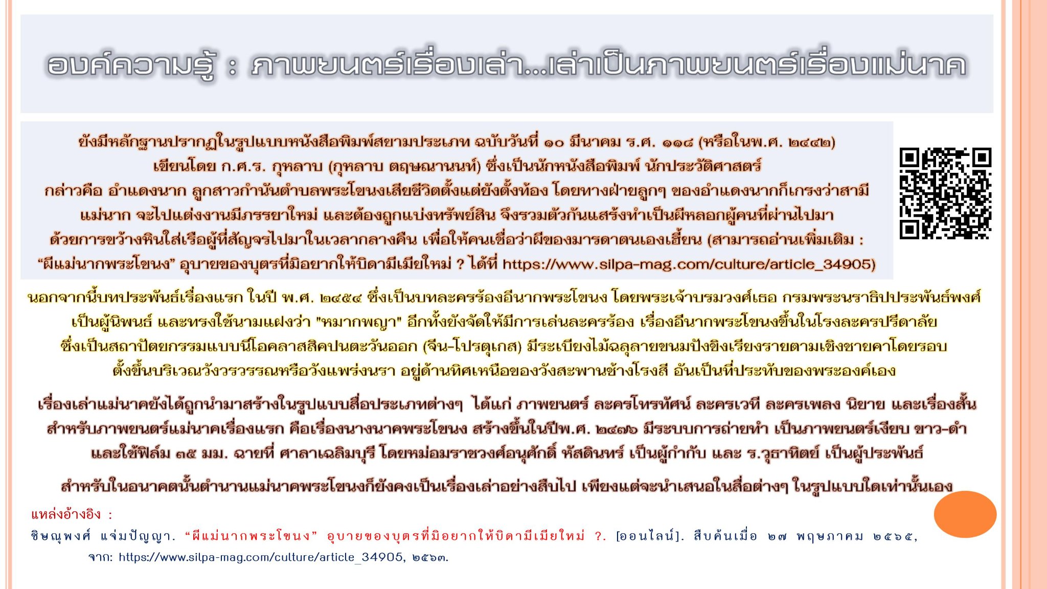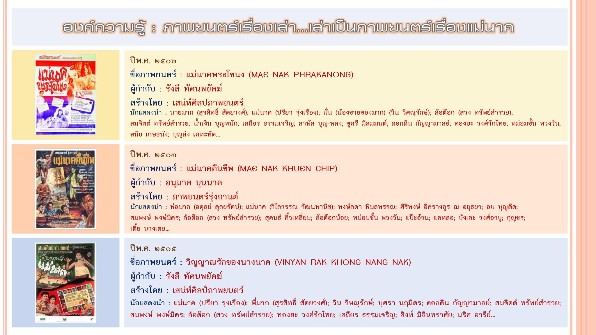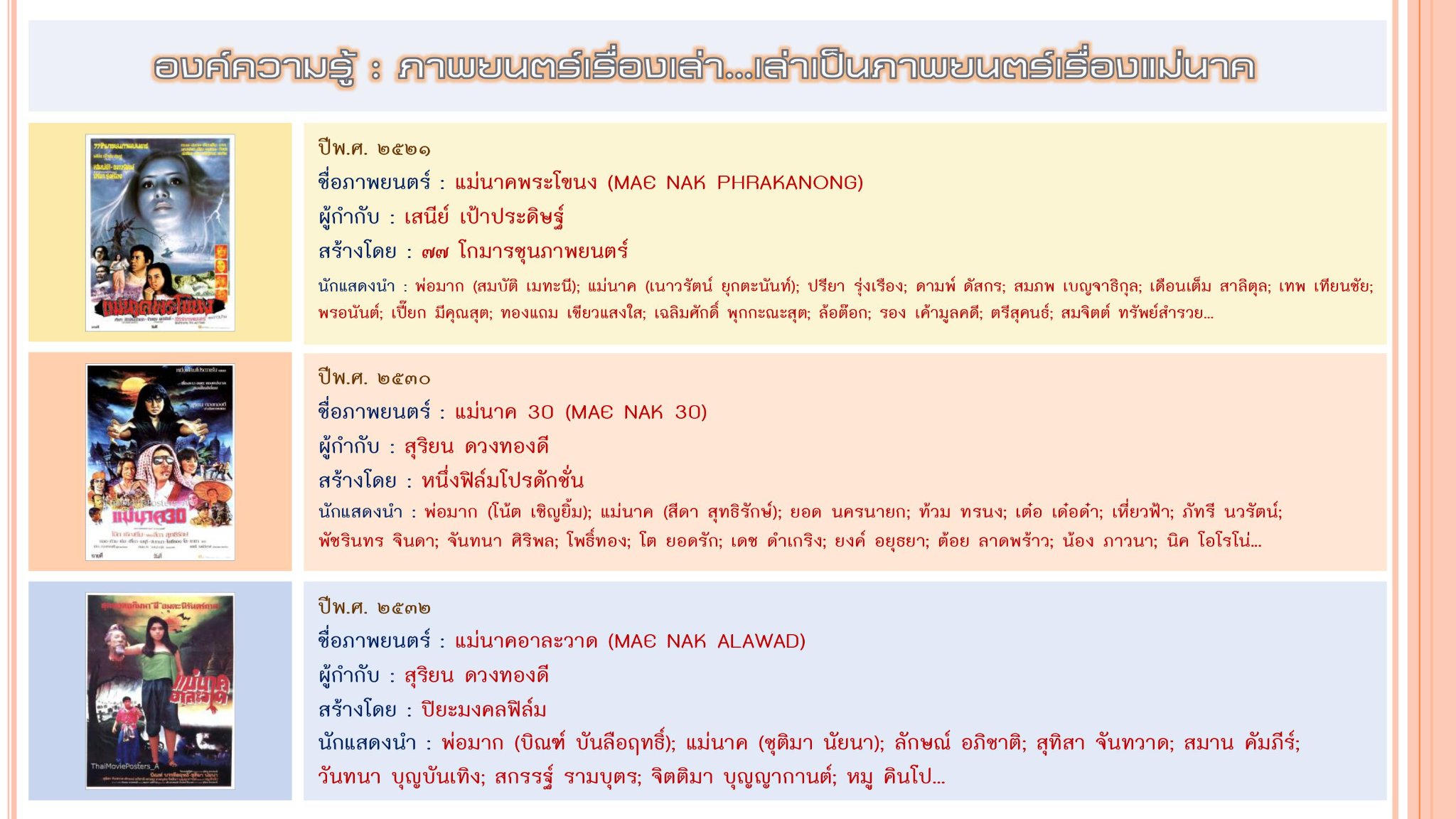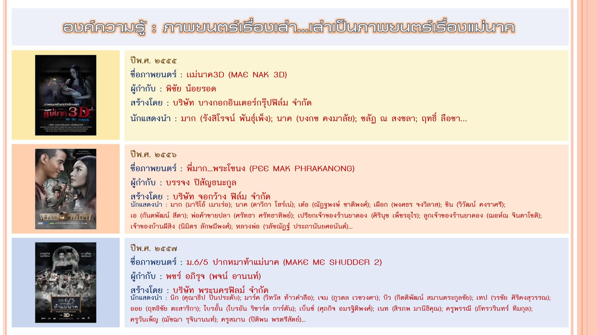 ชิษณุพงศ์ แจ่มปัญญา. “ผีแม่นากพระโขนง”