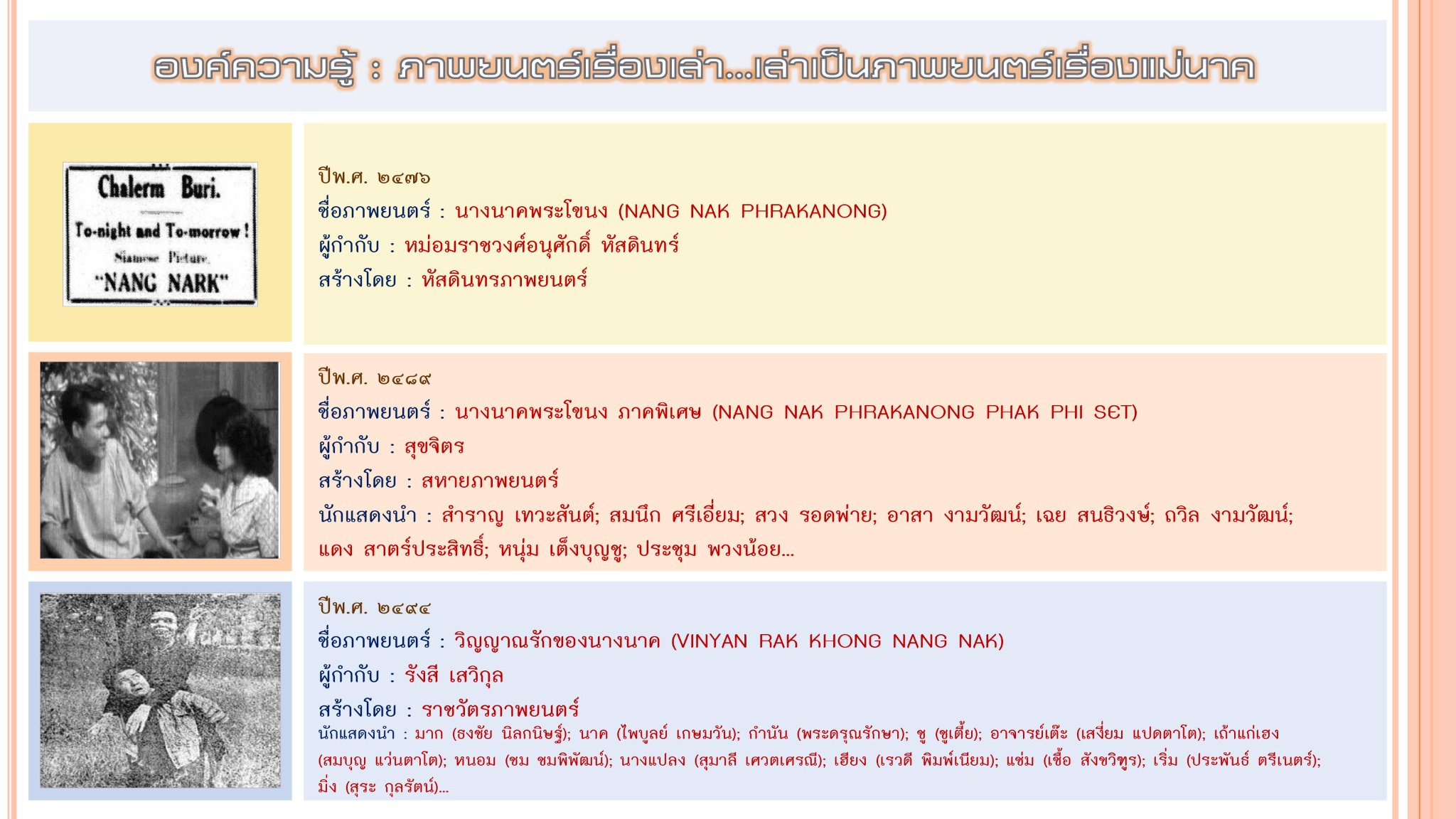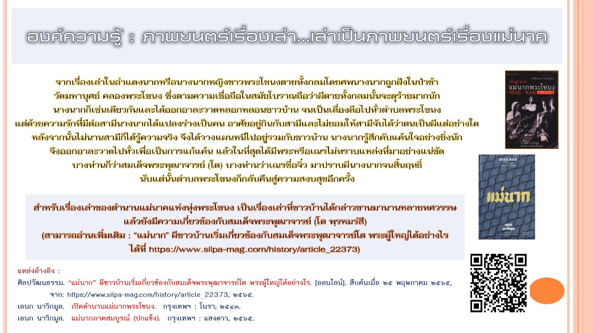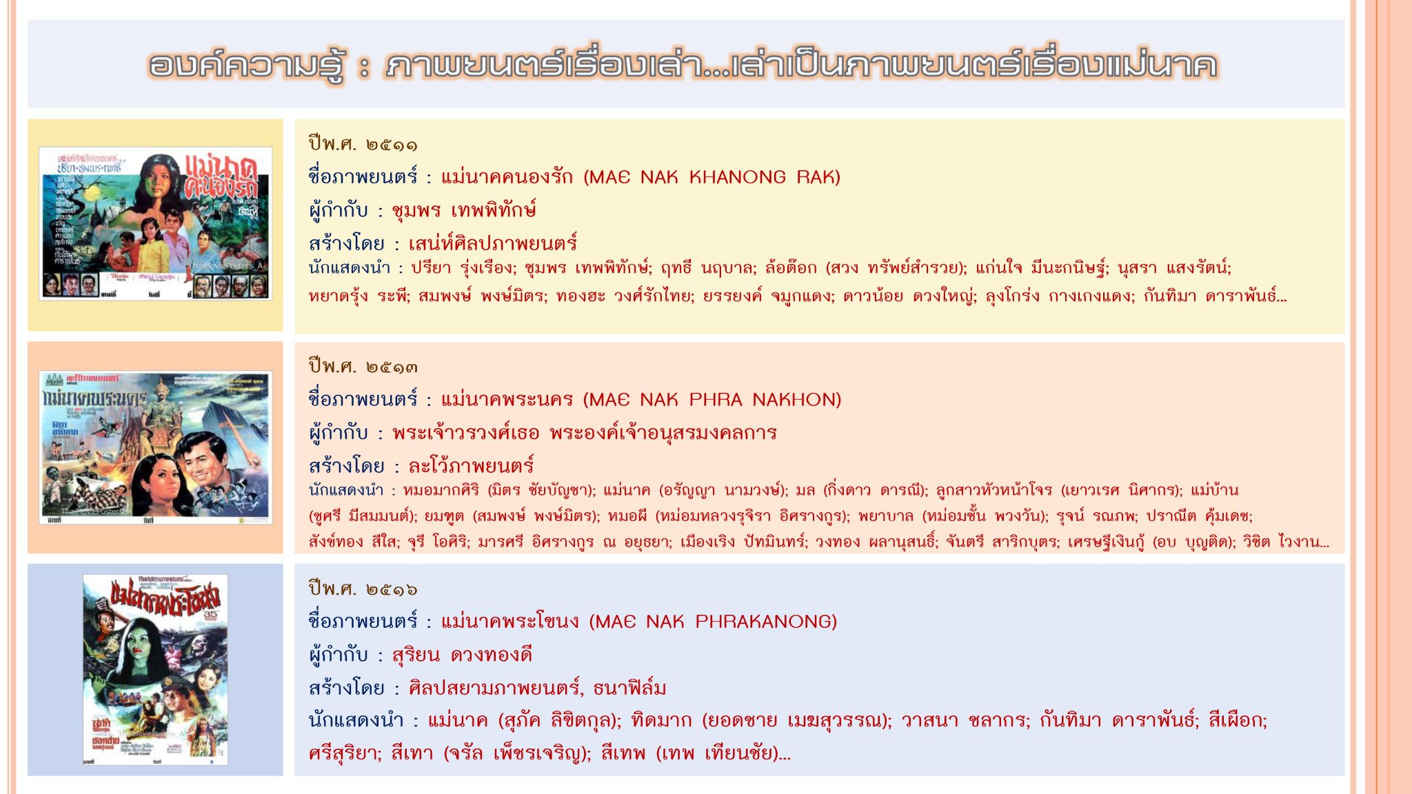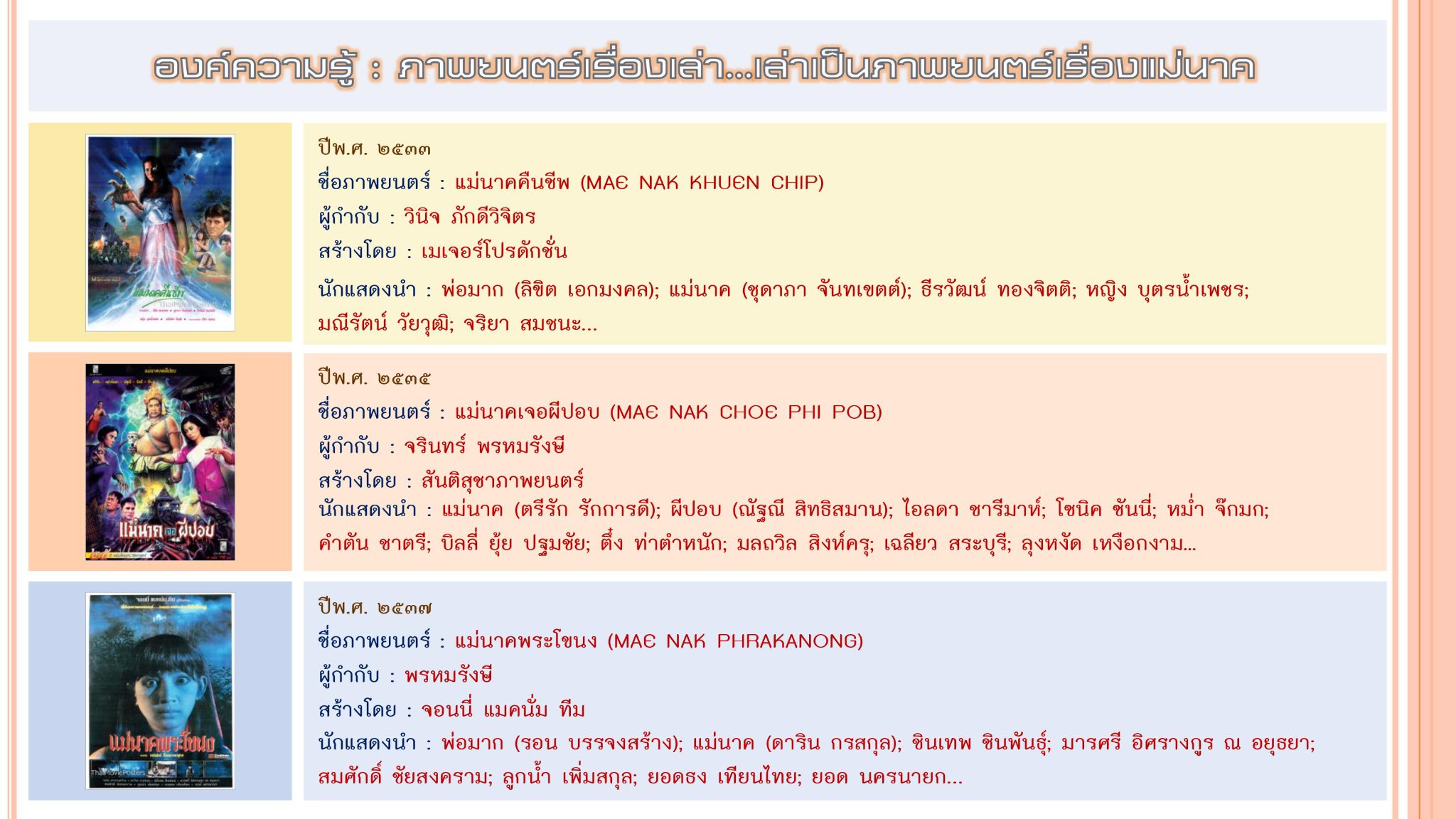 ชิษณุพงศ์ แจ่มปัญญา. “ผีแม่นากพระโขนง”