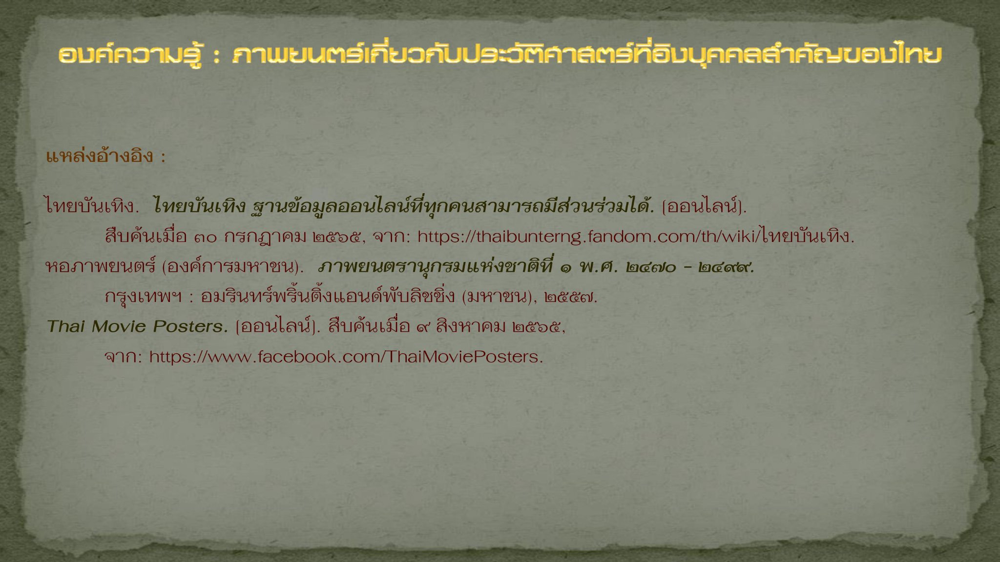 Thai Movie Posters. [ออนไลน์]. สืบค้นเมื่อ ๒ สิงหาคม ๒๕๖๕,