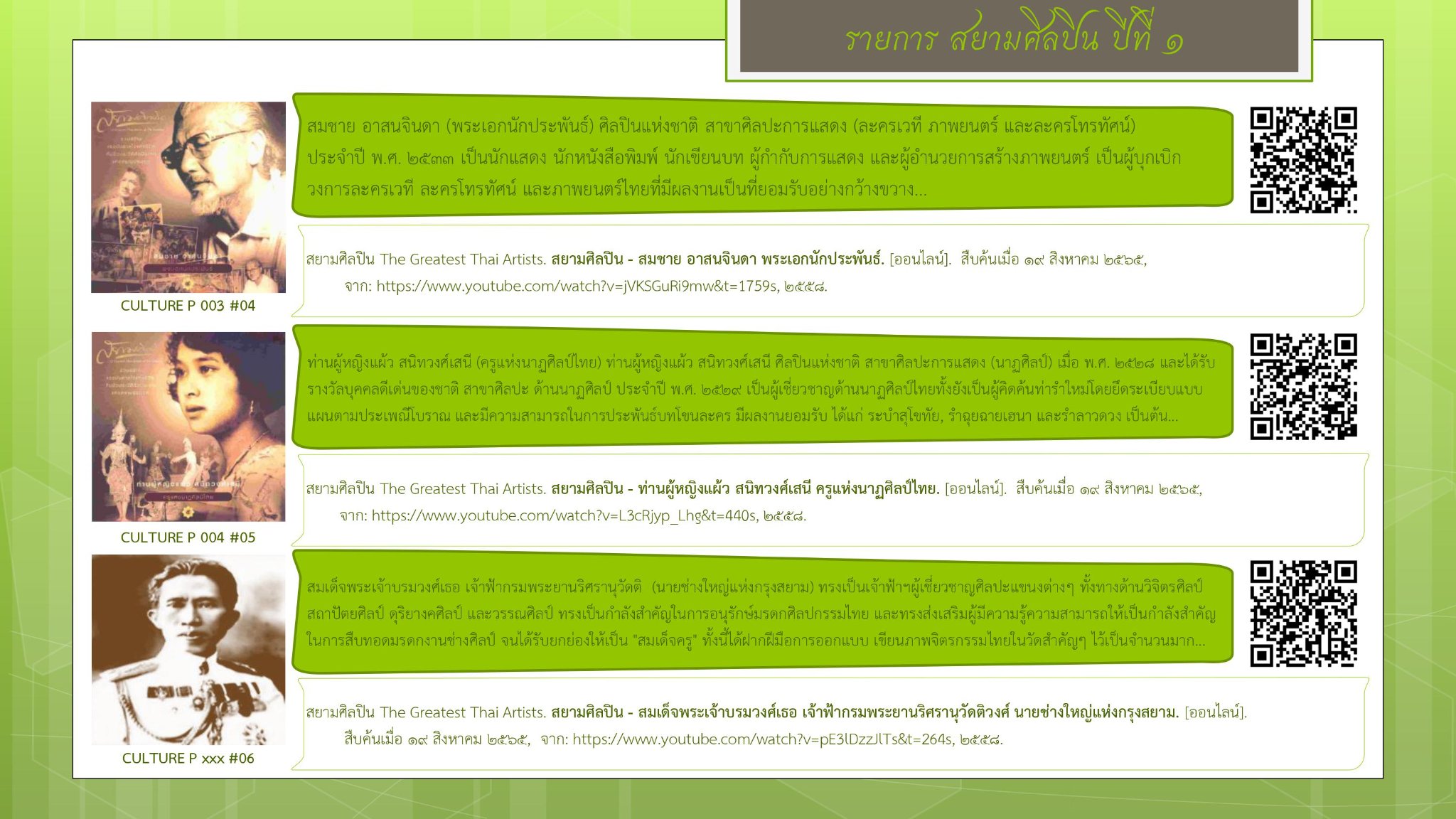 รายการ สยามศิลปิน ปีที่ ๑ สารคดีอัตชีวประวัติศิลปินไทย