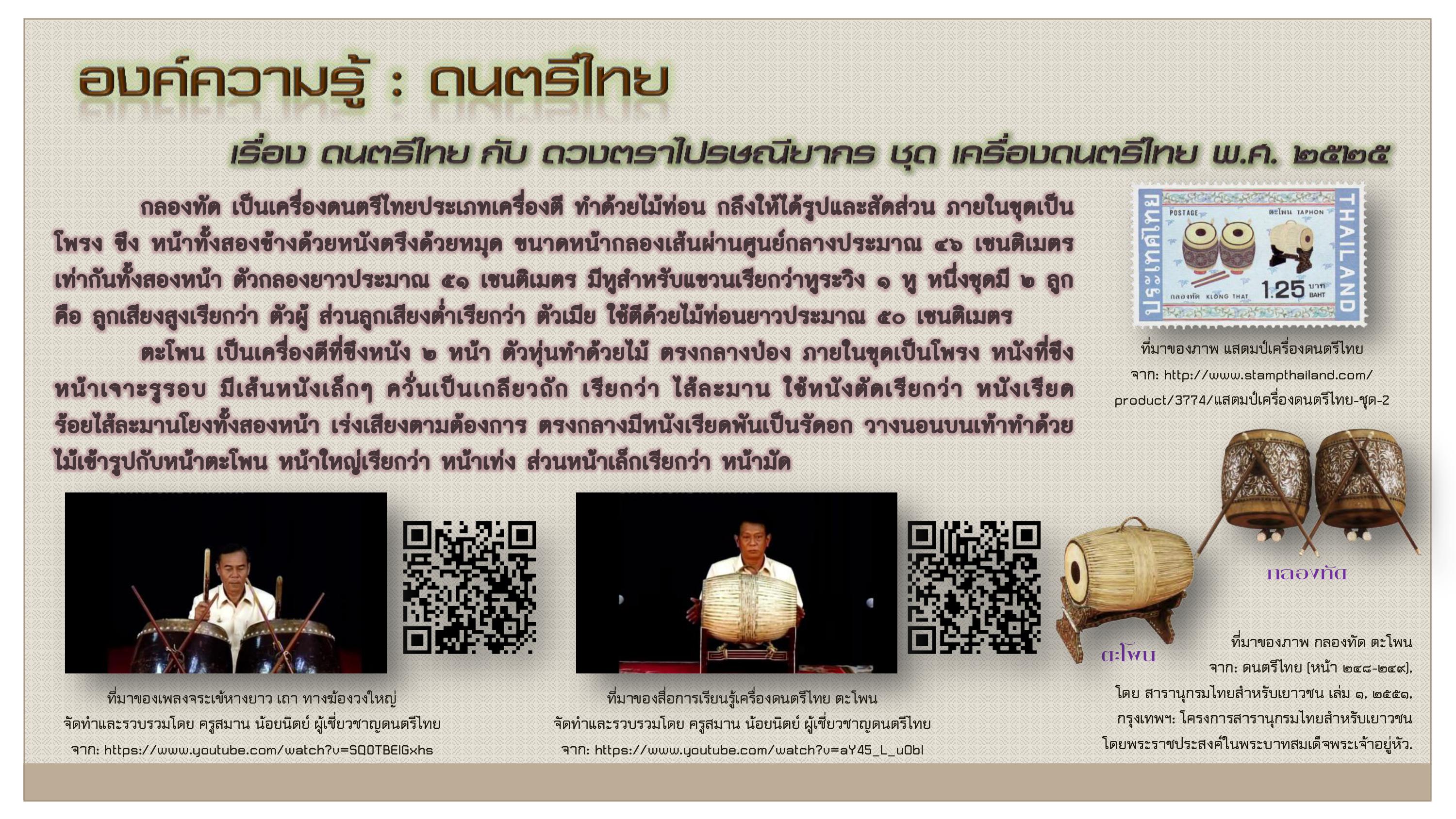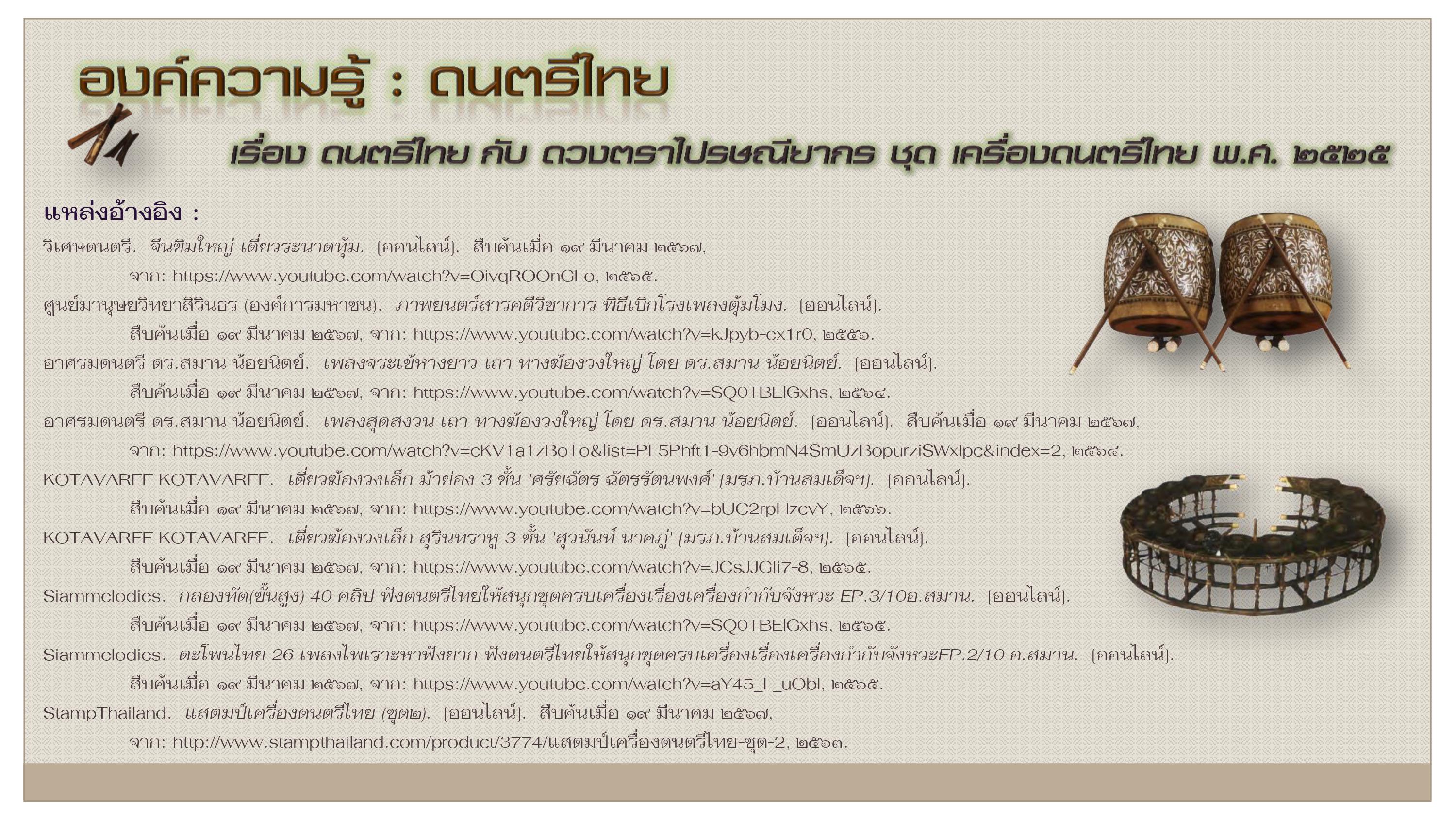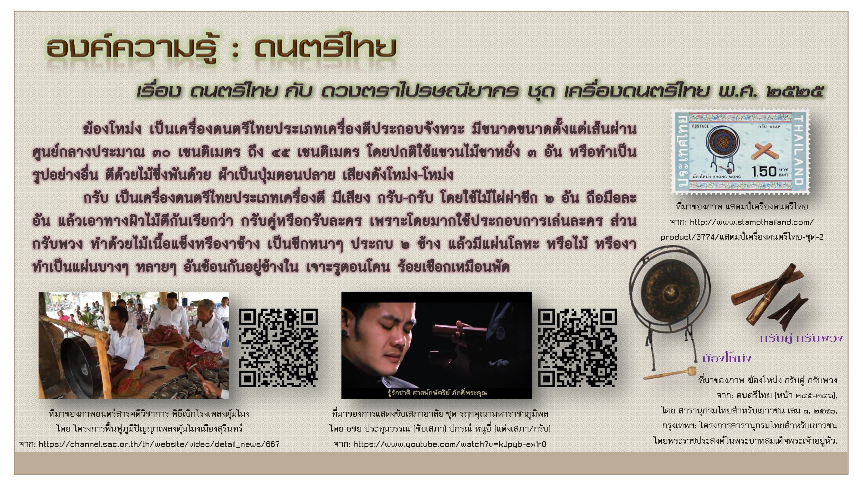 StampThailand. แสตมป์เครื่องดนตรีไทย (ชุด๒). [ออนไลน์]. สืบค้นเมื่อ ๑๙ มีนาคม ๒๕๖๗, จาก: http://www.stampthailand.com/product/3774/แสตมป์เครื่องดนตรีไทย-ชุด-2,