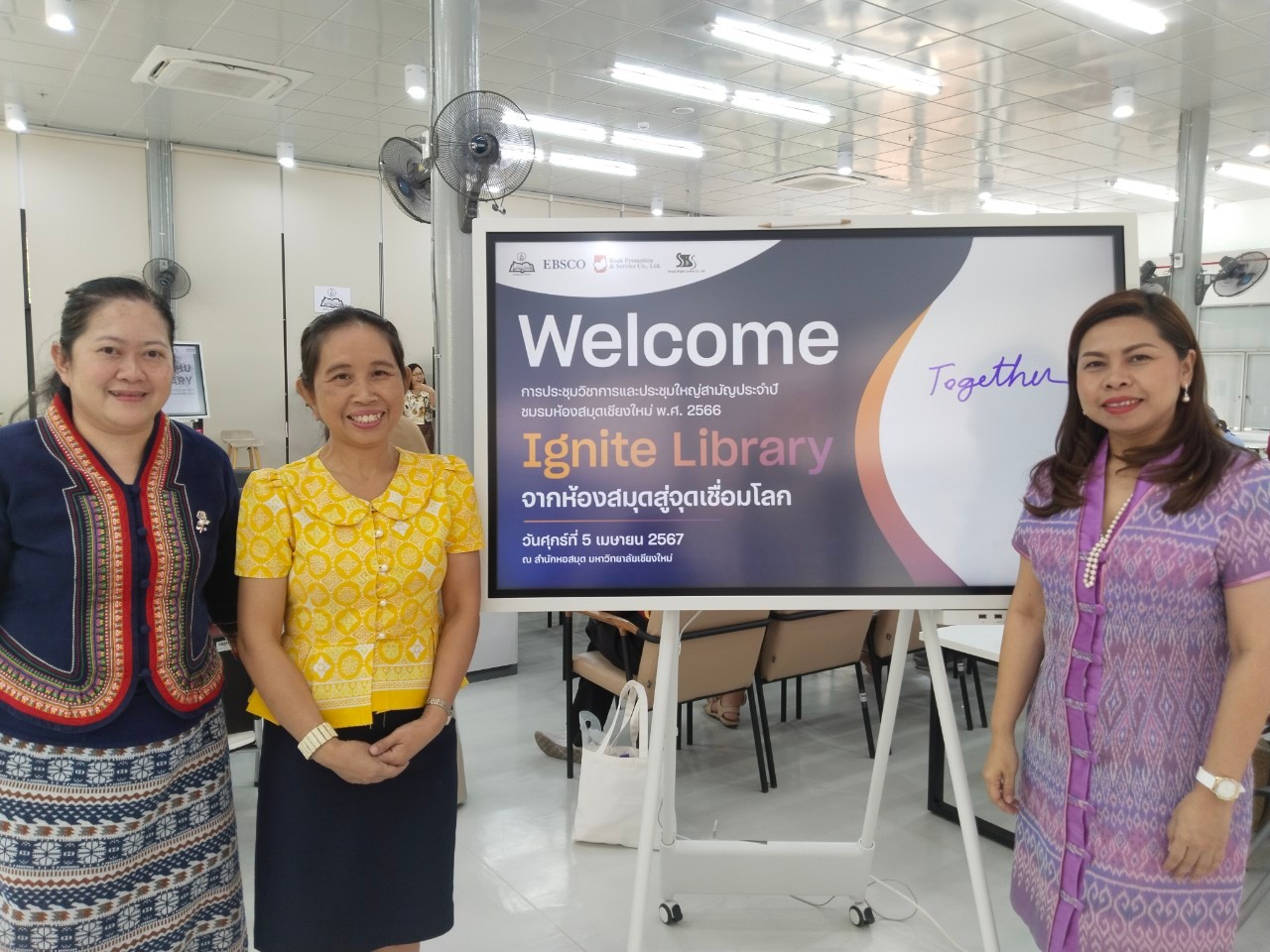 วันศุกร์ที่ ๕ เมษายน ๒๕๖๗ นางสาวปุณณภา สุขสาคร ผู้อำนวยการหอสมุดแห่งชาติรัชมังคลาภิเษก เชียงใหม่ พร้อมด้วยนางวรรณภา ปะวิโน บรรณารักษ์ชำนาญการ เข้าร่วมการประชุมวิชาการและประชุมใหญ่สามัญประจำปี ชมรมห้องสมุดเชียงใหม่ พ.ศ. ๒๕๖๖ "Ignite Library จากห้องสมุดสู่จุดเชื่อมโลก" ณ สำนักหอสมุด มหาวิทยาลัยเชียงใหม่