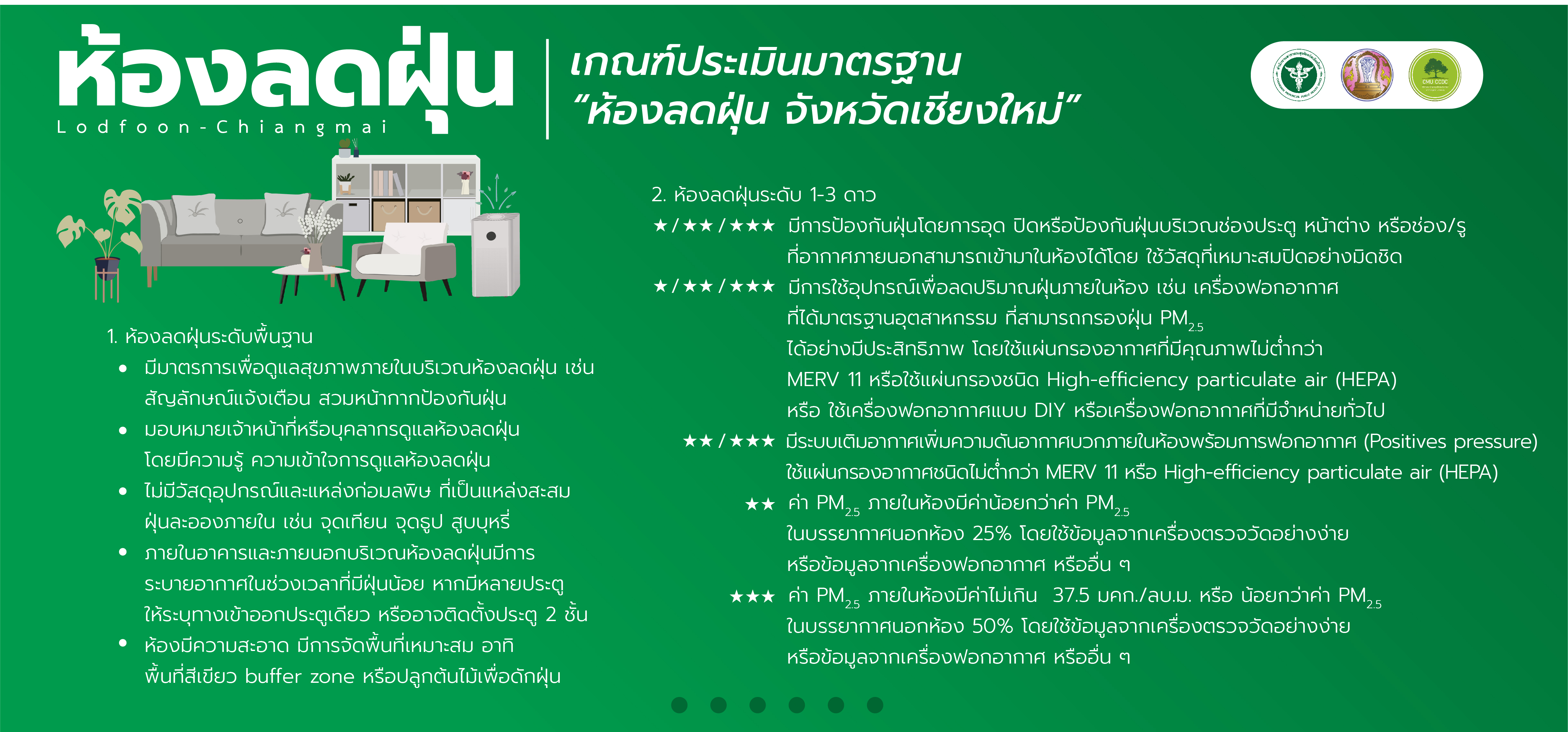 หอสมุดแห่งชาติรัชมังคลาภิเษก เชียงใหม่ ดำเนินการสร้างห้องลดฝุ่น โดยติดตั้งเครื่องฟอกอากาศ ๒ เครื่อง