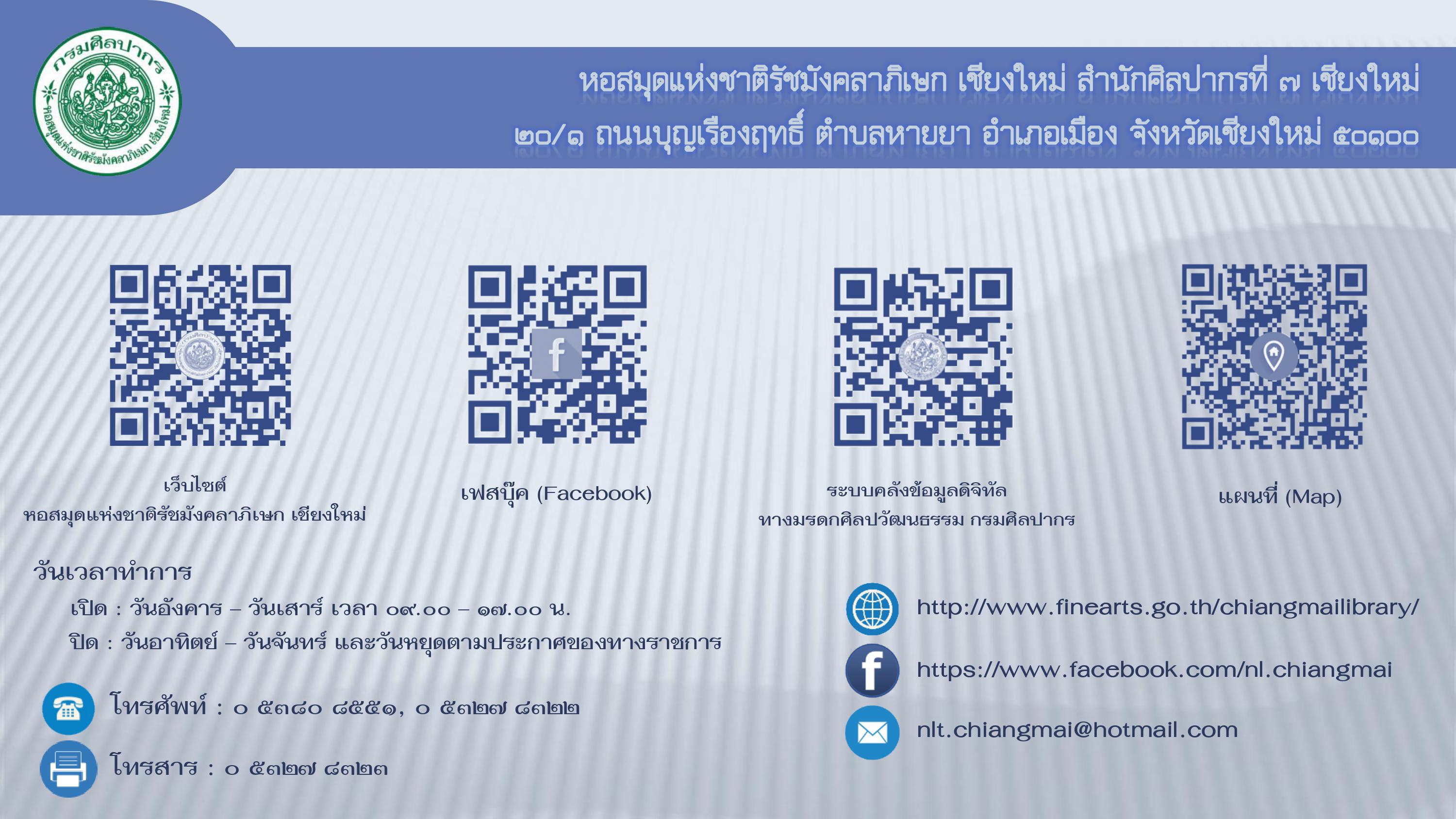 หอสมุดแห่งชาติรัชมังคลาภิเษก เชียงใหม่ สำนักศิลปากรที่ ๗ เชียงใหม่ กรมศิลปากร กระทรวงวัฒนธรรม