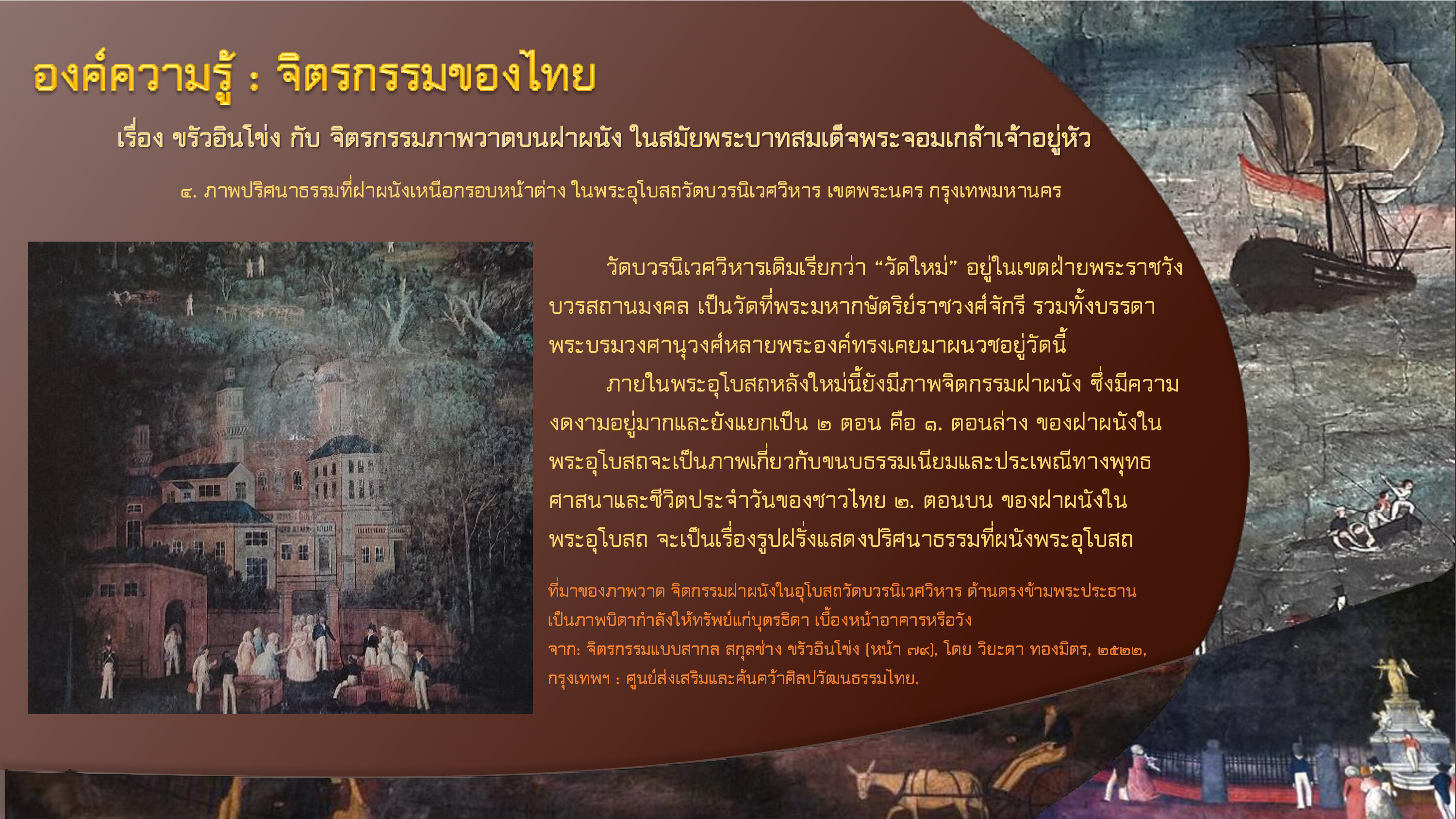 หอสมุดวังท่าพระ มหาวิทยาลัยศิลปากร. วัดบวรนิเวศวิหาร. [ออนไลน์]. สืบค้นเมื่อ ๓ พฤษภาคม ๒๕๖๗,