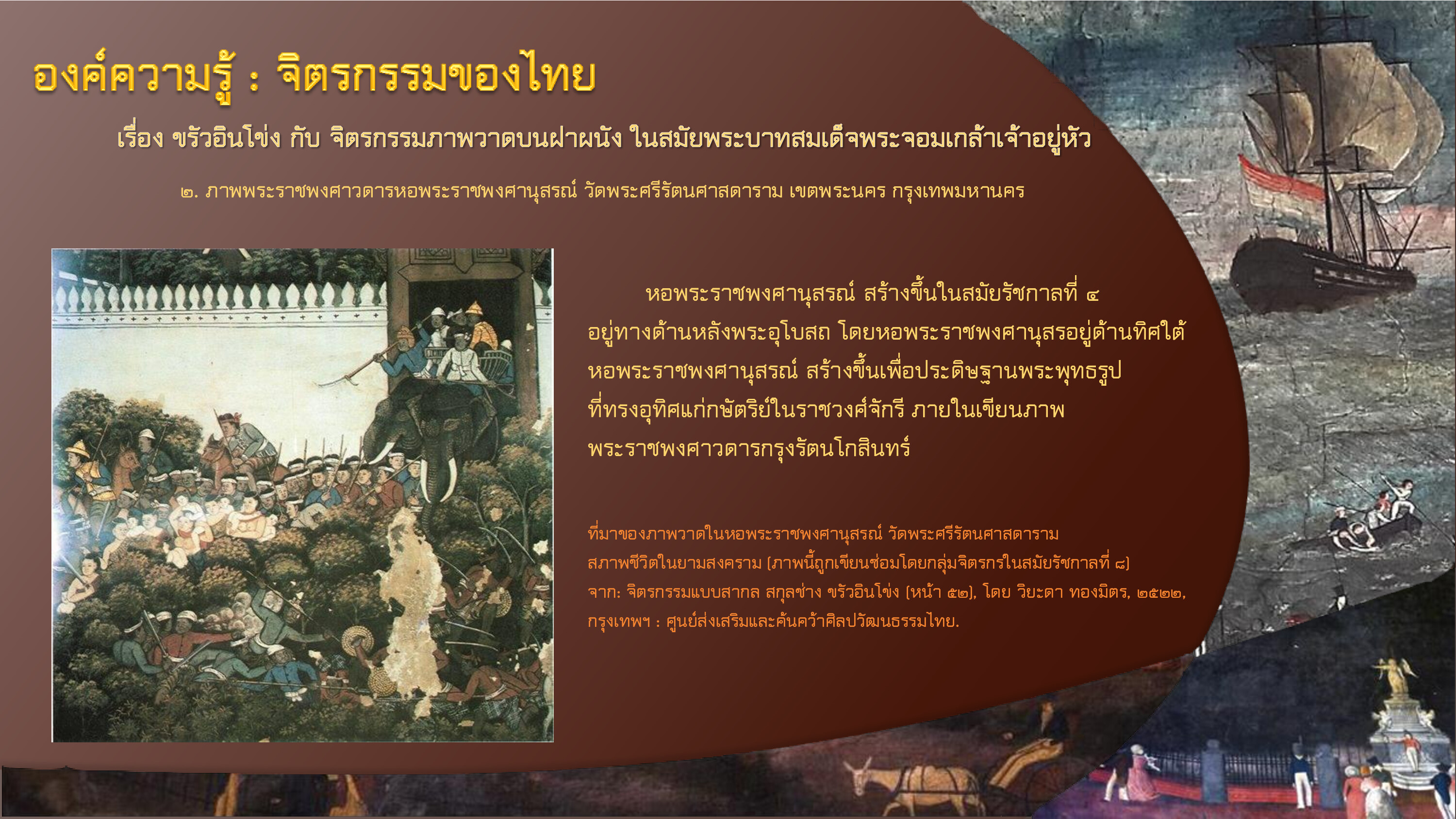 สำนักราชเลขาธิการ. โคลงสุภาษิตประจำภาพในพระอุโบสถวัดพระศรีรัตนศาสดาราม. กรุงเทพฯ : สำนักราชเลขาธิการ, ๒๕๕๖.