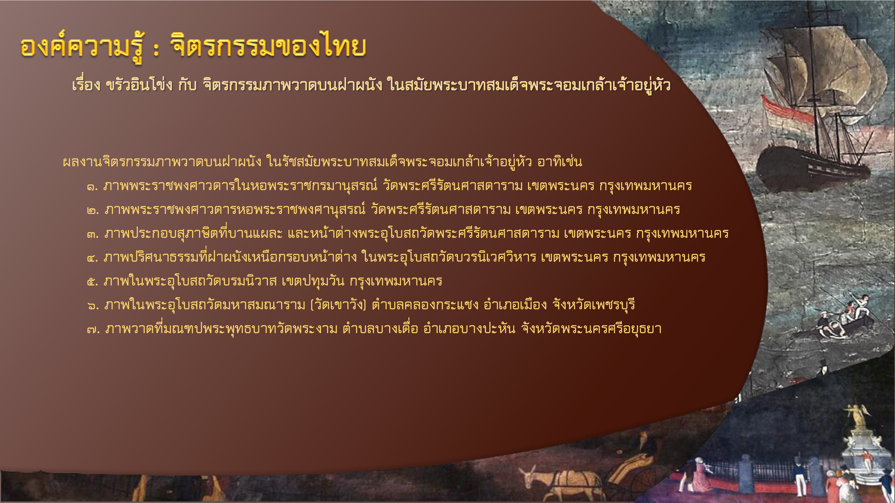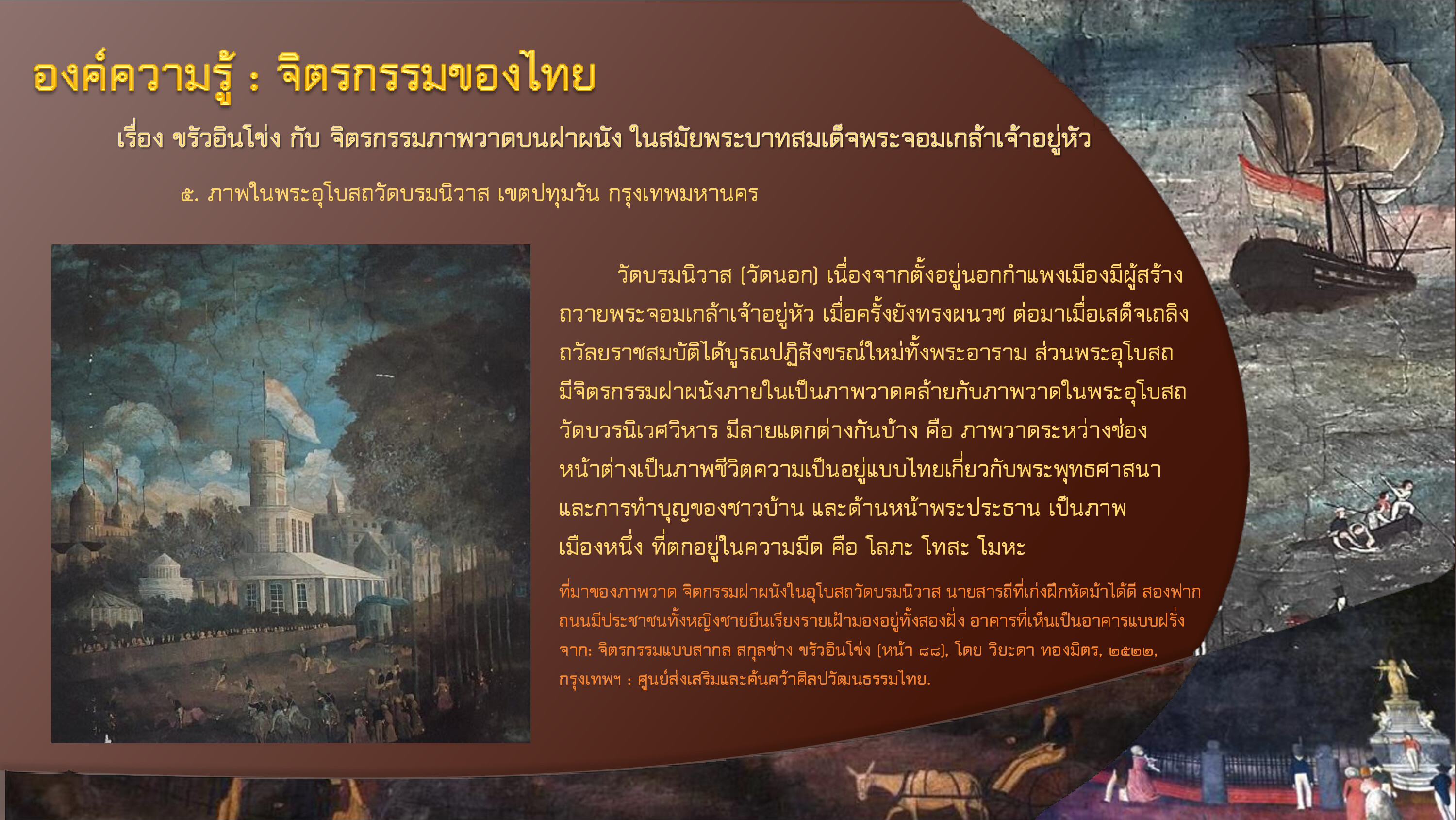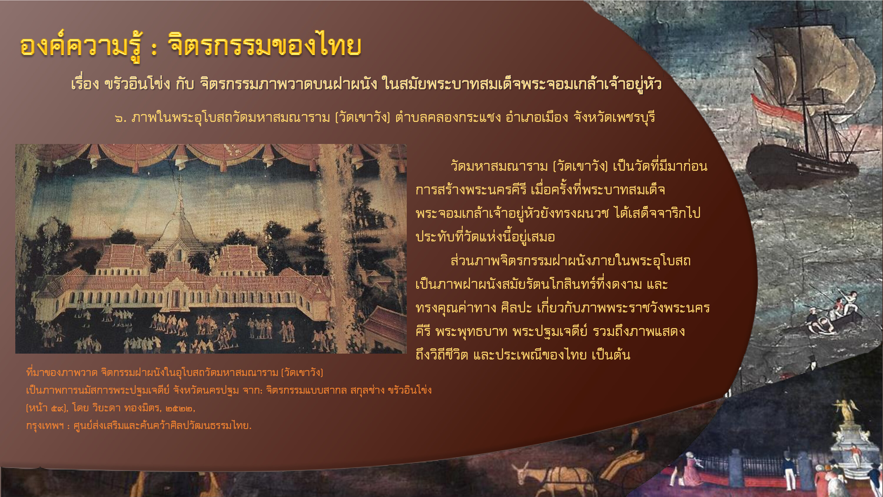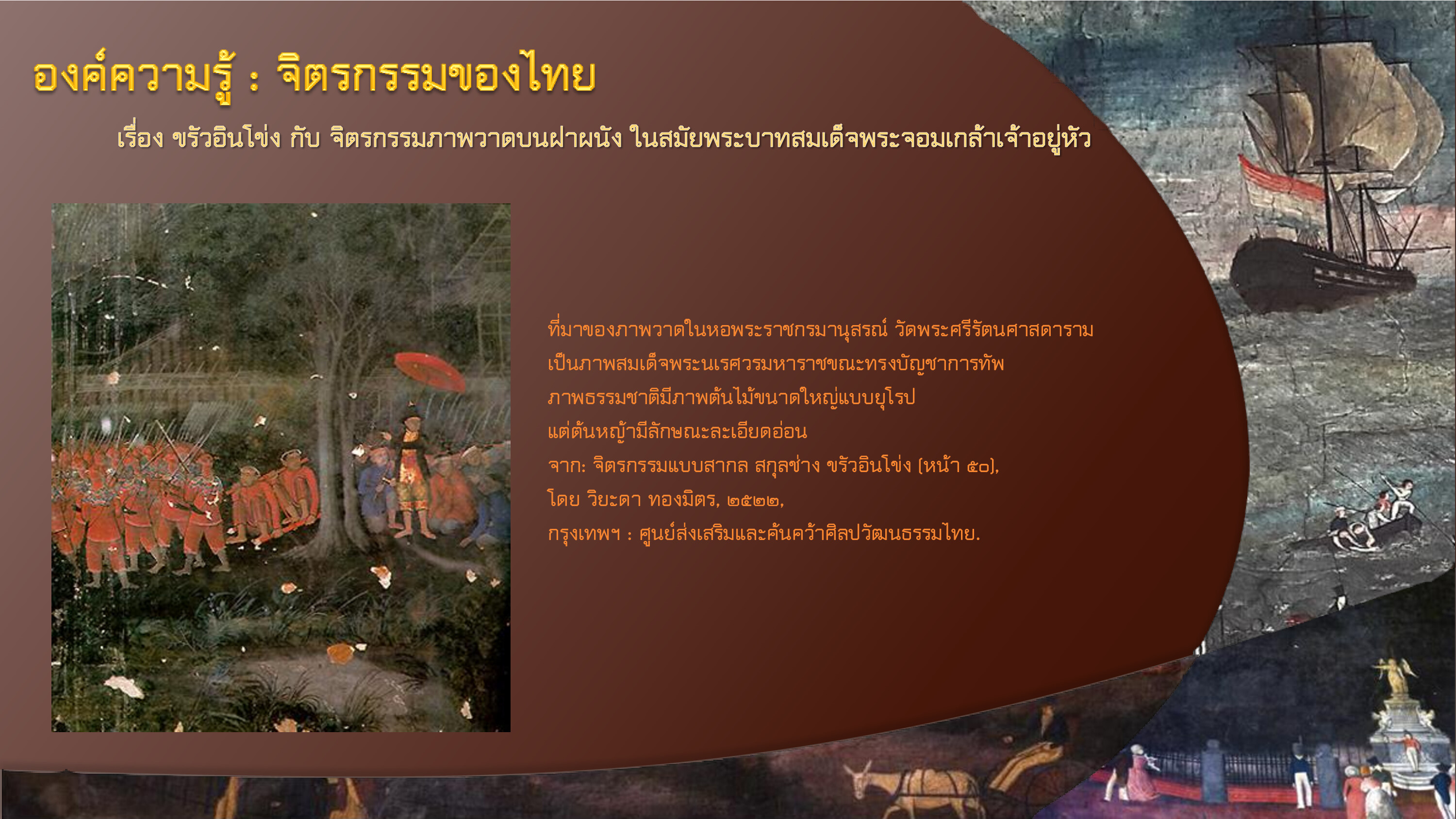 วิยะดา ทองมิตร. จิตรกรรมแบบสากล สกุลช่าง ขรัวอินโข่ง. กรุงเทพฯ: ศูนย์ส่งเสริมและค้นคว้าศิลปวัฒนธรรมไทย, ๒๕๒๒.