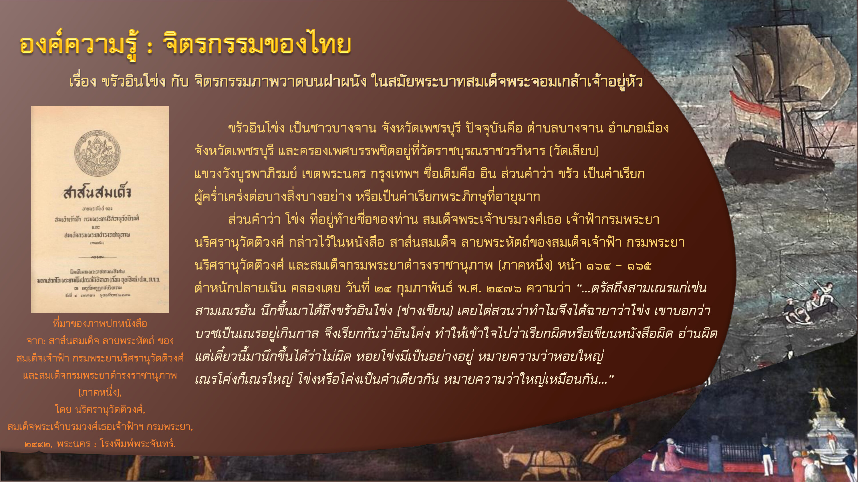 วิกิพีเดีย. ขรัวอินโข่ง. [ออนไลน์]. สืบค้นเมื่อ ๓ พฤษภาคม ๒๕๖๗, จาก: https://th.wikipedia.org/wiki/ขรัวอินโข่ง