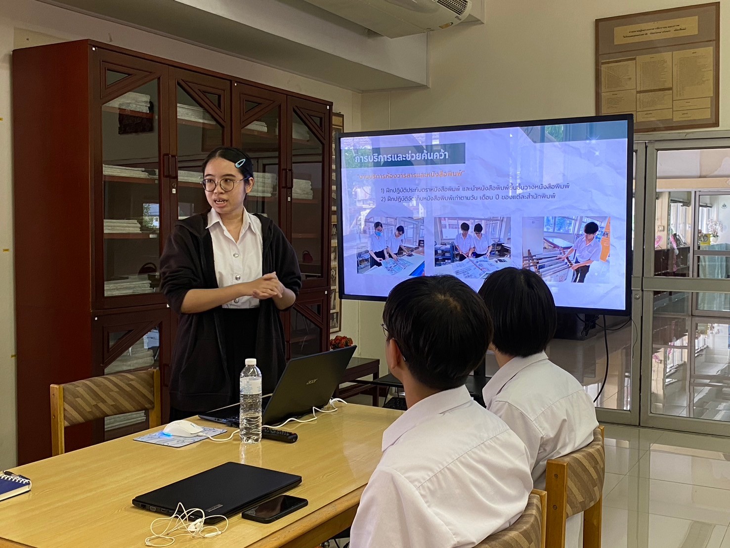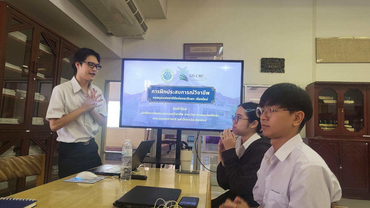 นางสาวปุณณภา สุขสาคร ผู้อำนวยการสำนักหอสมุดแห่งชาติรัชมังคลาภิเษก เชียงใหม่ พร้อมด้วยบุคลากร ร่วมรับฟังการนำเสนอผลการฝึกประสบการณ์วิชาชีพ ของนักศึกษาสาขาวิชาสารสนเทศศึกษา คณะมนุษยศาสตร์ มหาวิทยาเชียงใหม่