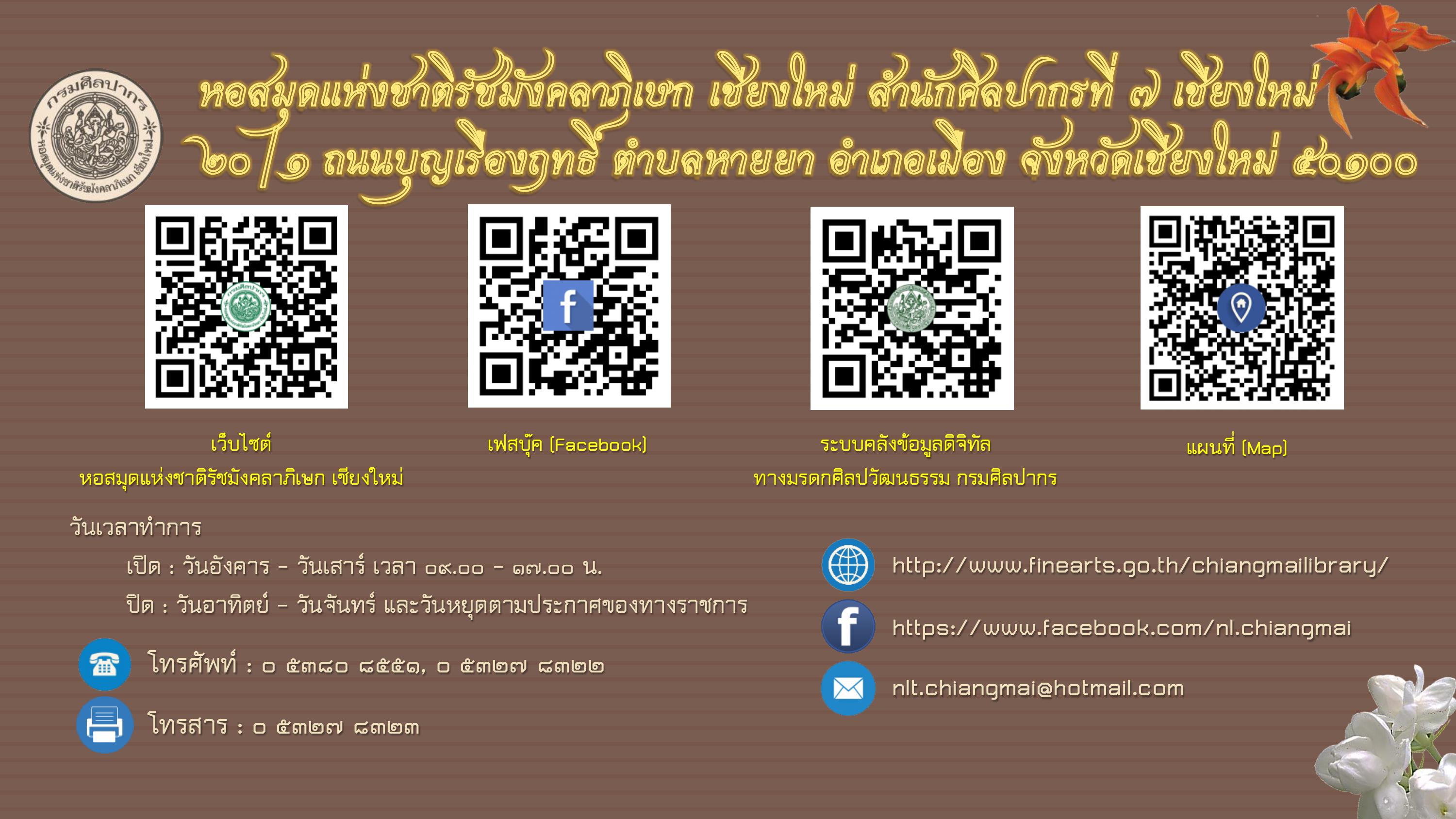 หอสมุดแห่งชาติรัชมังคลาภิเษก เชียงใหม่ สำนักศิลปากรที่ ๗ เชียงใหม่ กรมศิลปากร กระทรวงวัฒนธรรม