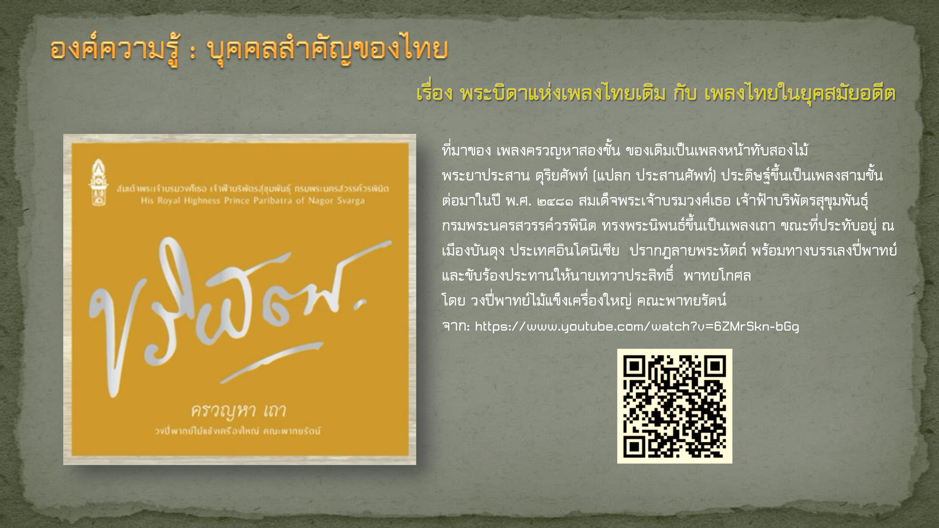 Music of Prince Paribatra. เพลงพระนิพนธ์ทูลกระหม่อมบริพัตร : ครวญหา เถา. [ออนไลน์]. สืบค้นเมื่อ ๒๘ มิถุนายน ๒๕๖๗,